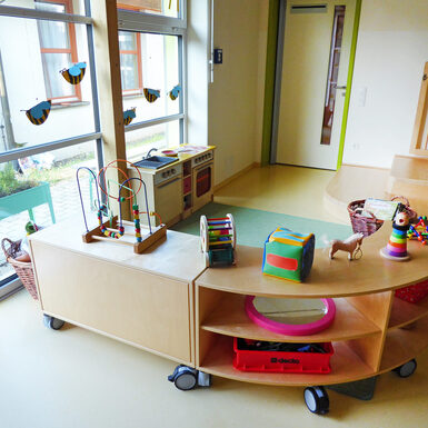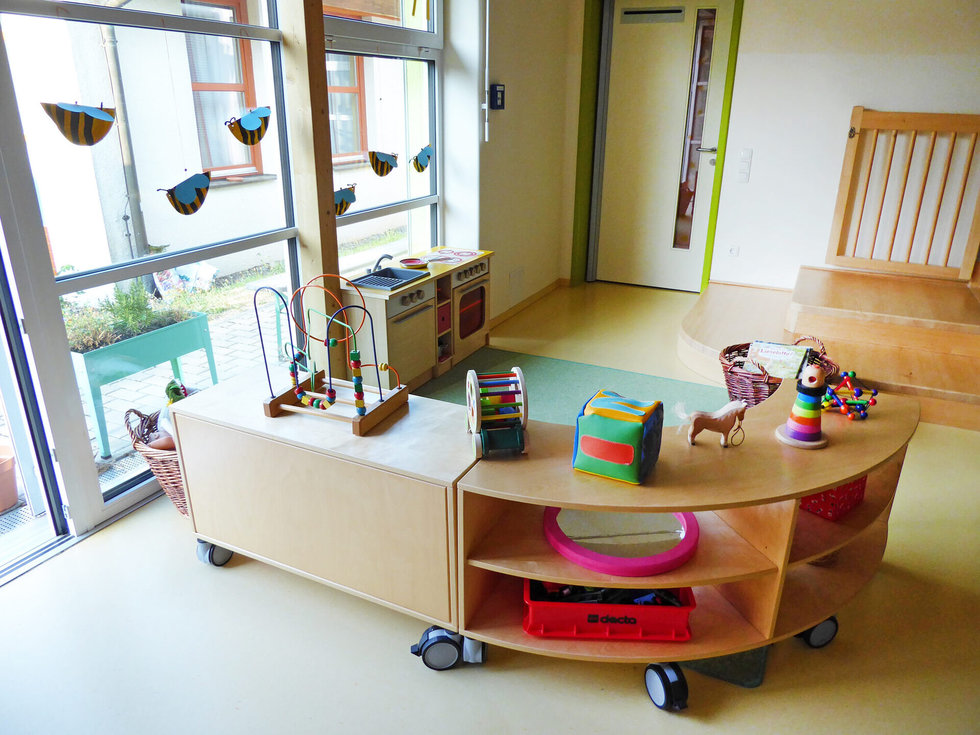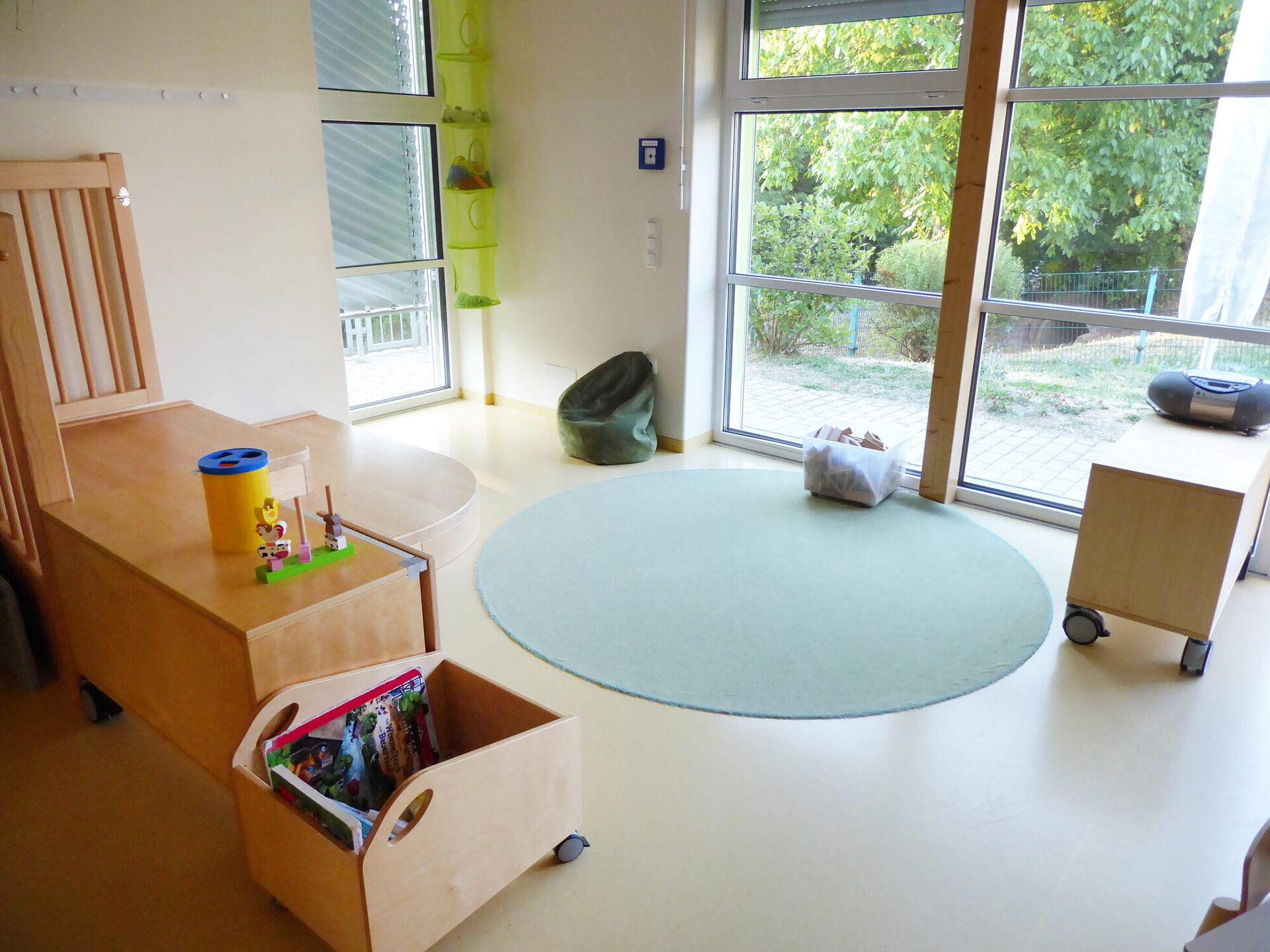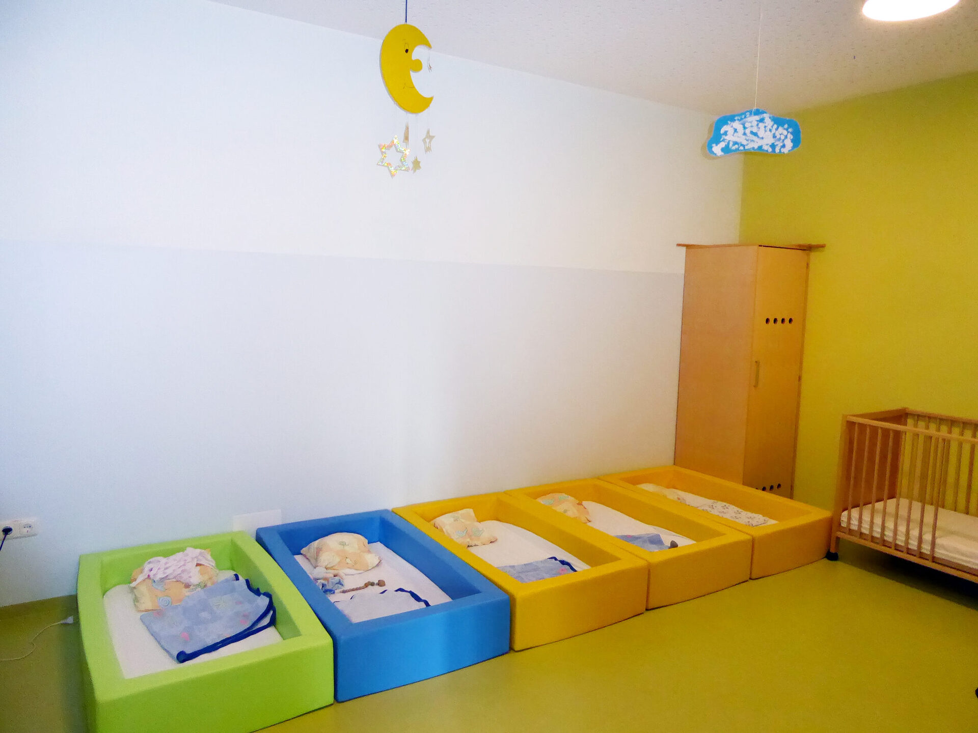 2 Gruppen für Krippenkinder mit je 12 Kindern und drei Erziehern bzw. Kinderpflegern.