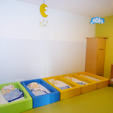 einen eigenen Krippengarten mit verschiedenen Spielmöglichkeiten
