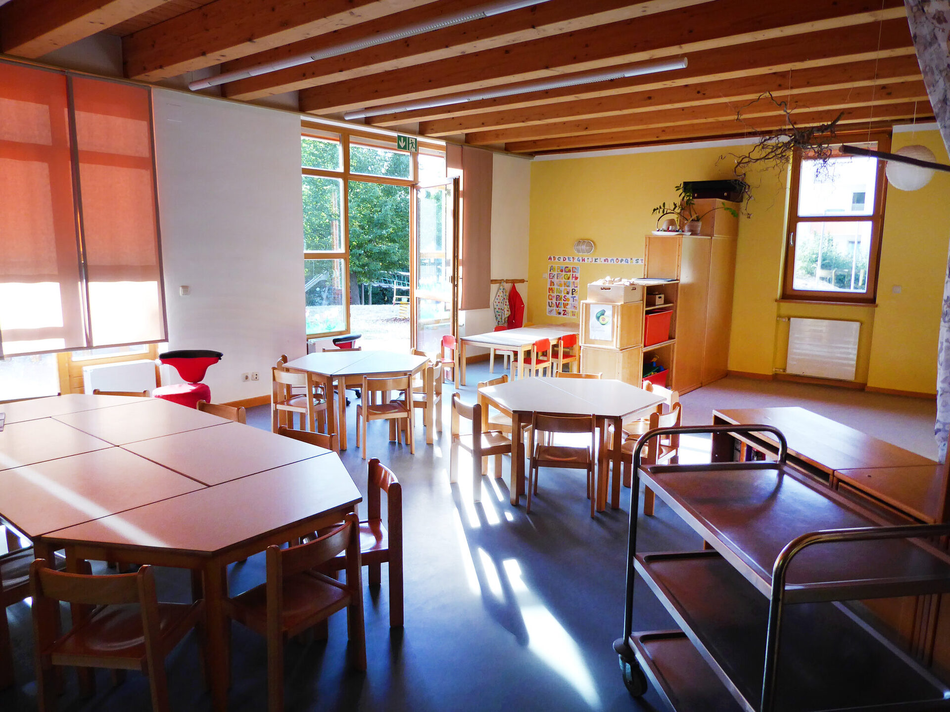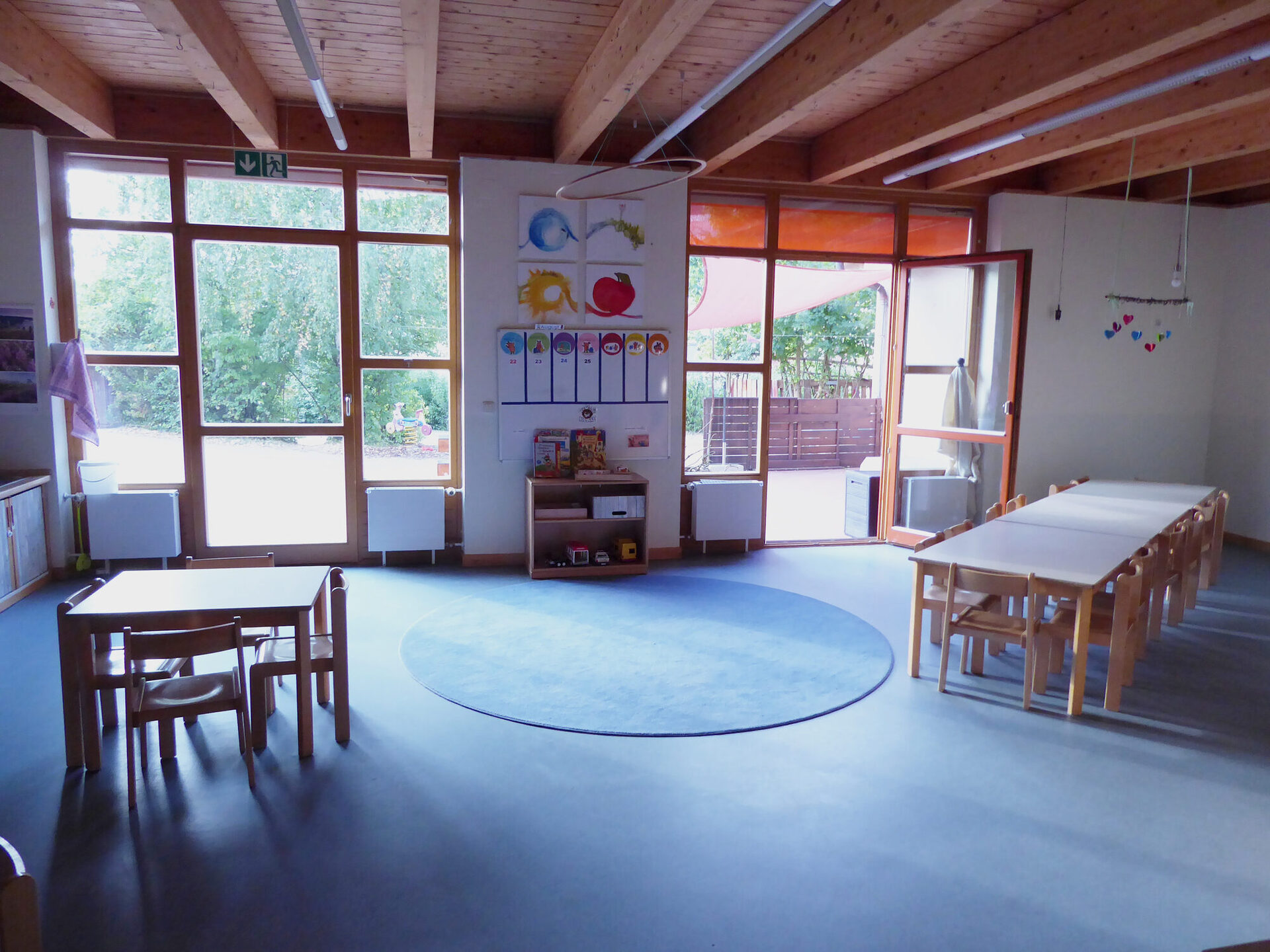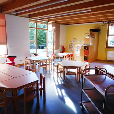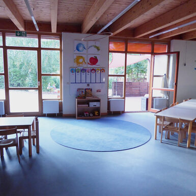 4 Regelgruppen: altersgemischt von ca. 2,5 bis 6 Jahren, je Gruppe mit ca. 20-22 Kindern und drei Erziehern bzw. Kinderpflegern.