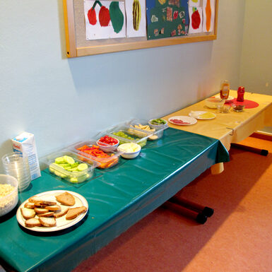 Unkostenbeitrag von monatlich 15,00 € für Frühstück und Brotzeit. Das Mittagessen wird von der Waldrichkantine geliefert. Der Betrag pro Essen beträgt 3,35 € täglich.
