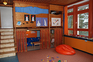 - Spielzimmer (versch. Bereiche wie Bauen, Rollenspiel..) mit Legoraum
