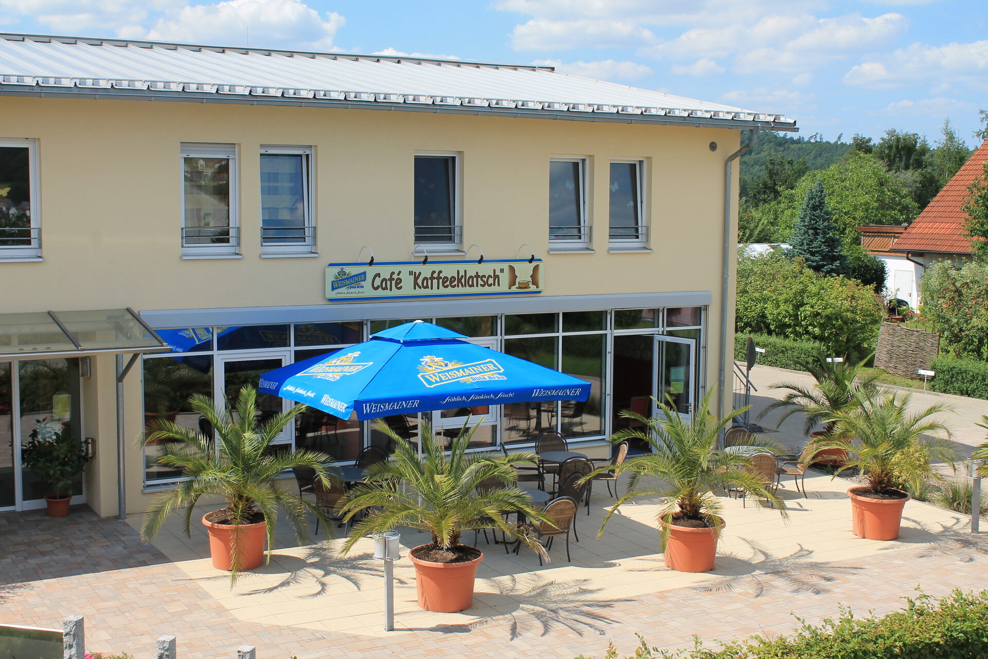 Ein Mehrzweckraum und eine Cafeteria, sowie eine großzügige Parkanlage kann von allen Bewohnern und Besuchern genutzt werden
