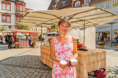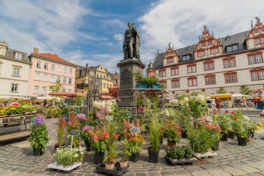 Die besondere Atmosphäre des großen Wochenmarktes auf dem historischen Marktplatz lockt jeden Samstag zahlreiche Coburger aus dem näheren und weiteren Einzugsbereich in die Coburger Altstadt, um hier frisches Gemüse, Wurst, Backwaren und weitere Lebensmittel sowie Setzlinge, Blumen und Gestecke zu kaufen. Der Markt auf dem Marktplatz hat von 8 bis 13 Uhr geöffnet.