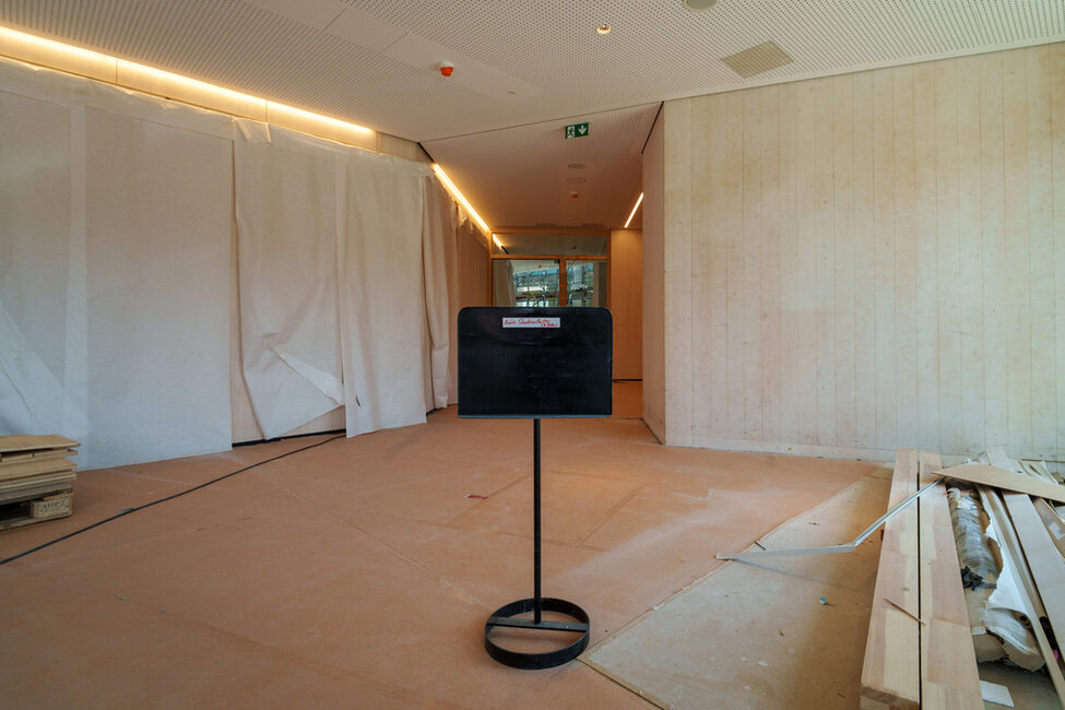 Durch den Umzug während noch gebaut wird, stehen manche Dinge manchmal dort, wo sie nicht hingehören. Hier hat sich ein Notenständer des Studienleiters verirrt.