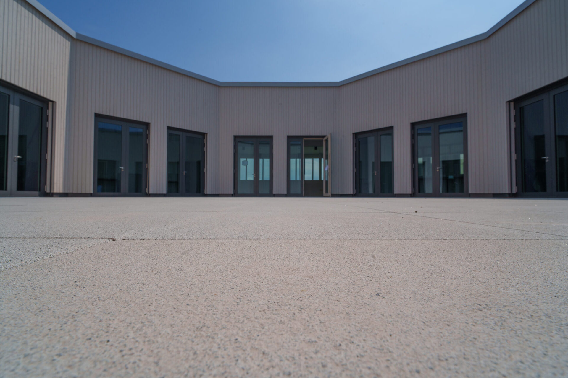 Im obersten Stockwerk gibt es viele Zugänge zur Dachterrasse. Hier sollen Sie sich in der Pause auch aufhalten können.