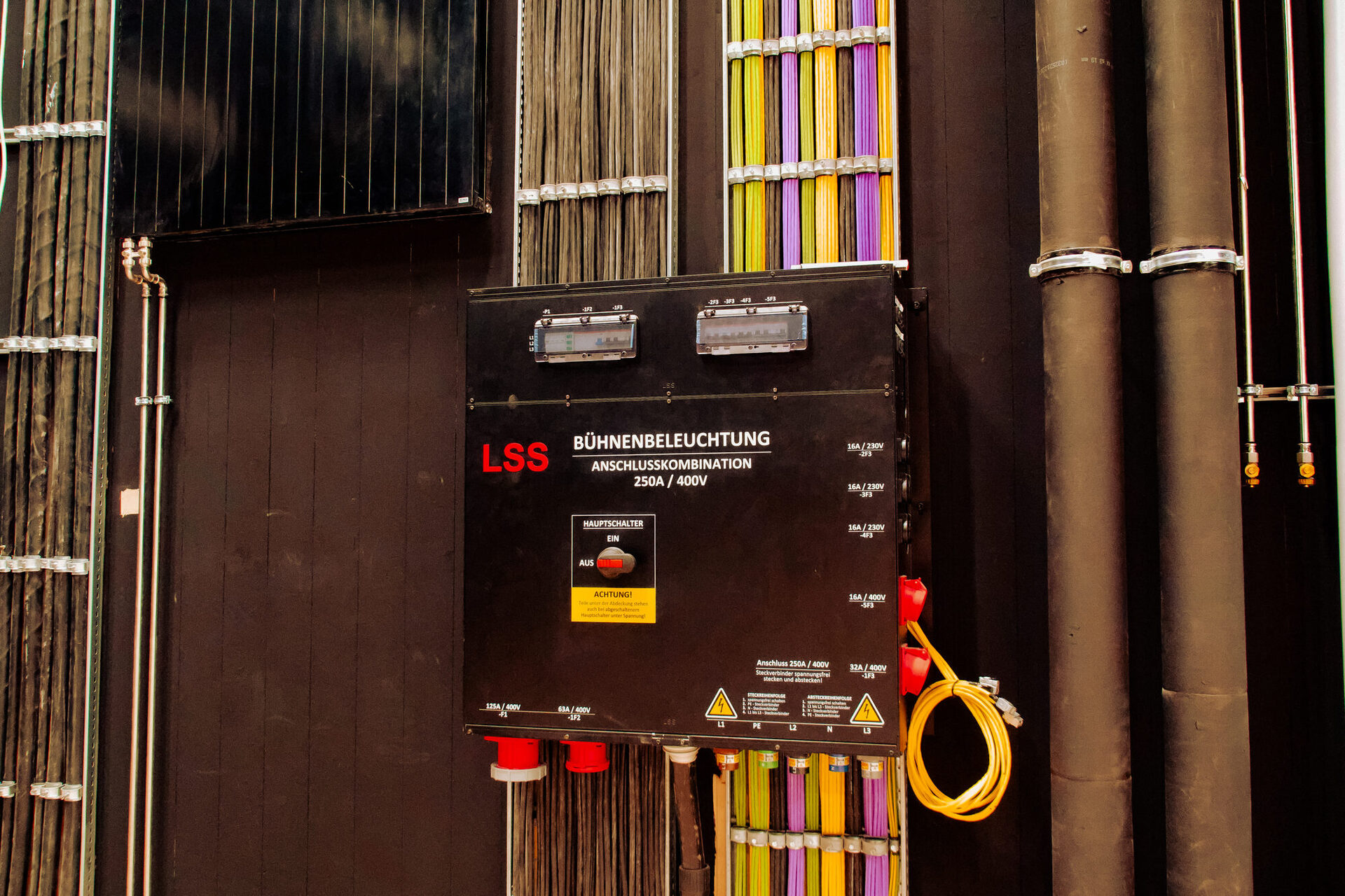 Licht lässt sich auf der Bühne des Globe schon heute anschalten: Der Bühnenstrom ist bereits verlegt und angeschlossen. Dieser Tage nutzen die Bauarbeiter*innen die Anschlüsse noch für ihre Arbeiten - von 6. Oktober an werden Scheinwerfer und Co. an dieses Netz angeschlossen.