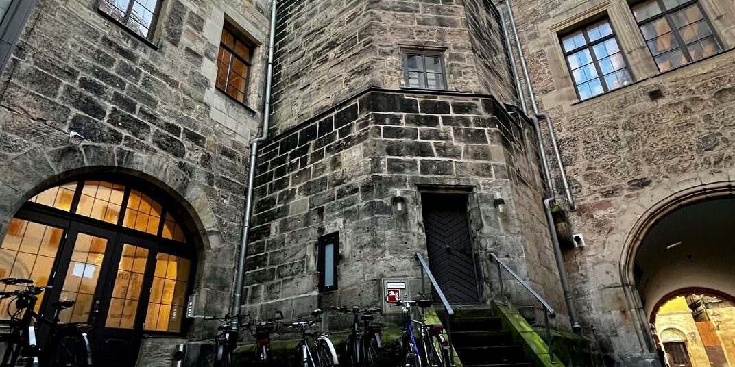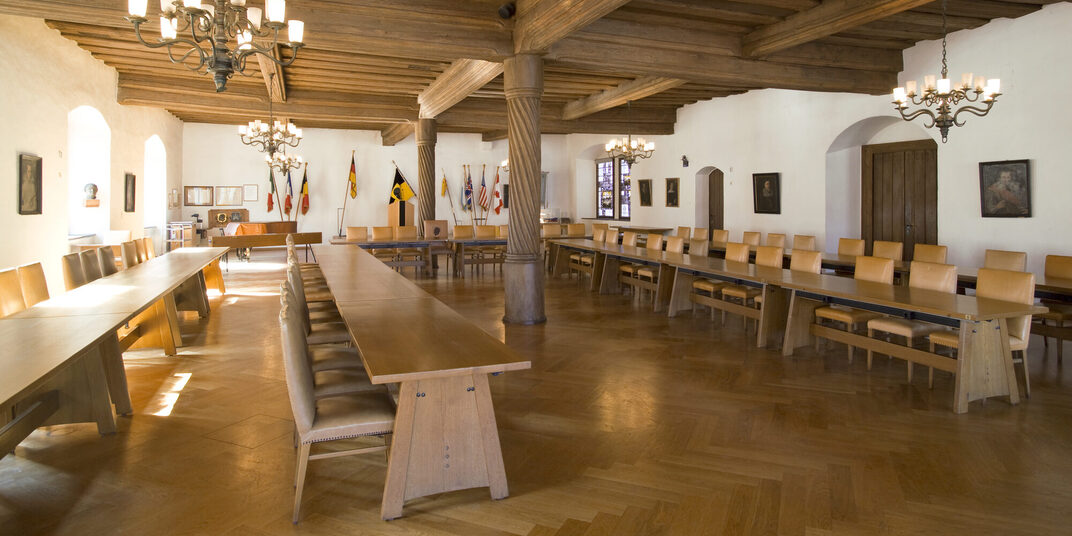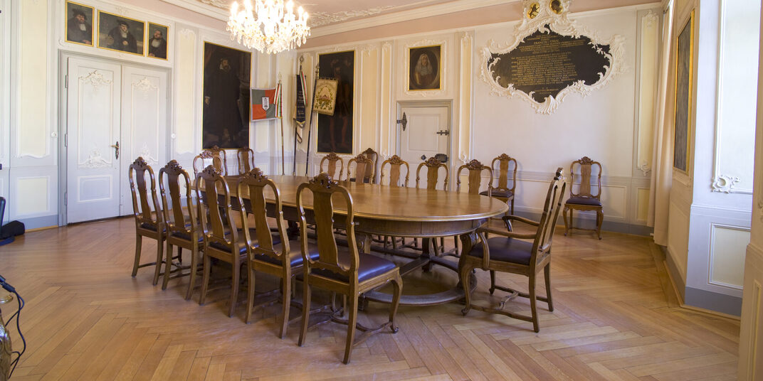 Über dem Tanzsaal im ersten Stock, gab es einen ebenso großen Saal. Dessen Balkendecke ruht noch heute auf drei gedrehten Holzsäulen. Er war der Stolz der Bürgerschaft und galt als der repräsentativer Festraum der Stadt. Die Wände waren noch mit den Bildnissen aller früheren Bürgermeister geschmückt. Hier wurden die Hochzeiten reicher Bürger gefeiert sowie allerlei „Tanzlustbarkeiten“ und „Schmausereien“ veranstaltet. Auch die Fürsten folgten den Einladungen der Stadt zu diesen Feiern gerne.