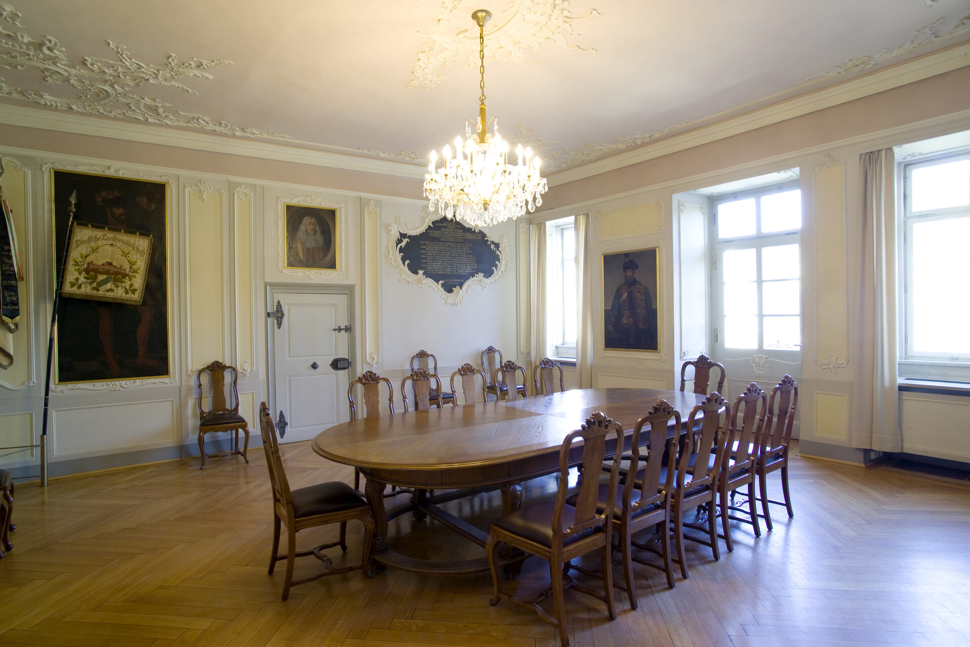 Zum Schmuck des Raumes schenkte der Herzog Franz Josias (1697 - 1764) mehrere Bilder seiner Vorfahren, die sich um Coburg verdient gemacht hatten.