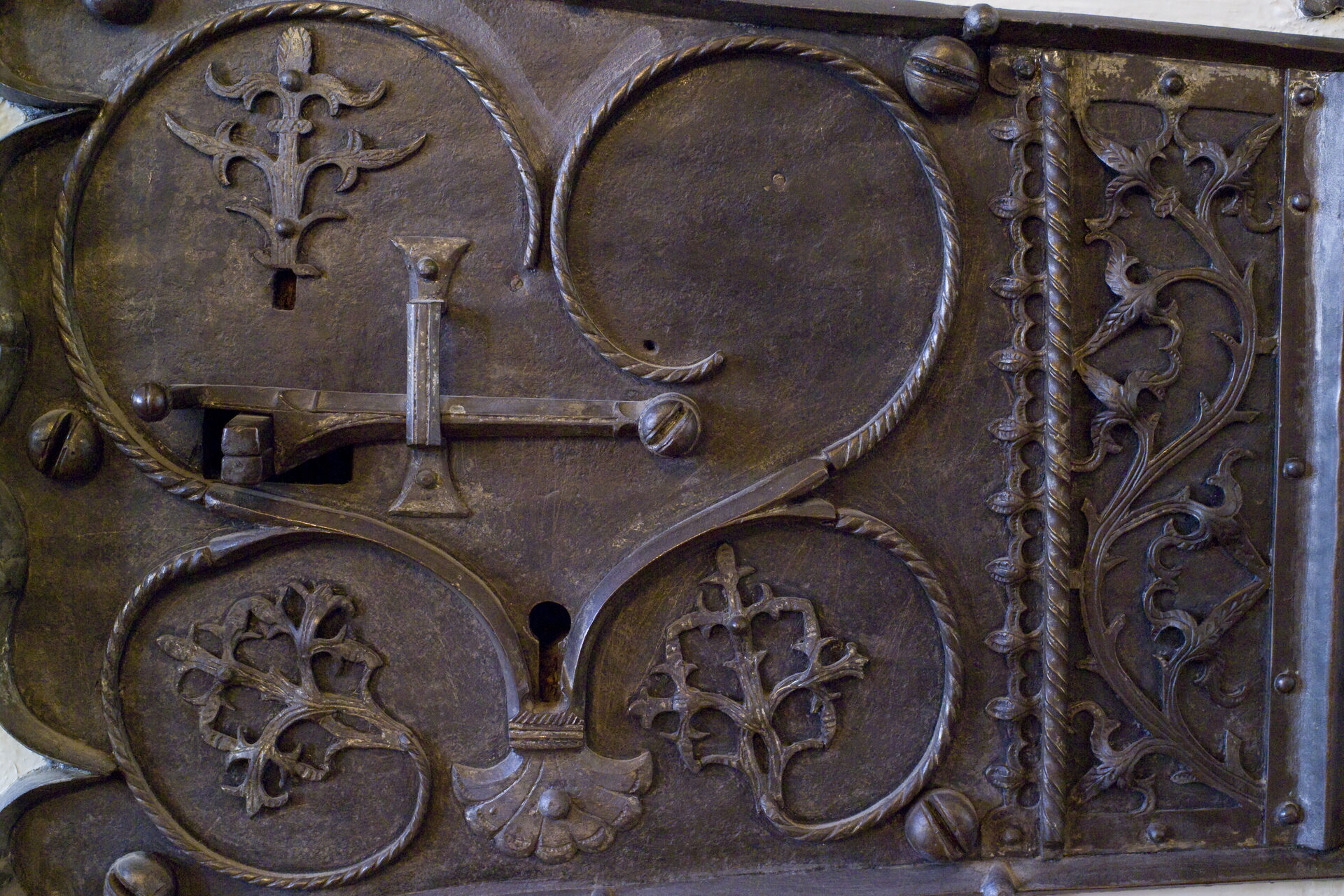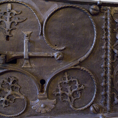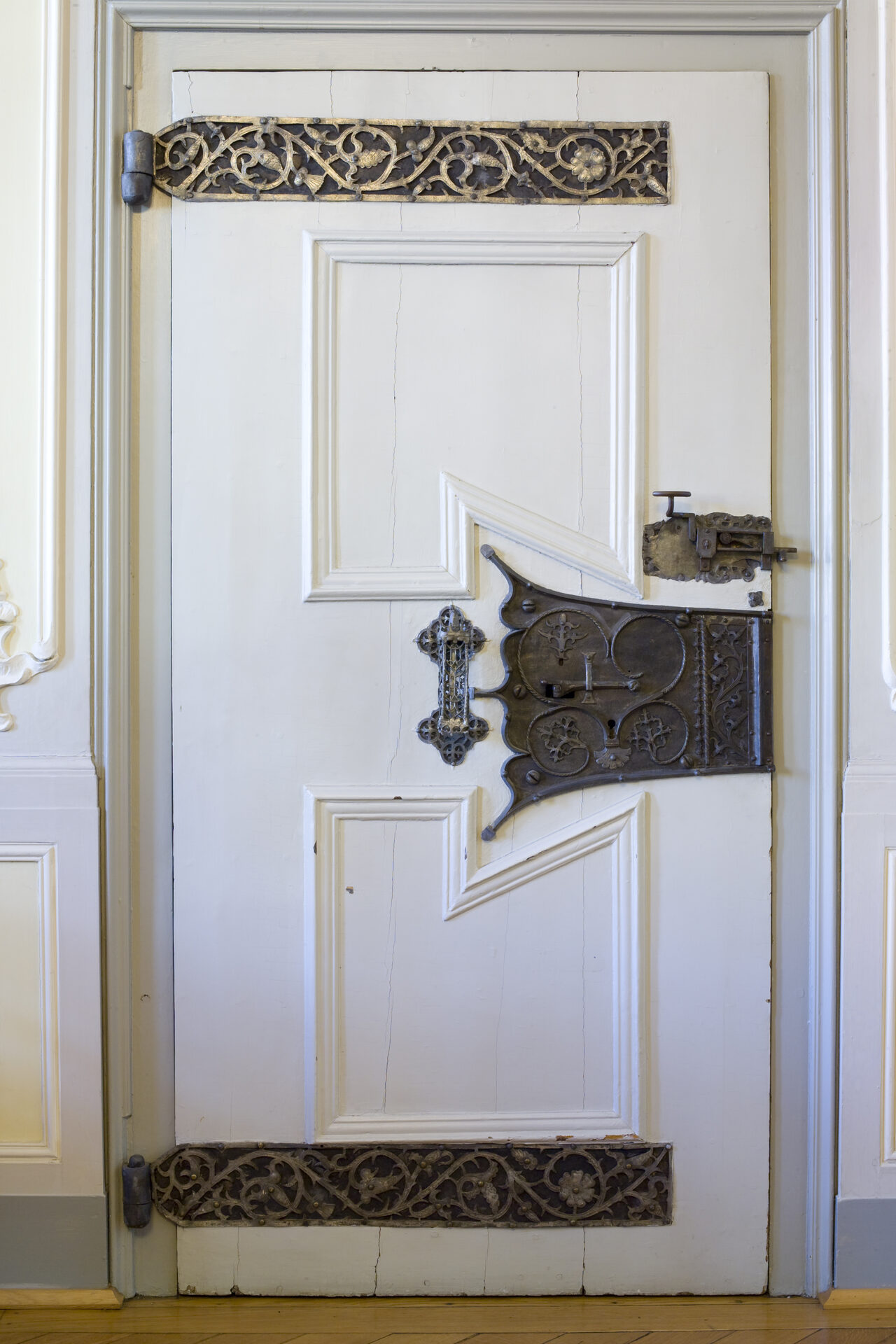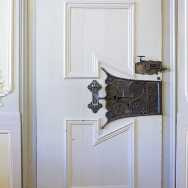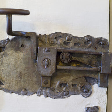 Erfreulicherweise hat man damals die schöne gotische Tür mit den einzigartigen Kunstschmiedebeschlägen – wohl noch von 1425 – nicht der Tagesmode geopfert.