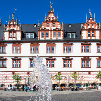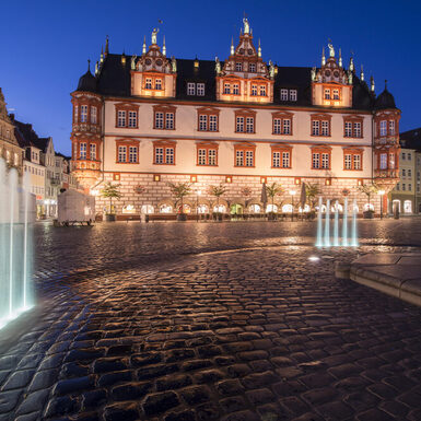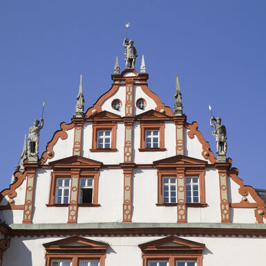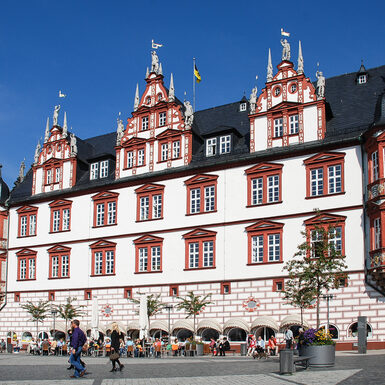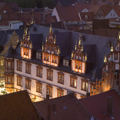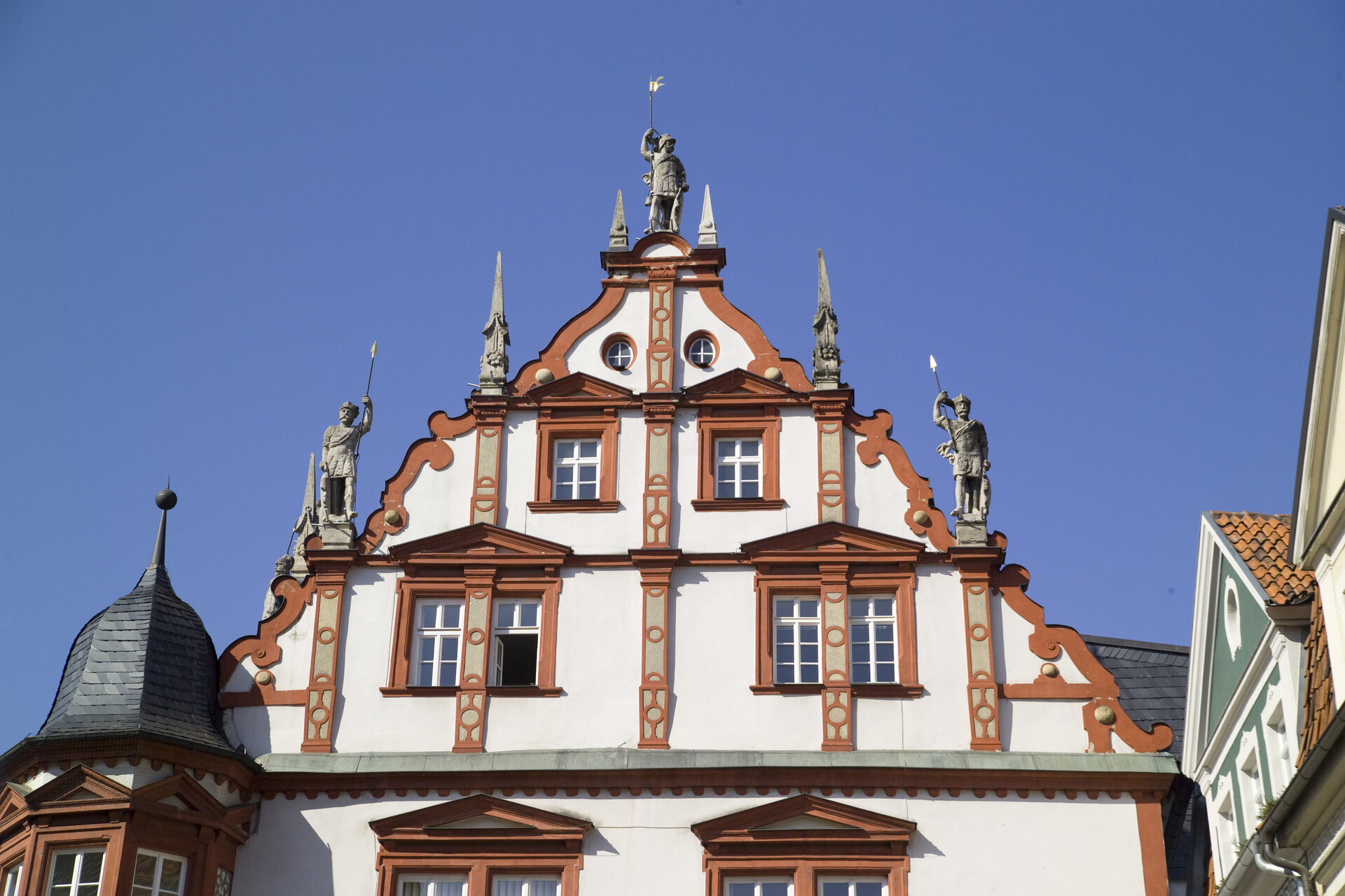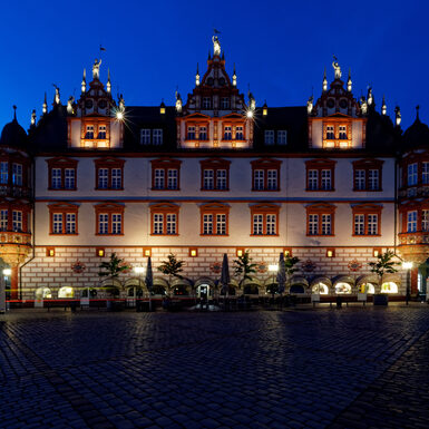 Durch seinen Architekten ließ dann der Fürst, dem neuen Rathaus der Bürgerschaft gegenüber, von 1597 bis 1599 einen überaus prächtigen und kostspieligen Großbau errichten, der seinen Herrschaftswillen in Stadt und Staat überzeugend bekunden sollte.