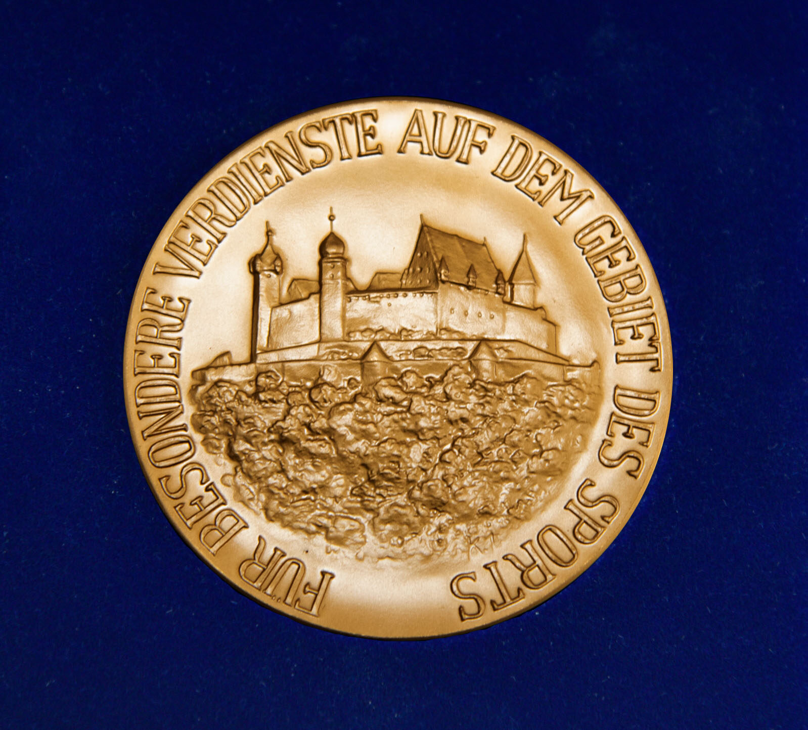 Die Goldplakette für besondere Verdienste auf dem Gebiete des Sportes ist die höchste Auszeichnung für langjährige Sportfunktionäre die den Sport in Coburg regional sowie überregional nachhaltig geprägt haben. Die Wahrnehmung der Stadt als „Sportstadt Coburg“ ist eng mit ihrem Wirken verbunden.