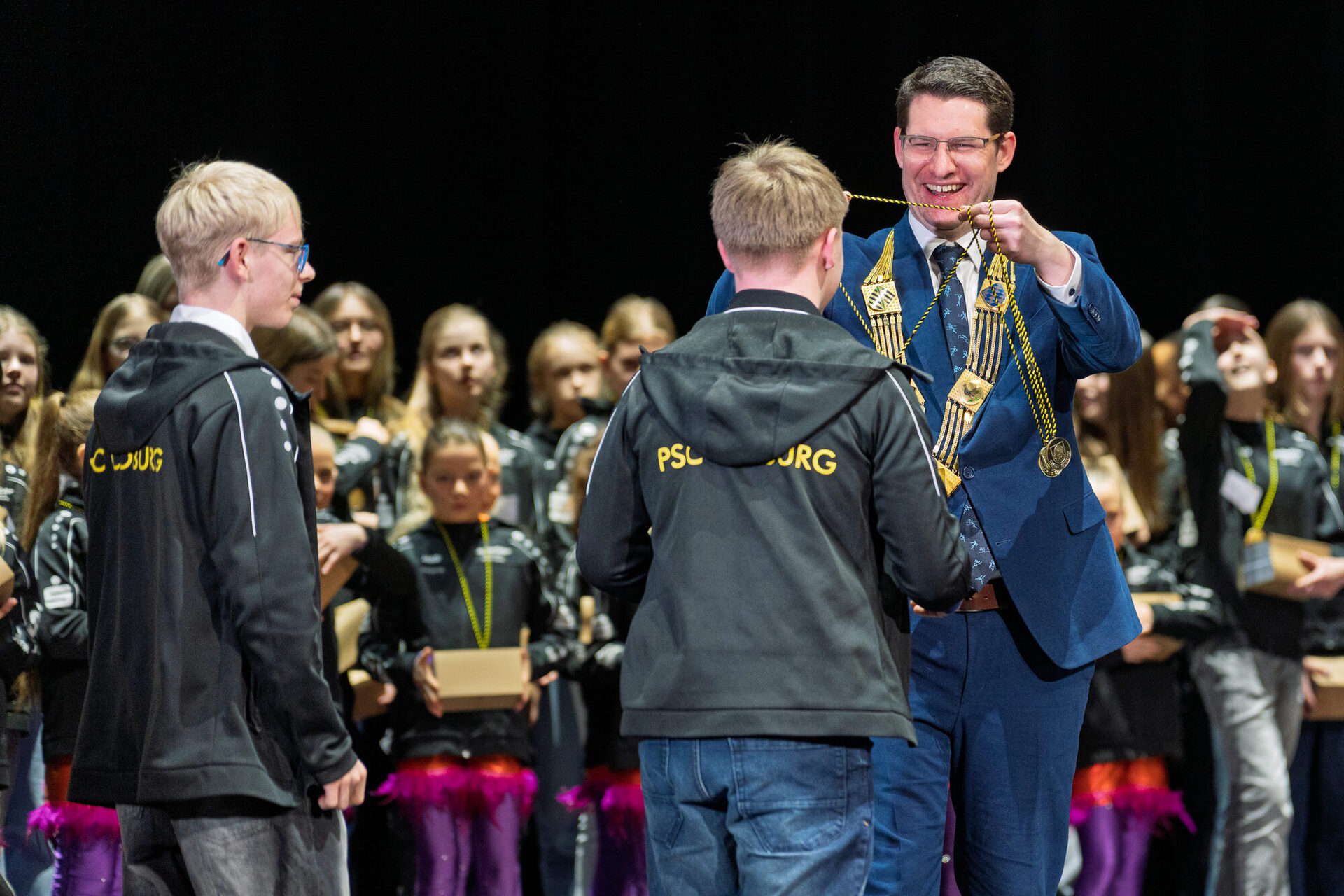Besonders hervorgehoben wurde das Engagement der zahlreichen Ehrenamtlichen: Trainer*innen, Betreuer*innen, Organisator*innen und Funktionär*innen. „Sie sorgen dafür, dass der Vorhang überhaupt aufgeht“, so der Oberbürgermeister mit Blick auf den Veranstaltungsort. Ohne ihren Einsatz gäbe es weder Trainingsbetrieb noch Wettkämpfe – und damit auch keine Erfolge.
