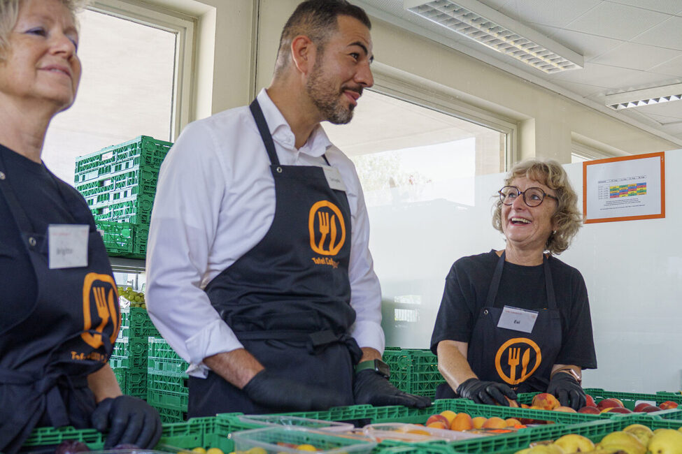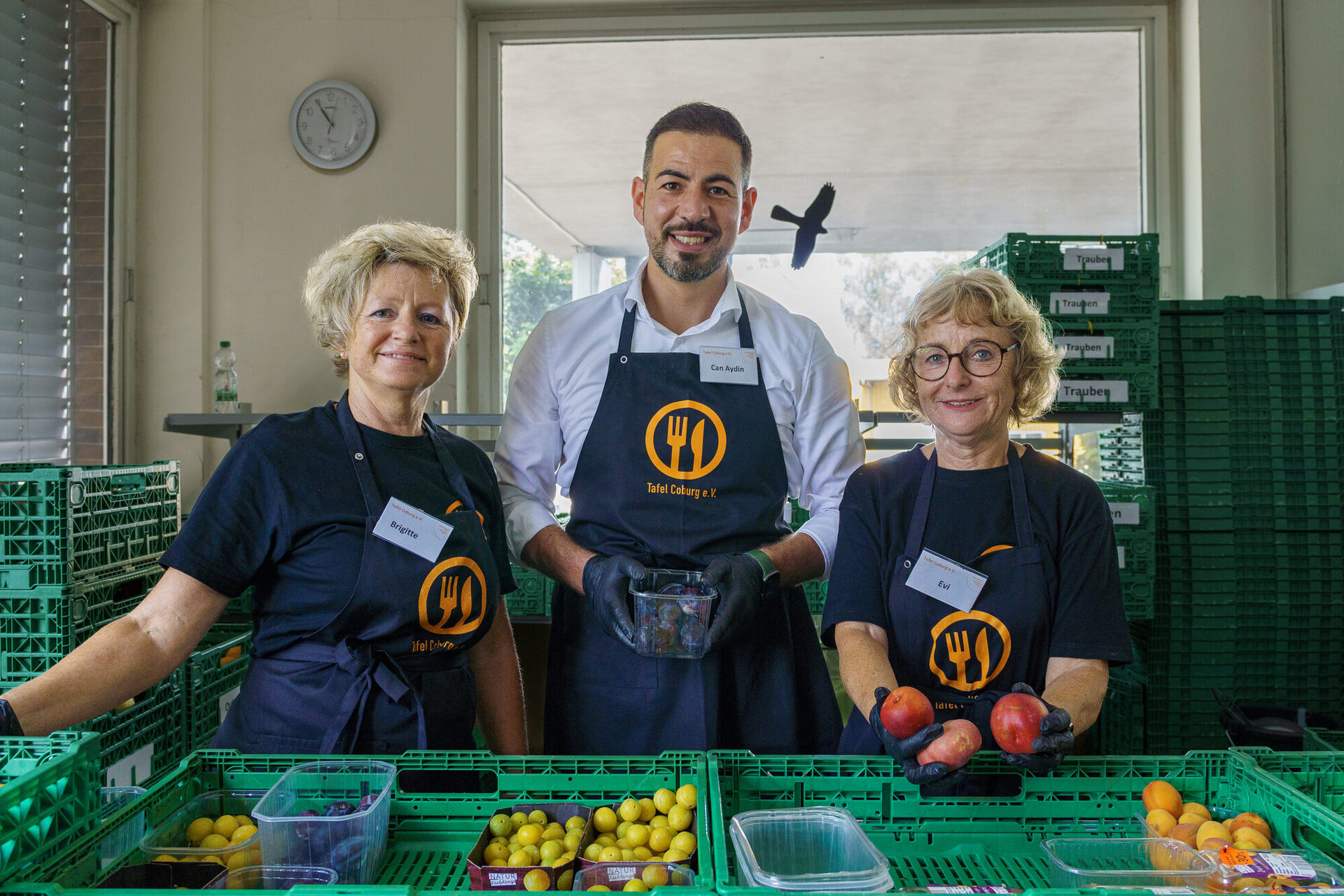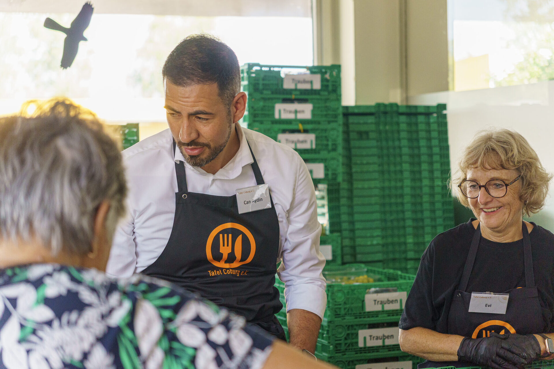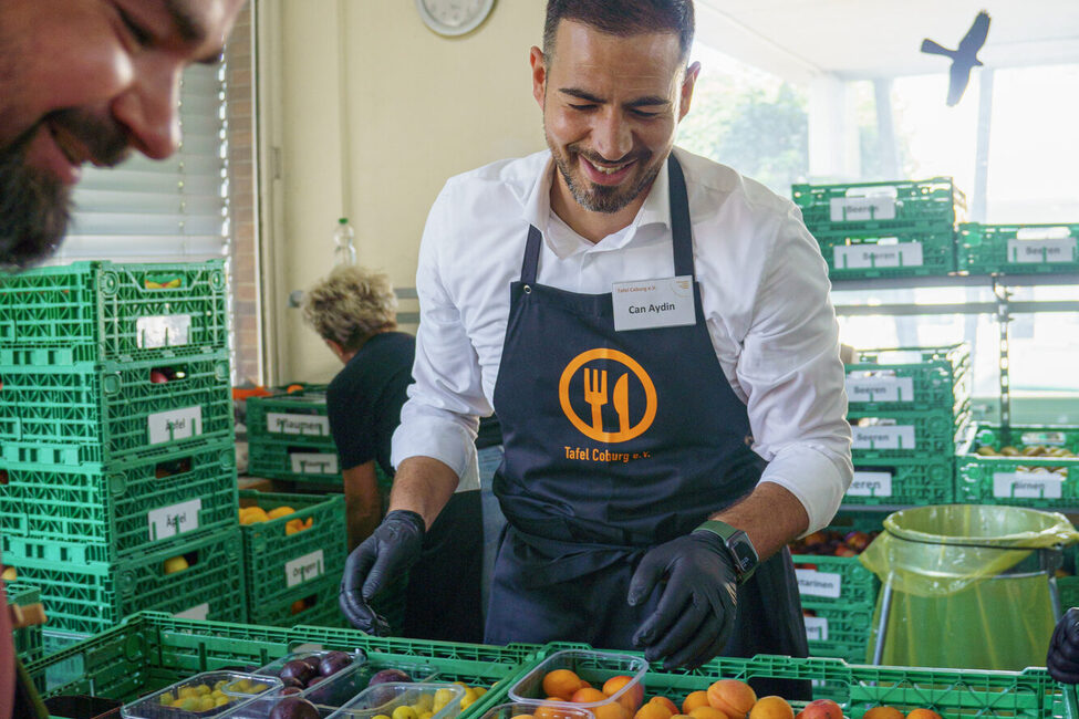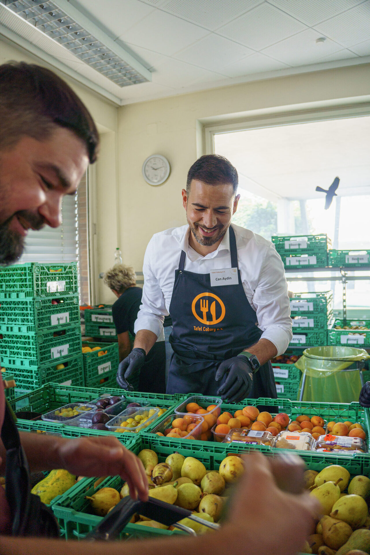 Schon nach wenigen Minuten ruft ein Junge: „Dich kenn ich, du hast uns mal in der Schule besucht“. „Wie war das Zeugnis?“, erkundigt sich Aydin. „Nur Zweier und Dreier“, erwidert der Junge stolz. Aydin gratuliert und wünscht schöne Ferien. Die ist eine der kleinen Begegnungen, die Aydin wichtig sind, die mit der Grund sind, warum er in der Tafel aushilft. „Die Stadt ist für alle Menschen in Coburg da. Wir können nicht nur über Parken in der Innenstadt, Lastenräder oder das Theater diskutieren – wir müssen auch den Kontakt zu den Menschen halten, bei denen die große Frage lautet: ‚Gibt es heute genug zu essen?‘. Es ist traurig, dass wir Einrichtungen, wie die Tafel brauchen – aber es ist gut, dass es sie gibt“, so Aydin.