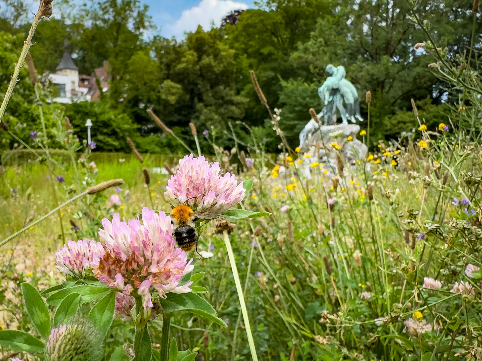 Mit dieser Mischung gelingt es dem Grünflächenamt, nicht nur die Biodiversität in der Stadt zu fördern, sondern auch ein nachhaltiges Ökosystem für Insekten und Kleinlebewesen zu schaffen. Dass sich diese Mühe lohnt, ist mit bloßem Auge sichtbar: Überall fliegen Bienen und Schmetterlinge, und wer genau hinhört, kann das Summen wahrnehmen. „Abschließend betrachten lässt sich das jedoch nicht. Die Förderung der Artenvielfalt ist eine langfristige Aufgabe – eine Daueraufgabe, die nie abgeschlossen sein wird“, sagt Bernhard Ledermann.