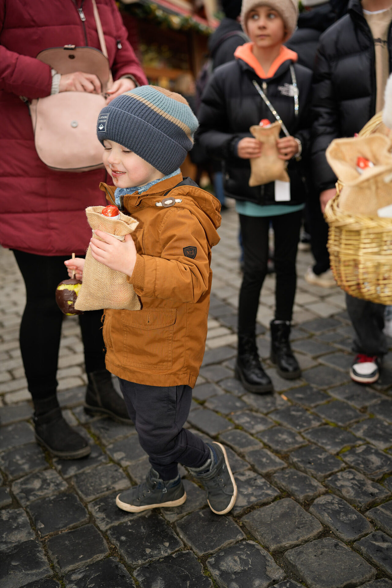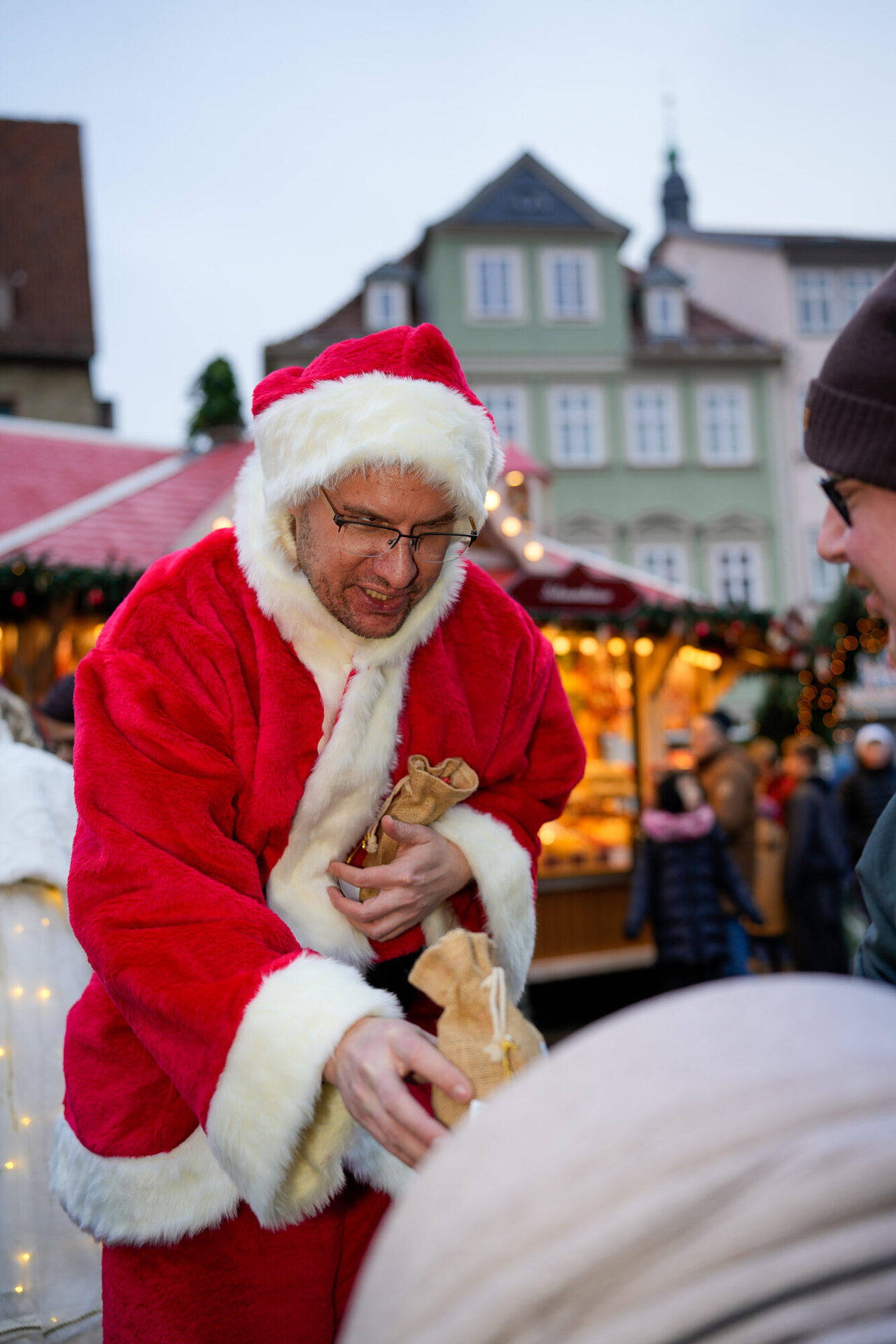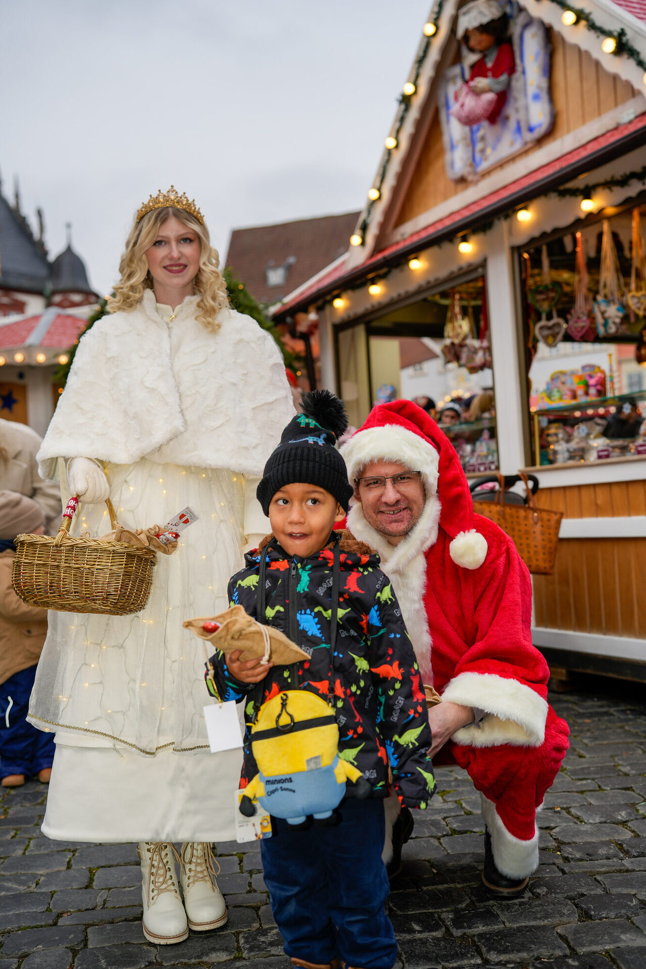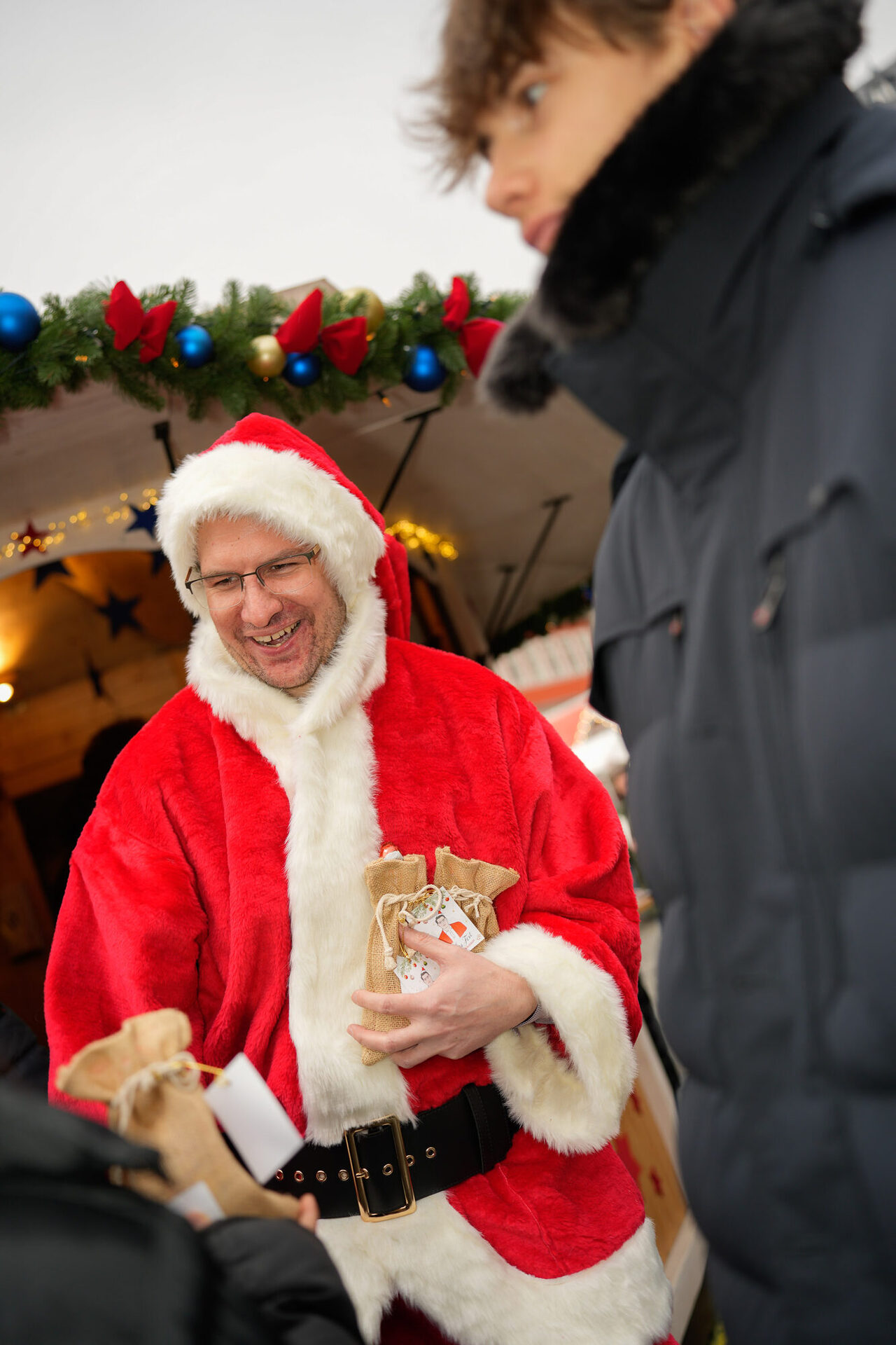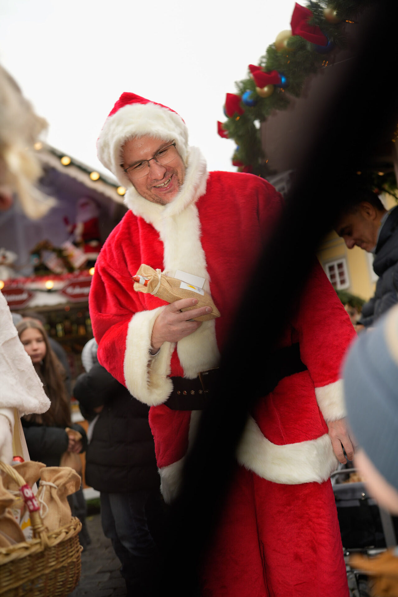 Pünktlich zum 6. Dezember hat der Nikolaus Station auf dem Coburger Weihnachtsmarkt gemacht. Zusammen mit dem Christkind hat er den Kindern eine kleine Freude gemacht.