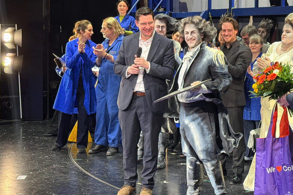 Begleitet von tosendem Applaus hielt Oberbürgermeister Dominik Sauerteig eine Laudatio: „Wir wollen uns heute gemeinsam verneigen vor dem künstlerischen Lebenswerk einer Coburger Künstlerpersönlichkeit.“ Intendant Neil Barry Moss lobte Lions außergewöhnliche Hingabe: "Michael war bislang über 1500 Vorstellungen bei uns und hat nur ein Mal gefehlt – ein Mal.“