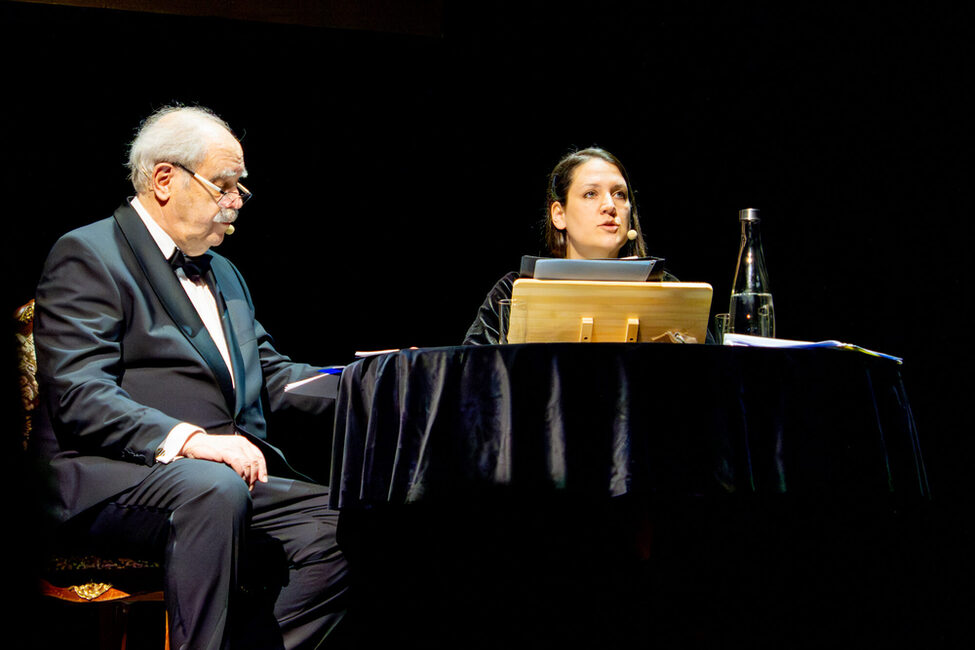 Die Präsentation des Buches im Globe ging weit über eine reine Lesung hinaus. Es wurden historische Fakten mit künstlerischen Elementen kombiniert, um die Atmosphäre der NS-Zeit zu veranschaulichen. So wurde ein jiddisches Wiegenlied, gesungen von einem Schauspieler als jüdischer Vater, abrupt von dröhnendem Trommelwirbel unterbrochen – Sinnbild für die Zerstörung von Menschlichkeit und Kultur im Nationalsozialismus. Filmmaterial, darunter der neu entdeckte Stummfilm „Hitler in Coburg 1932“, verdeutlichte die fanatische Begeisterung mancher Coburger für den „Führer“. Musikalische Beiträge, von romantischen Kompositionen bis hin zu Kirchenwerken, machten sichtbar, wie stark die kulturelle Identität der Stadt durch die NS-Diktatur beschädigt wurde.