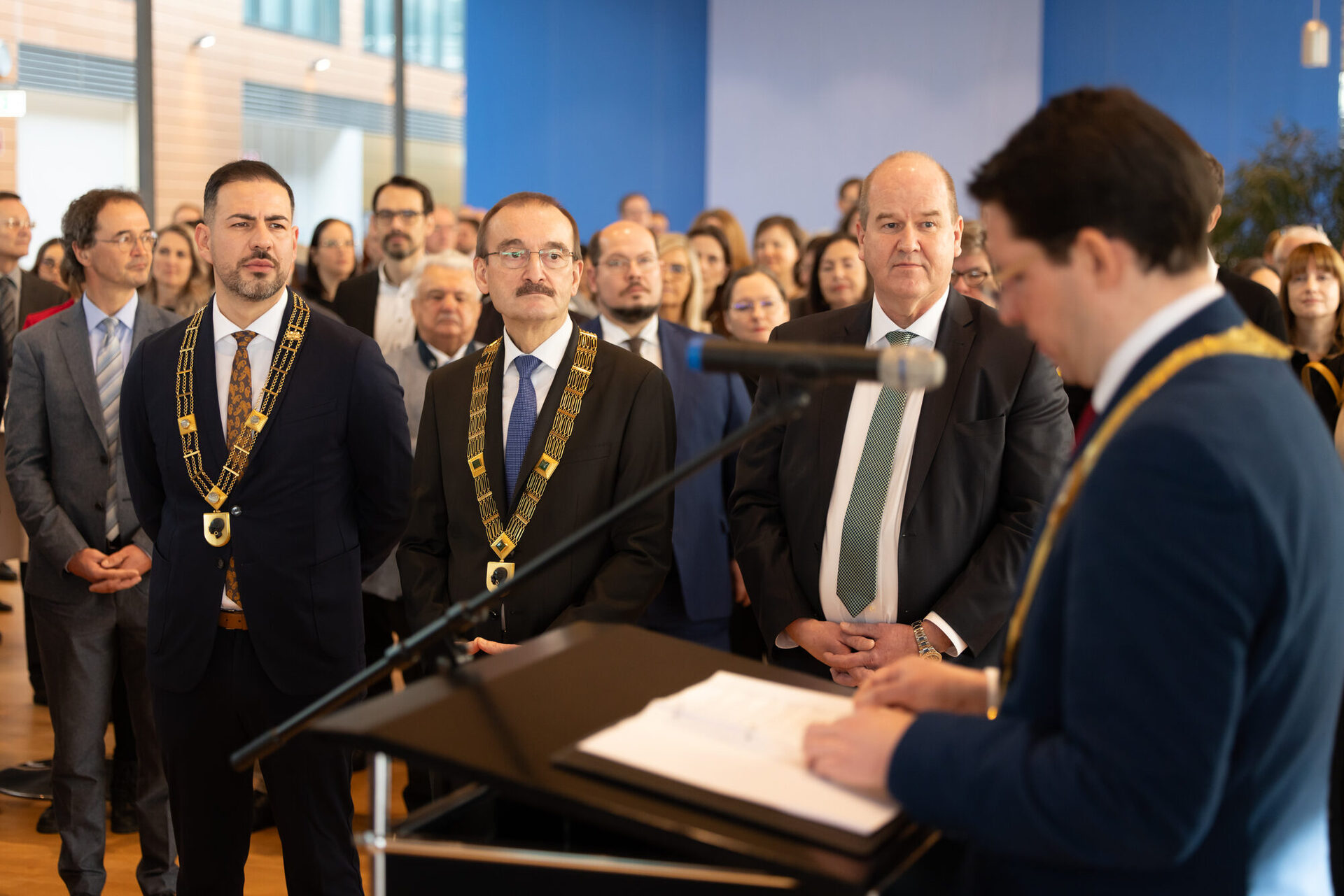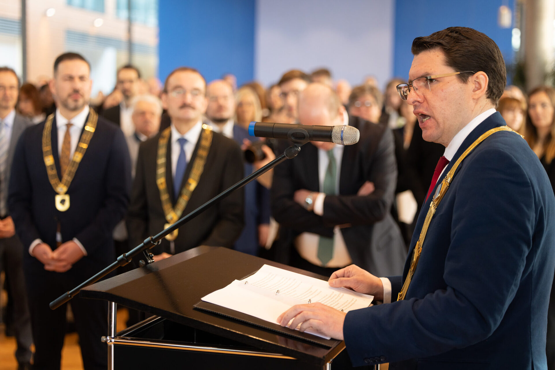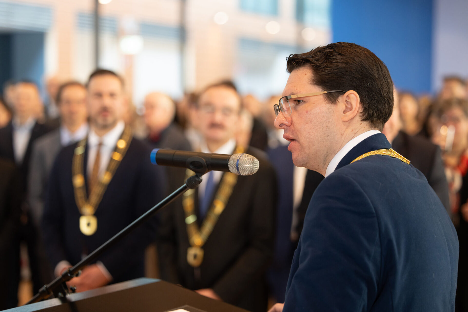 „Es war ein riesengroßer Glücksfall für Coburg“, betonte Oberbürgermeister Dominik Sauerteig gleich zu Beginn seiner Rede. Aus einer Kundenkartei mit 188 Namen habe sich die HUK-COBURG zum größten Arbeitgeber, wichtigsten Gewerbesteuerzahler und zu einem zentralen Stabilitätsfaktor der Stadt entwickelt. Allein in Coburg bietet das Unternehmen heute rund 6.000 Menschen sichere Arbeitsplätze – ein Fundament für viele Familien und für den Wohlstand der Stadt.