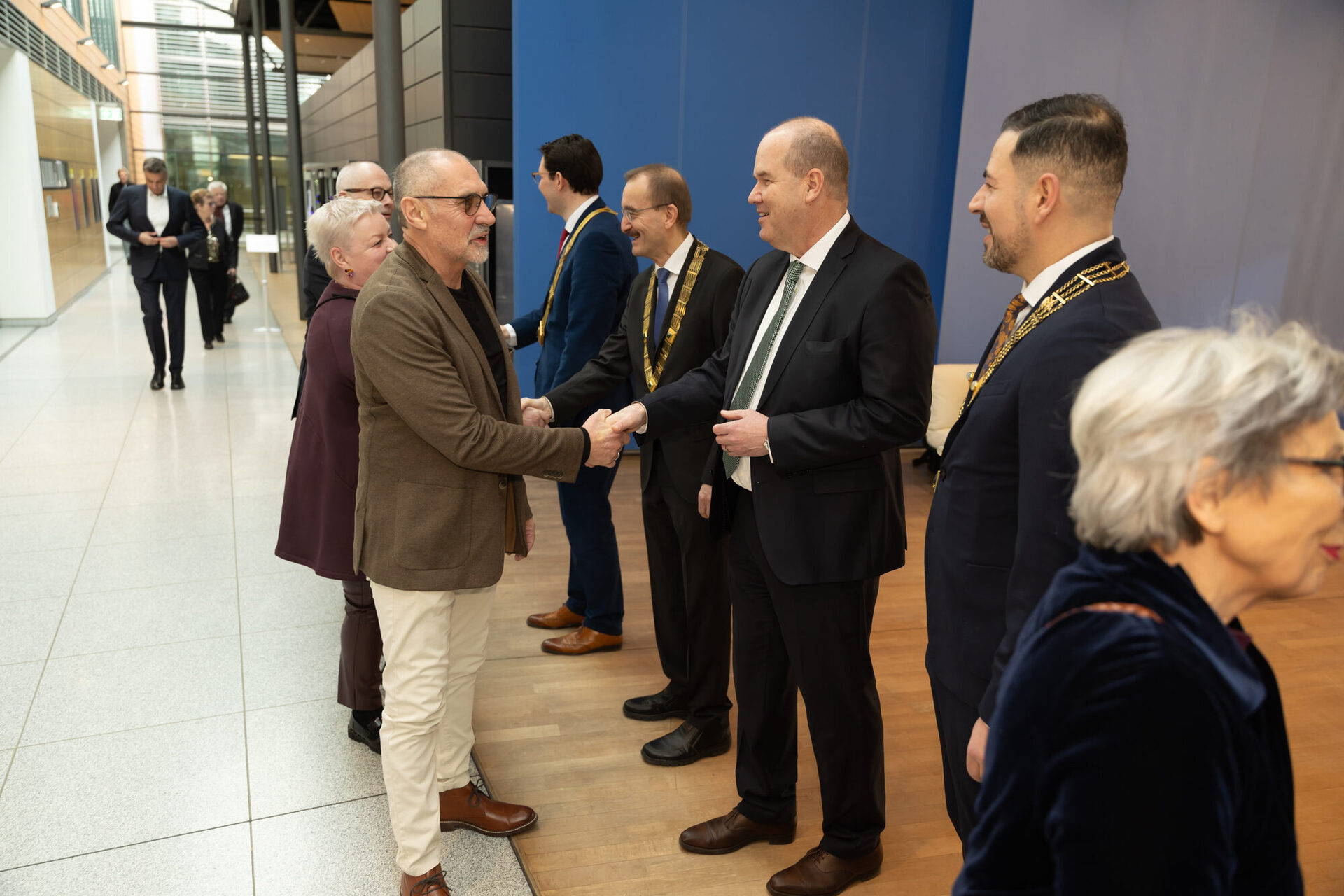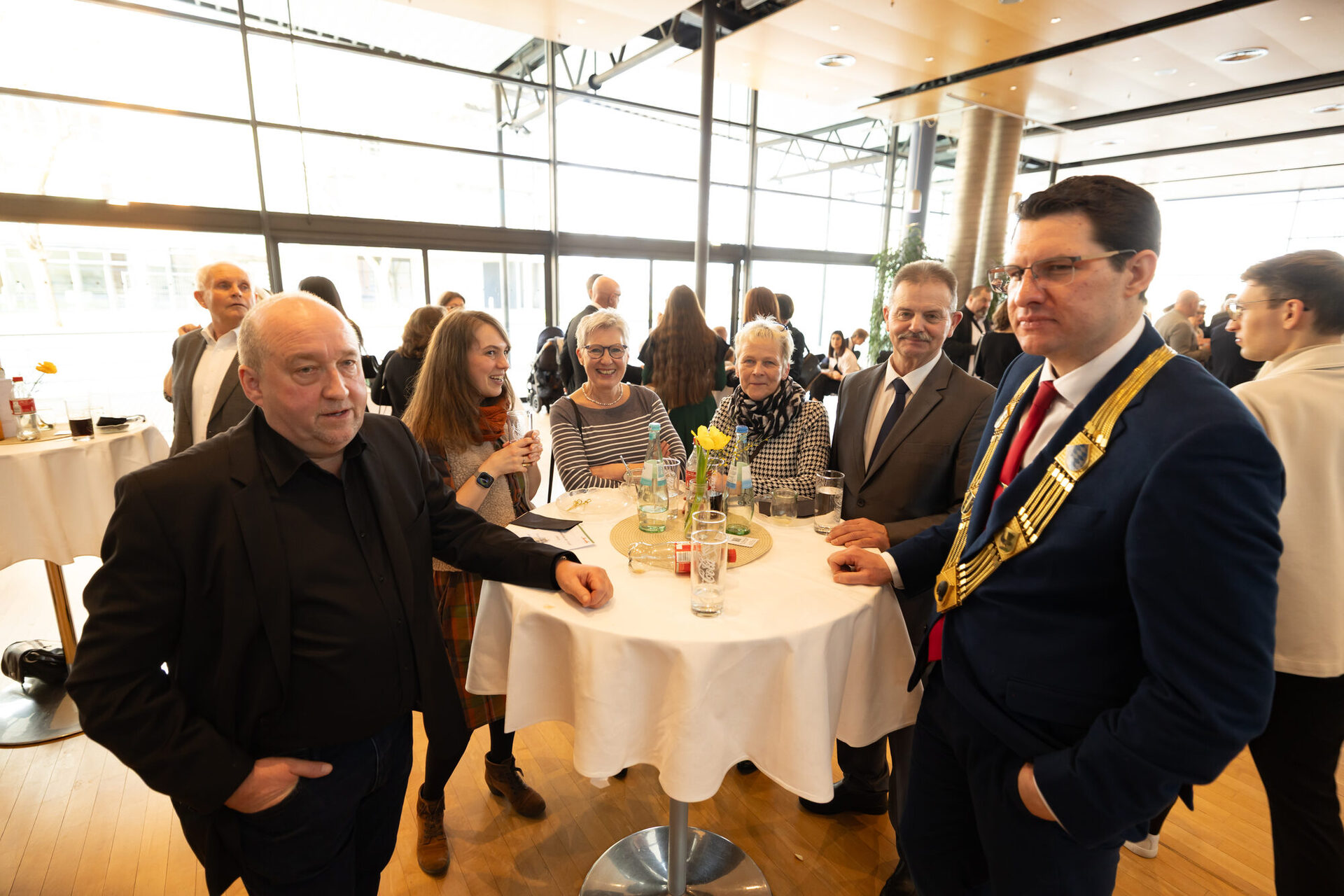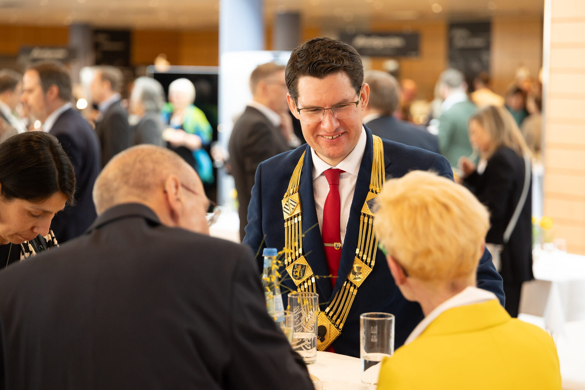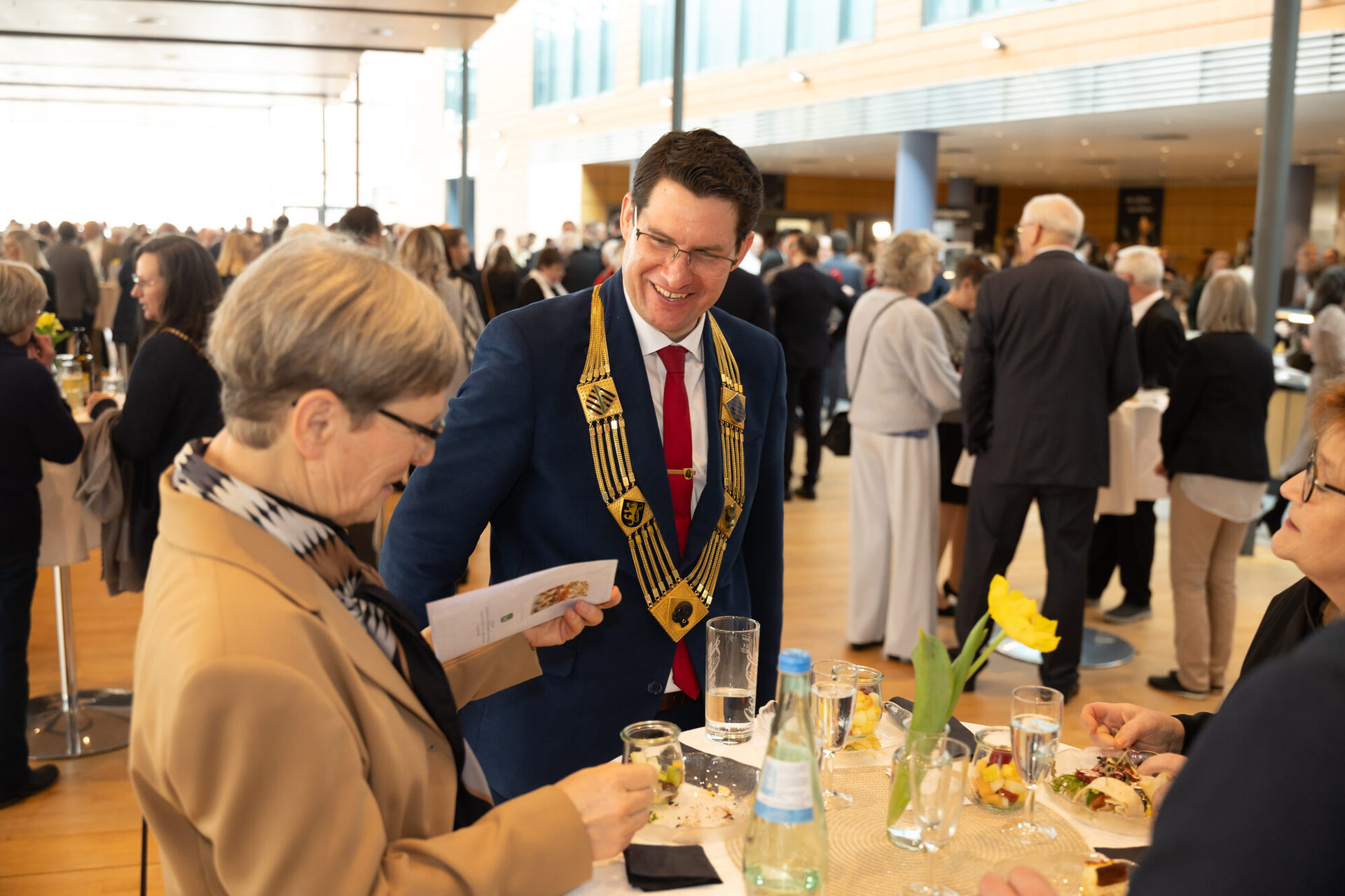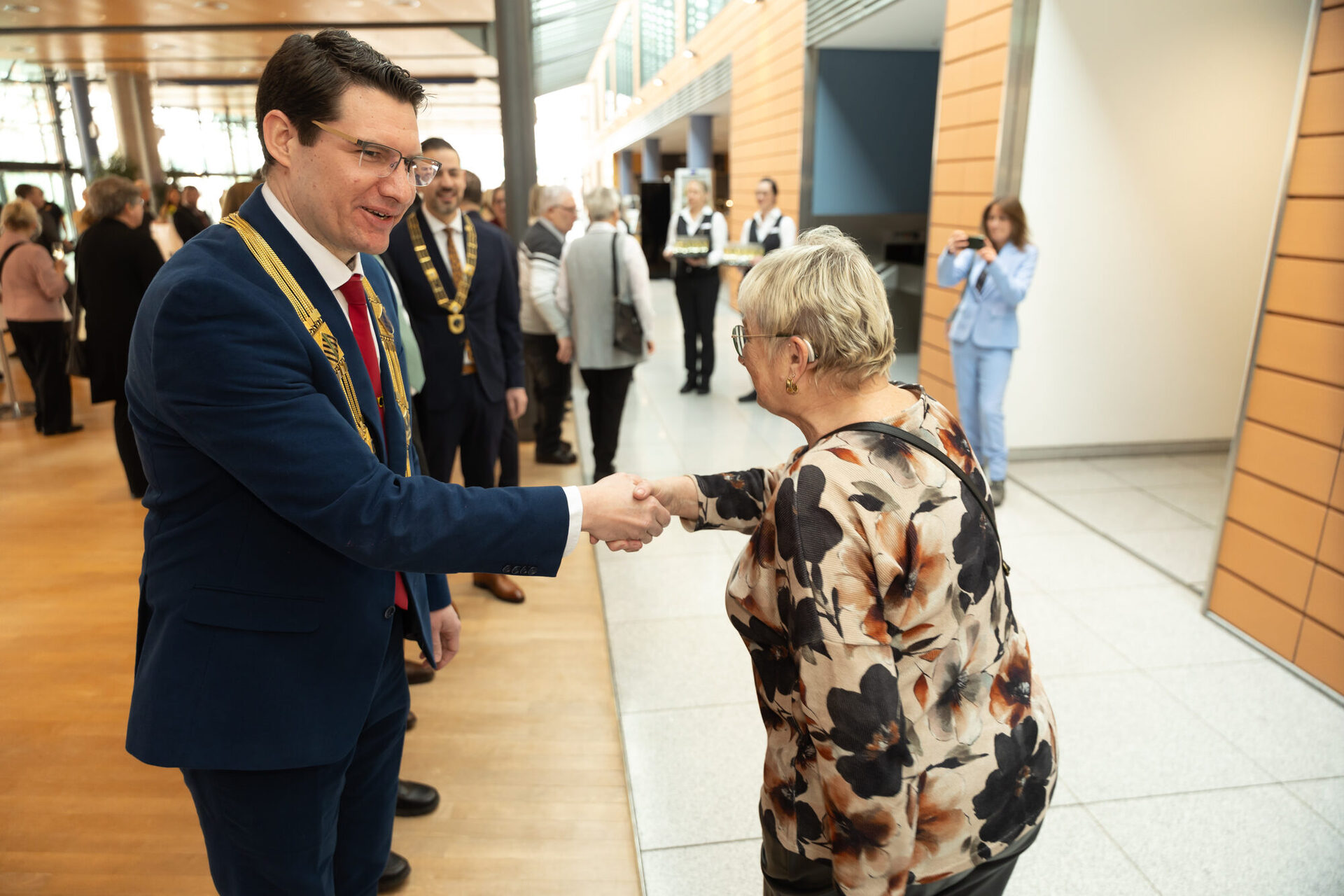 Neben den Vertreter*innen der Coburger Unternehmen, war es dem Oberbürgermeister wichtig, den Neujahrsempfang auch für weitere Akteur*innen der Stadtgesellschaft, die sich in besonderer Weise für die Stadt einsetzen oder sie prägen, zu öffnen: Ehren- und Hauptamtliche von Blaulichtorganisationen, Sportvereinen, sozialen Einrichtungen, Kultur und Bildung. Ergänzt wurde dieser Kreis auch in diesem Jahr durch geloste Bürger*innen ab 18 Jahren, die stellvertretend für die rund 41.000 Coburger*innen als Ehrengäste teilnahmen. So wurde der Empfang einmal mehr zu einem Querschnitt der Stadtgesellschaft.