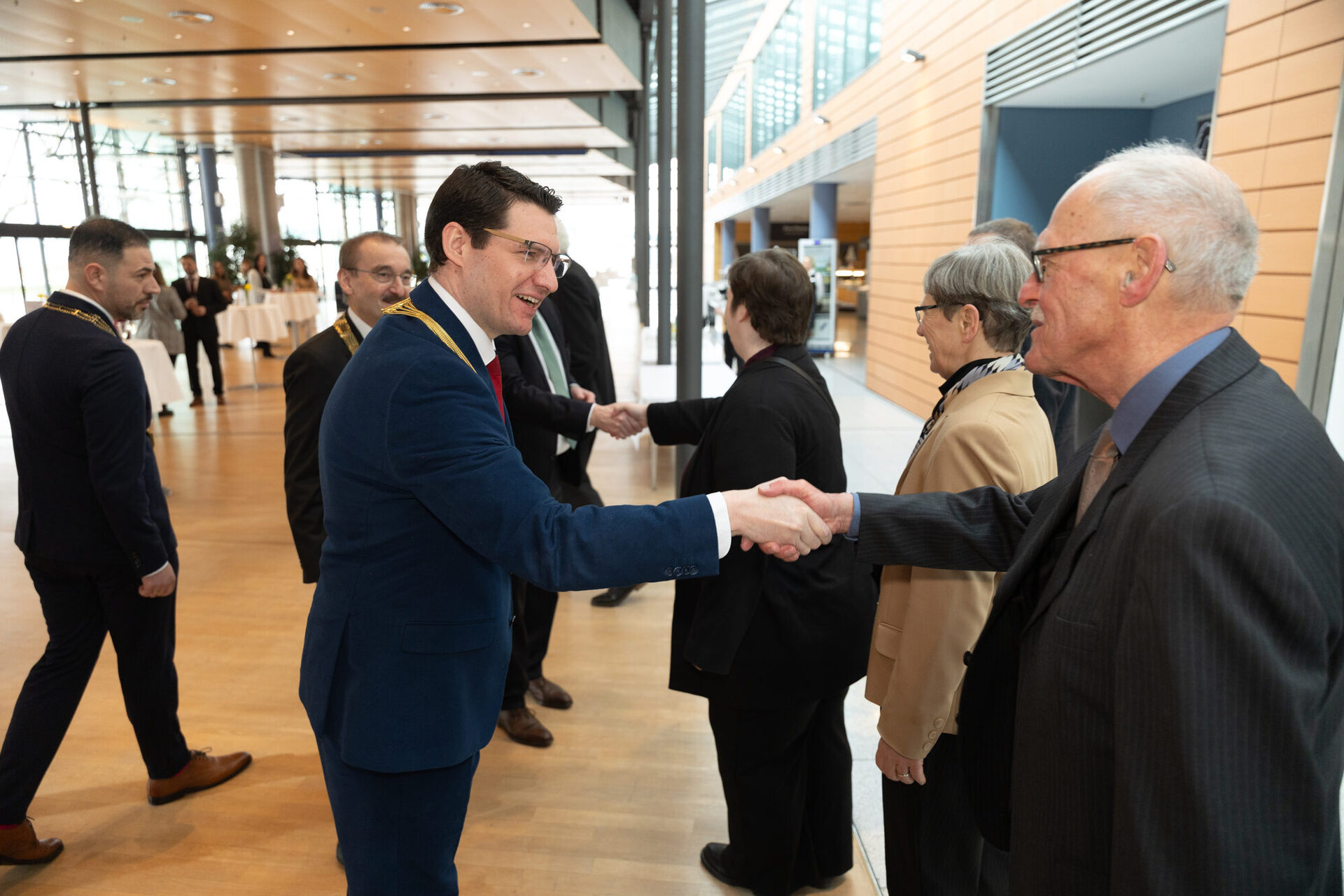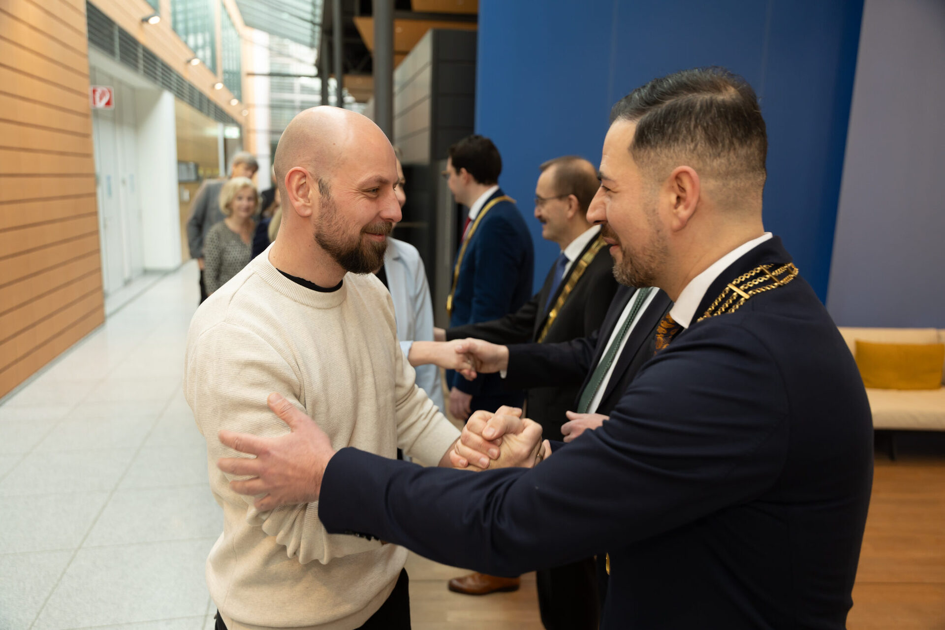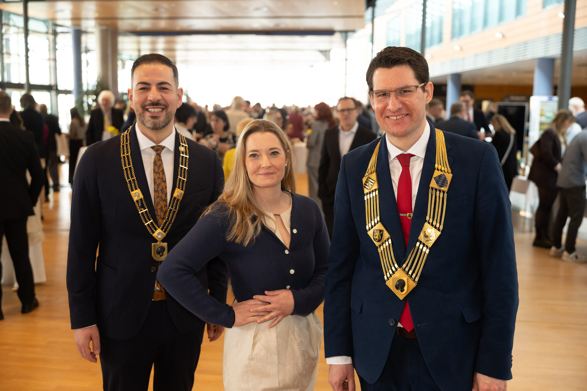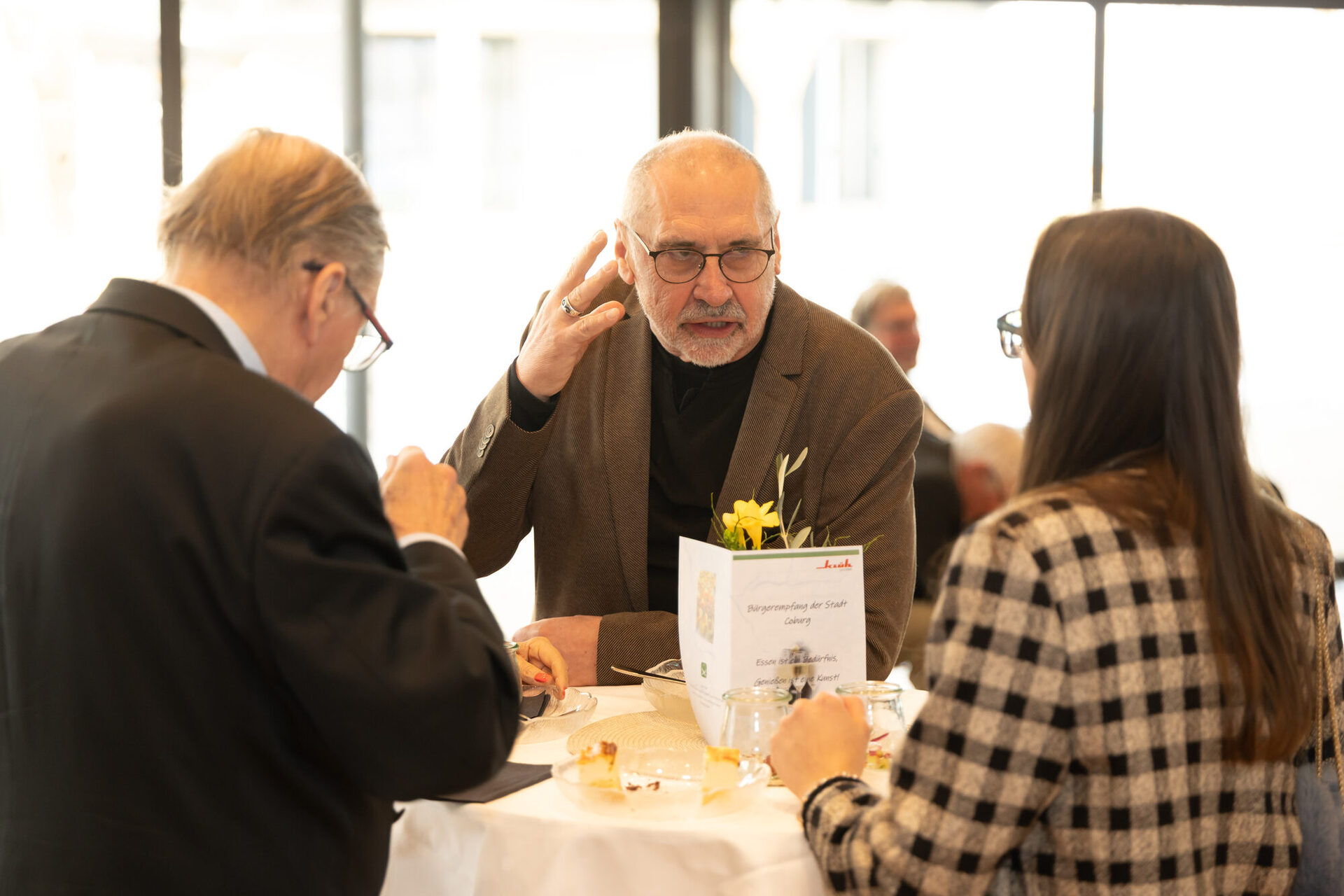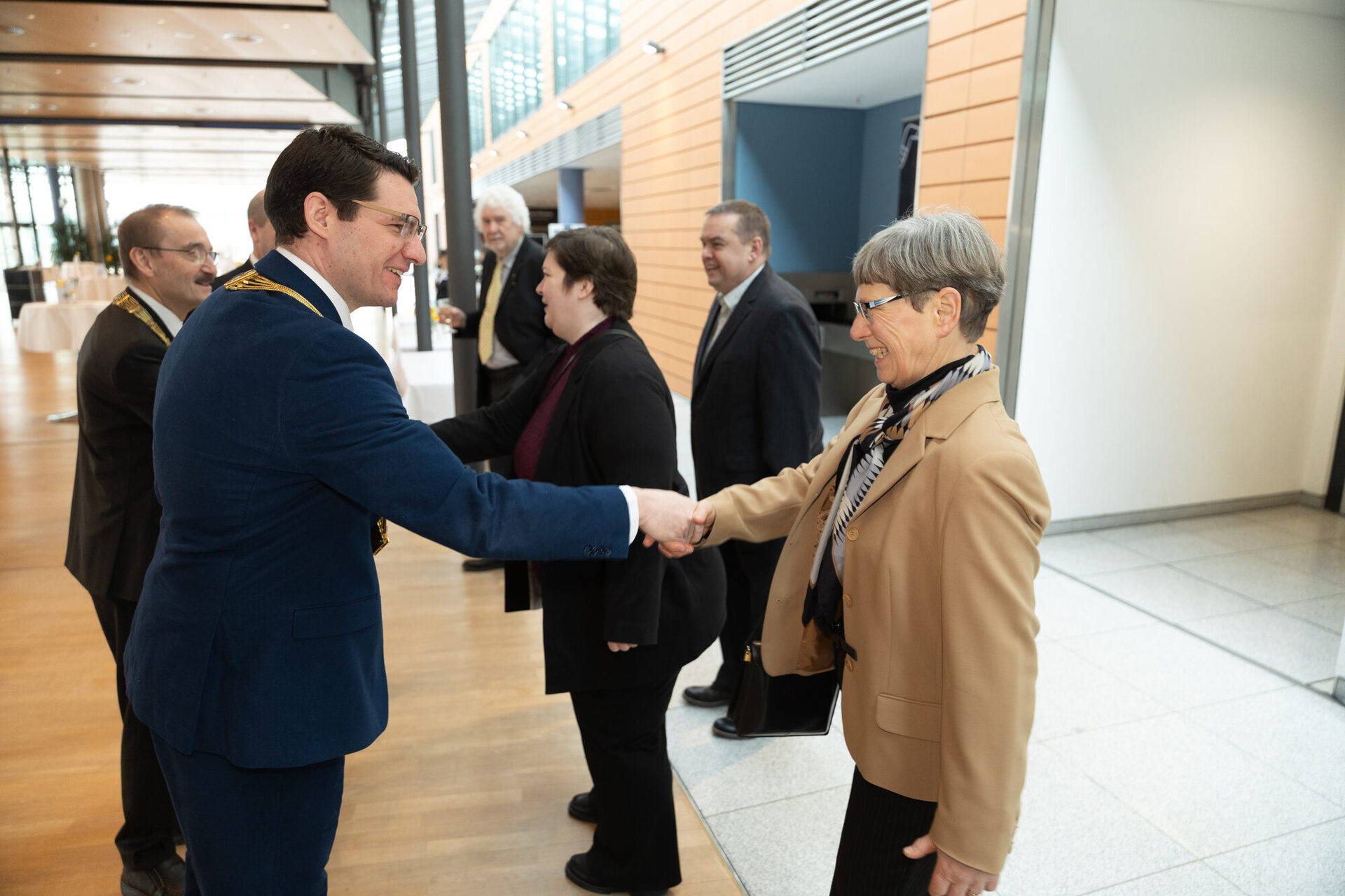 Neben den Vertreter*innen der Coburger Unternehmen, war es dem Oberbürgermeister wichtig, den Neujahrsempfang auch für weitere Akteur*innen der Stadtgesellschaft, die sich in besonderer Weise für die Stadt einsetzen oder sie prägen, zu öffnen: Ehren- und Hauptamtliche von Blaulichtorganisationen, Sportvereinen, sozialen Einrichtungen, Kultur und Bildung. Ergänzt wurde dieser Kreis auch in diesem Jahr durch geloste Bürger*innen ab 18 Jahren, die stellvertretend für die rund 41.000 Coburger*innen als Ehrengäste teilnahmen. So wurde der Empfang einmal mehr zu einem Querschnitt der Stadtgesellschaft.