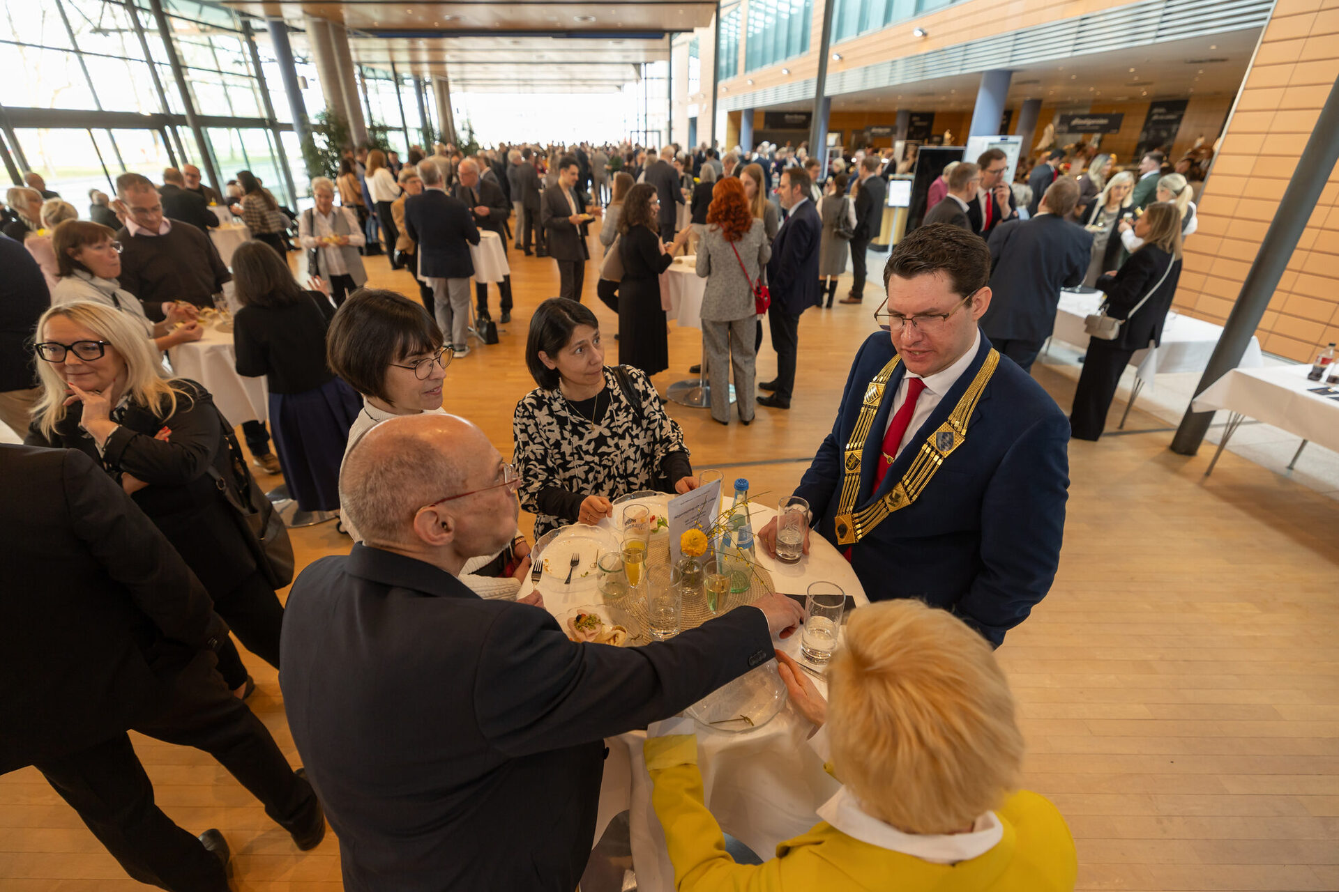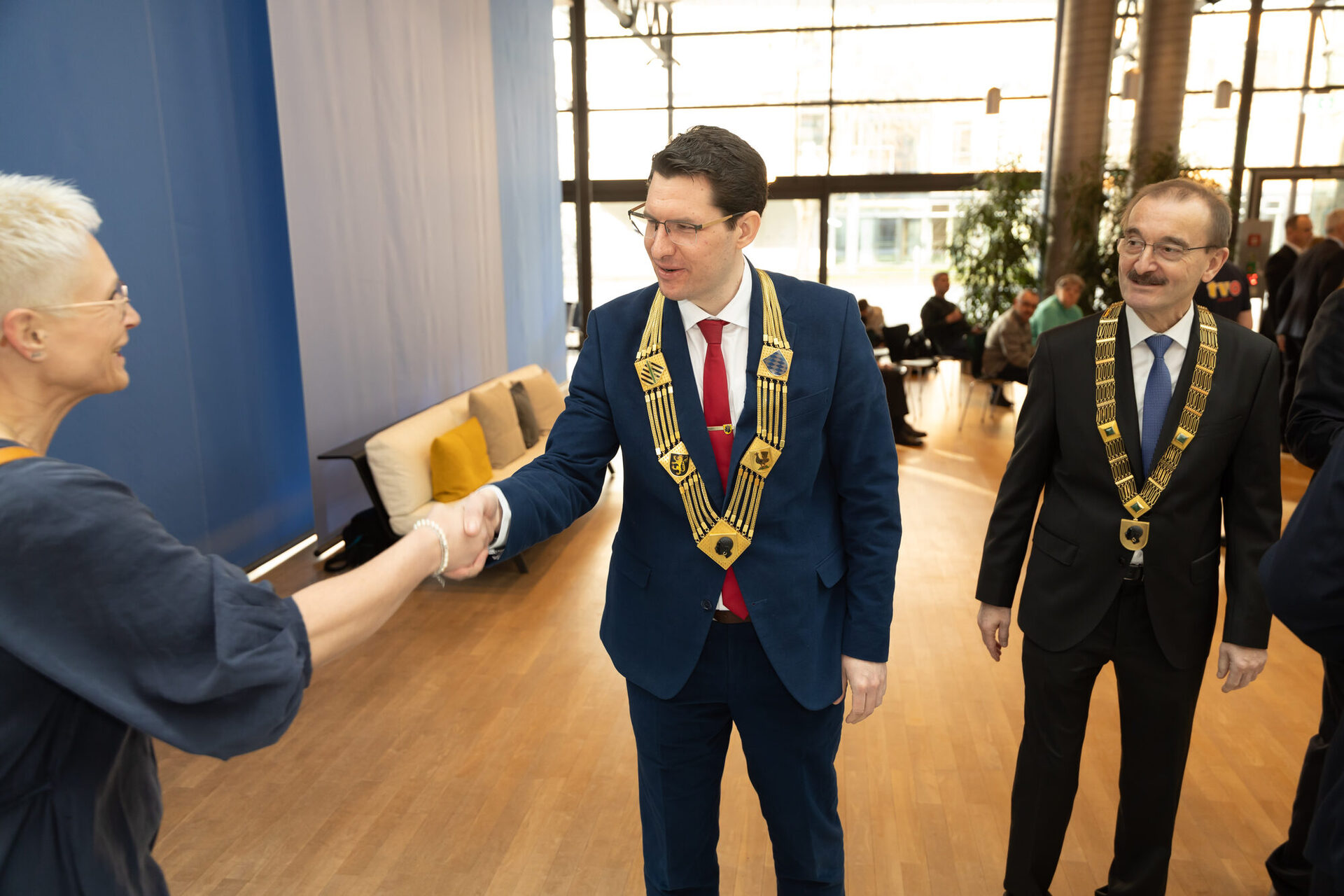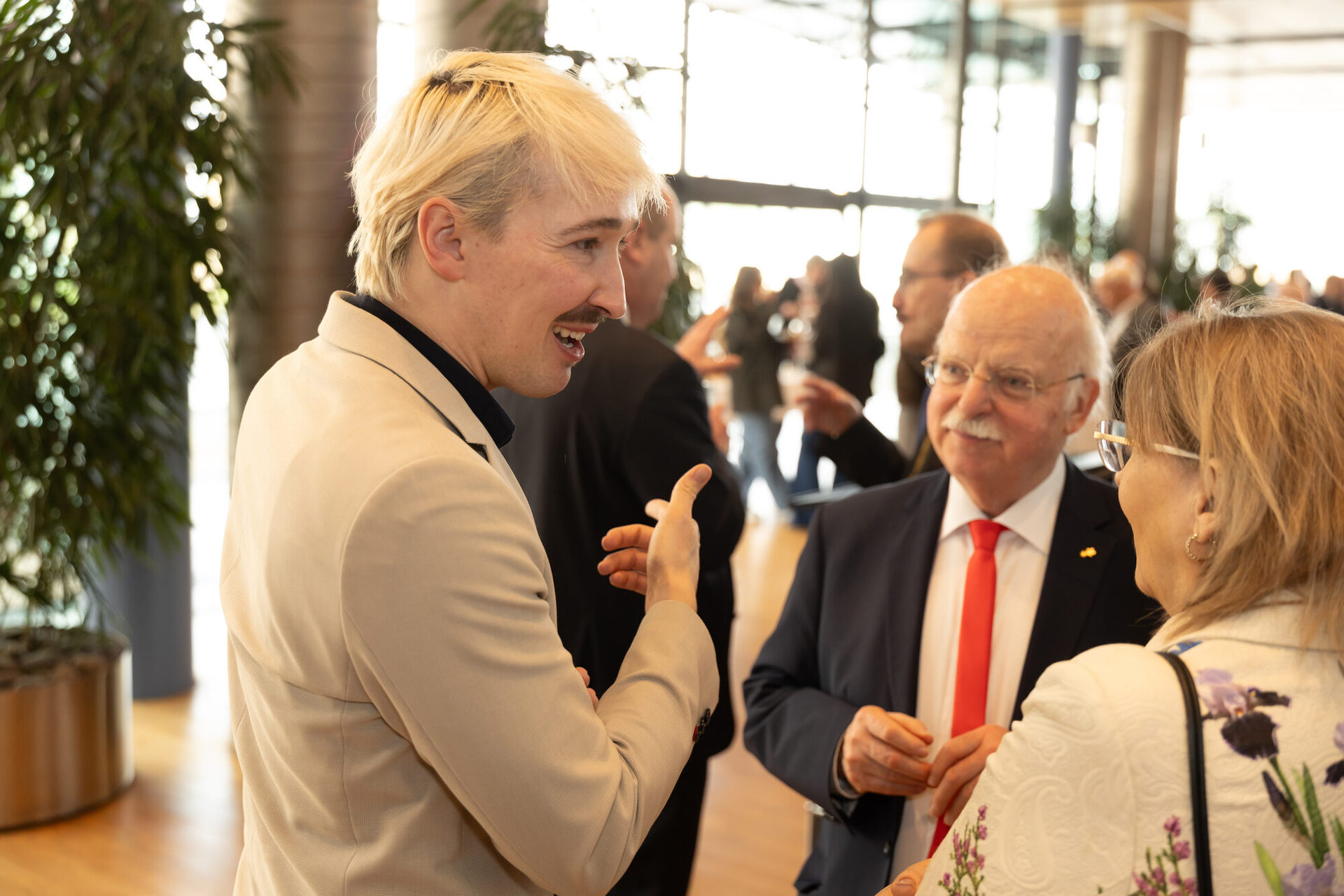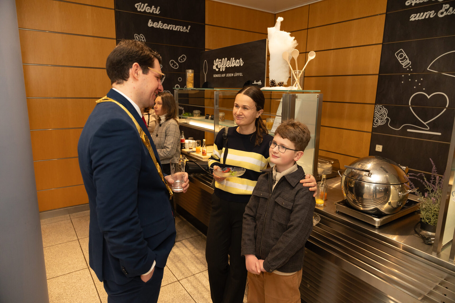 Neben den Vertreter*innen der Coburger Unternehmen, war es dem Oberbürgermeister wichtig, den Neujahrsempfang auch für weitere Akteur*innen der Stadtgesellschaft, die sich in besonderer Weise für die Stadt einsetzen oder sie prägen, zu öffnen: Ehren- und Hauptamtliche von Blaulichtorganisationen, Sportvereinen, sozialen Einrichtungen, Kultur und Bildung. Ergänzt wurde dieser Kreis auch in diesem Jahr durch geloste Bürger*innen ab 18 Jahren, die stellvertretend für die rund 41.000 Coburger*innen als Ehrengäste teilnahmen. So wurde der Empfang einmal mehr zu einem Querschnitt der Stadtgesellschaft.