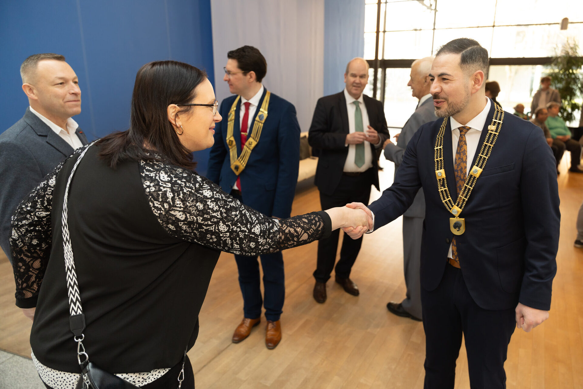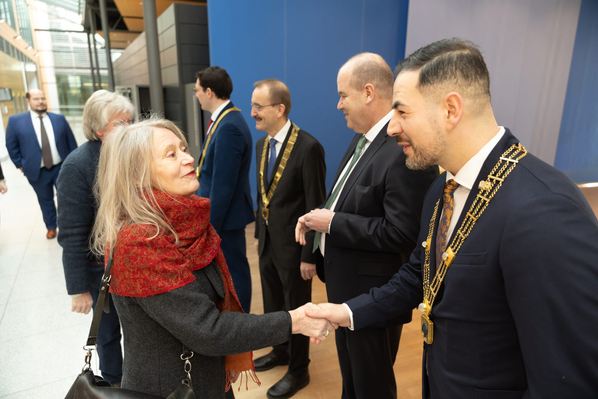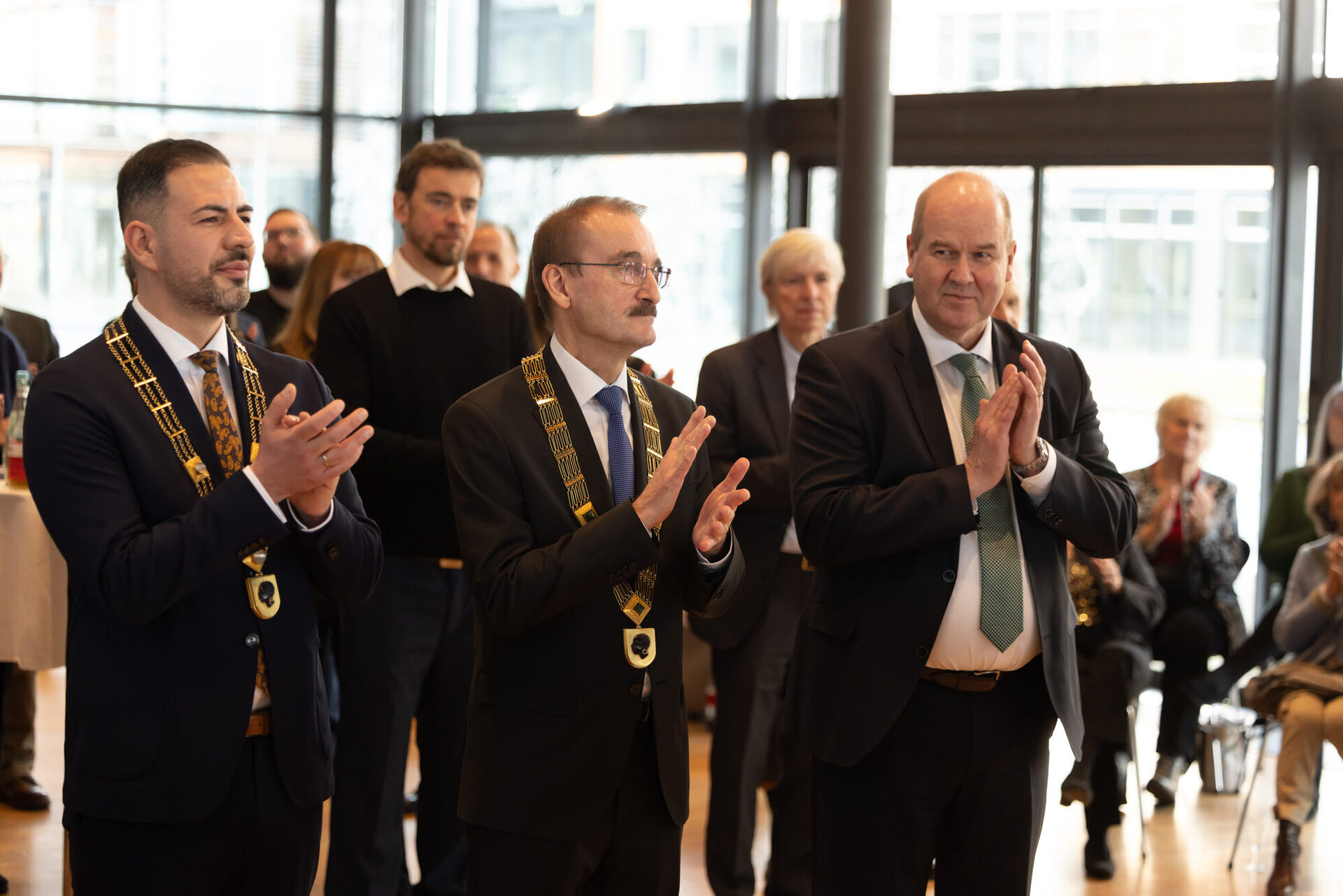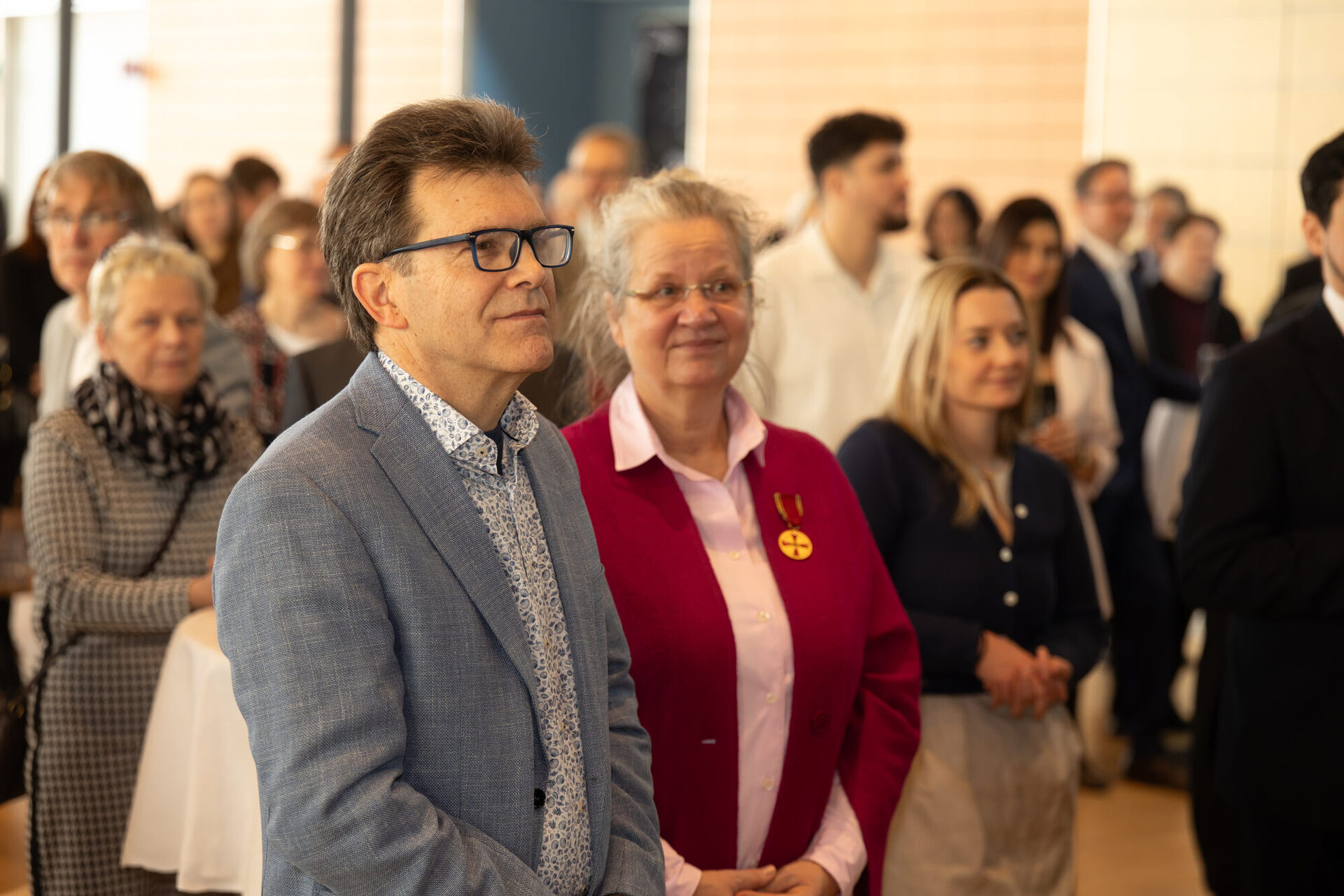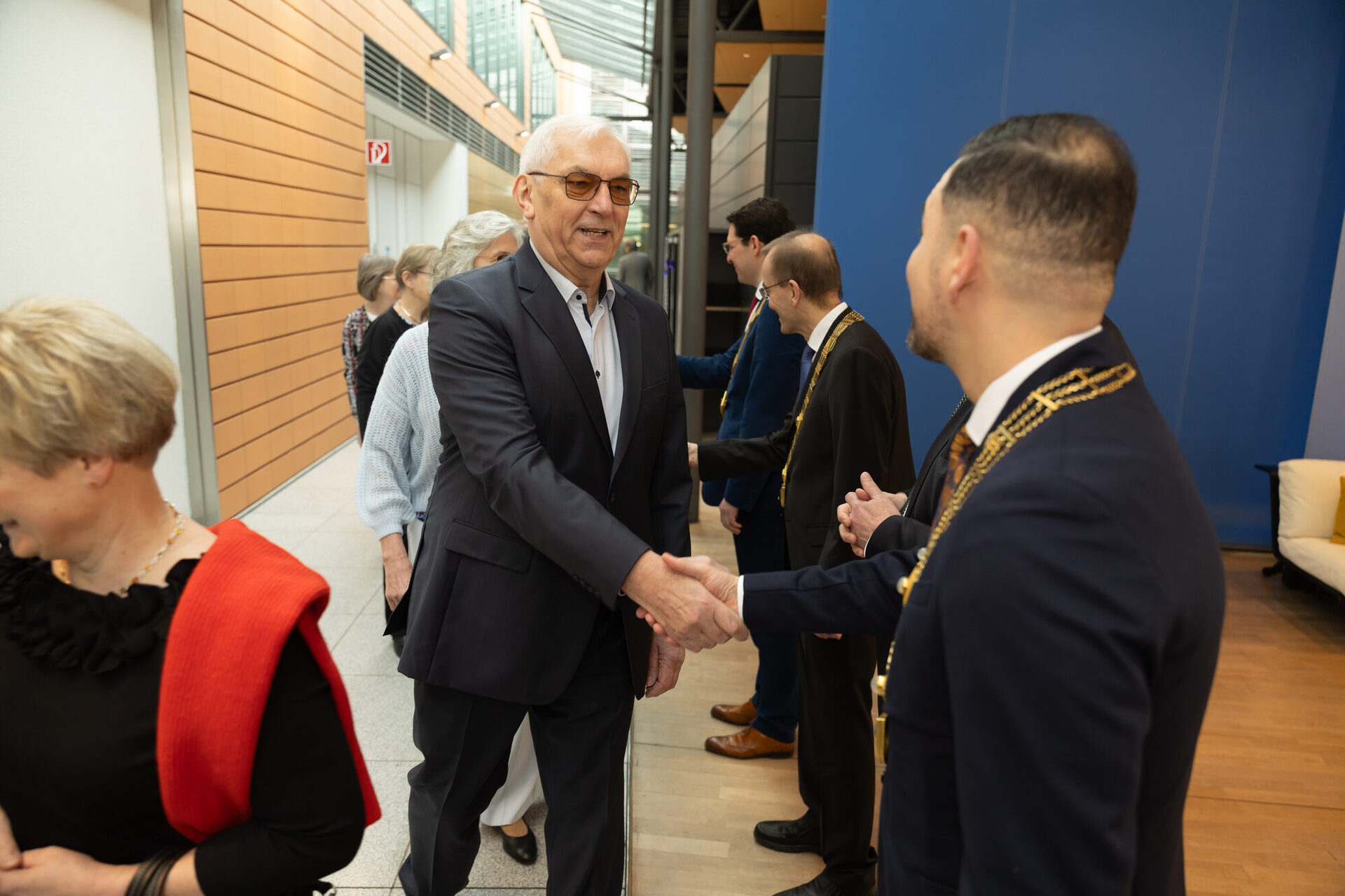 Neben den Vertreter*innen der Coburger Unternehmen, war es dem Oberbürgermeister wichtig, den Neujahrsempfang auch für weitere Akteur*innen der Stadtgesellschaft, die sich in besonderer Weise für die Stadt einsetzen oder sie prägen, zu öffnen: Ehren- und Hauptamtliche von Blaulichtorganisationen, Sportvereinen, sozialen Einrichtungen, Kultur und Bildung. Ergänzt wurde dieser Kreis auch in diesem Jahr durch geloste Bürger*innen ab 18 Jahren, die stellvertretend für die rund 41.000 Coburger*innen als Ehrengäste teilnahmen. So wurde der Empfang einmal mehr zu einem Querschnitt der Stadtgesellschaft.