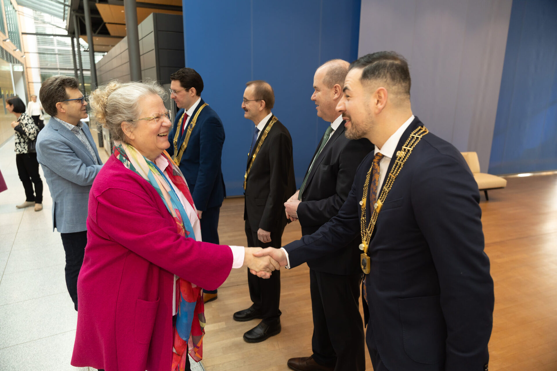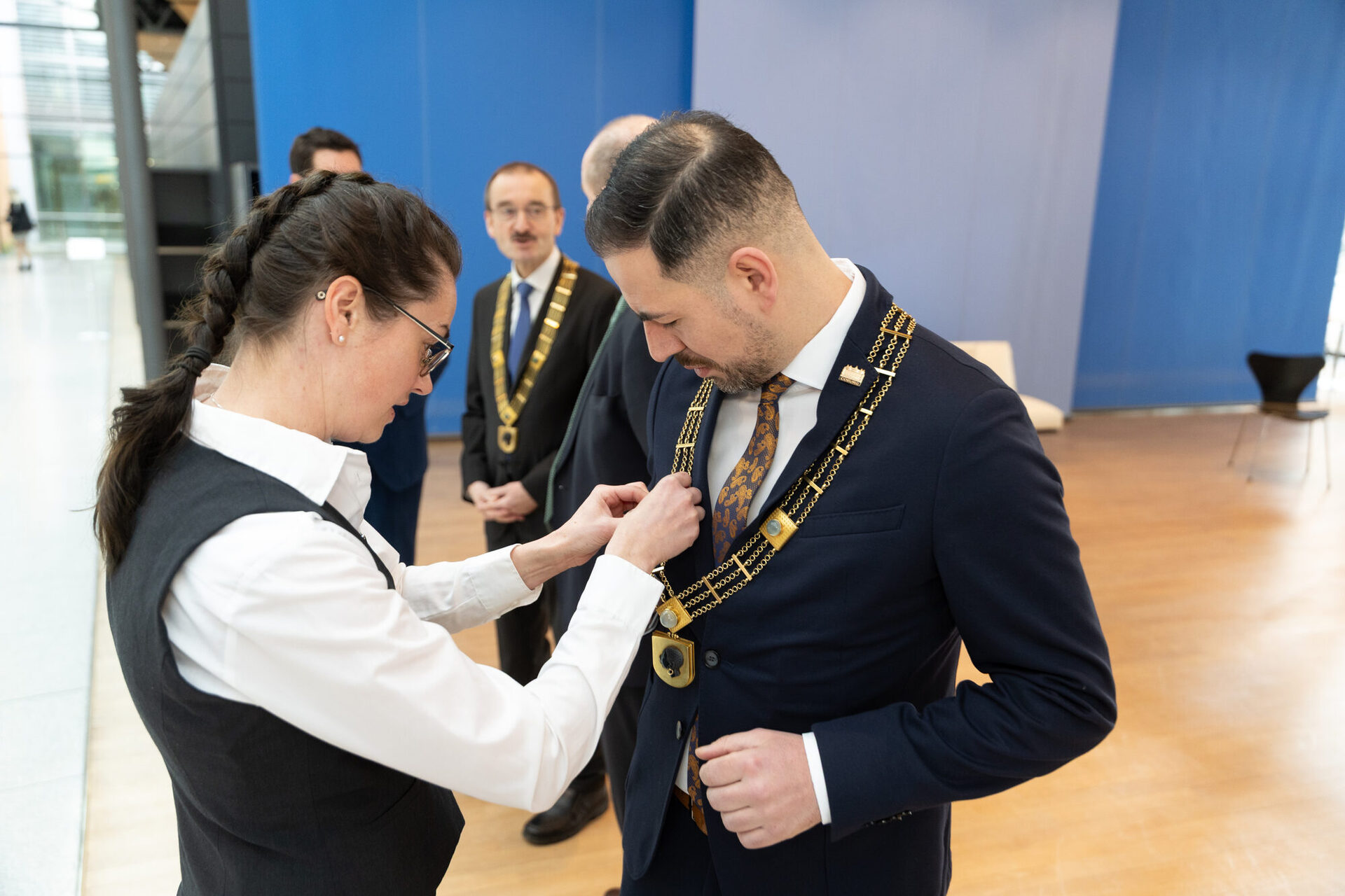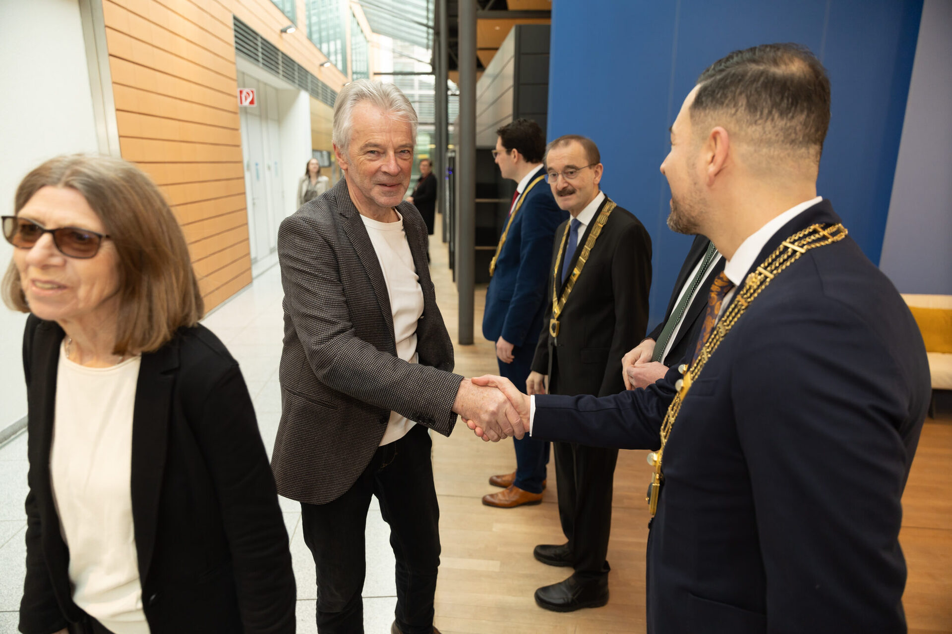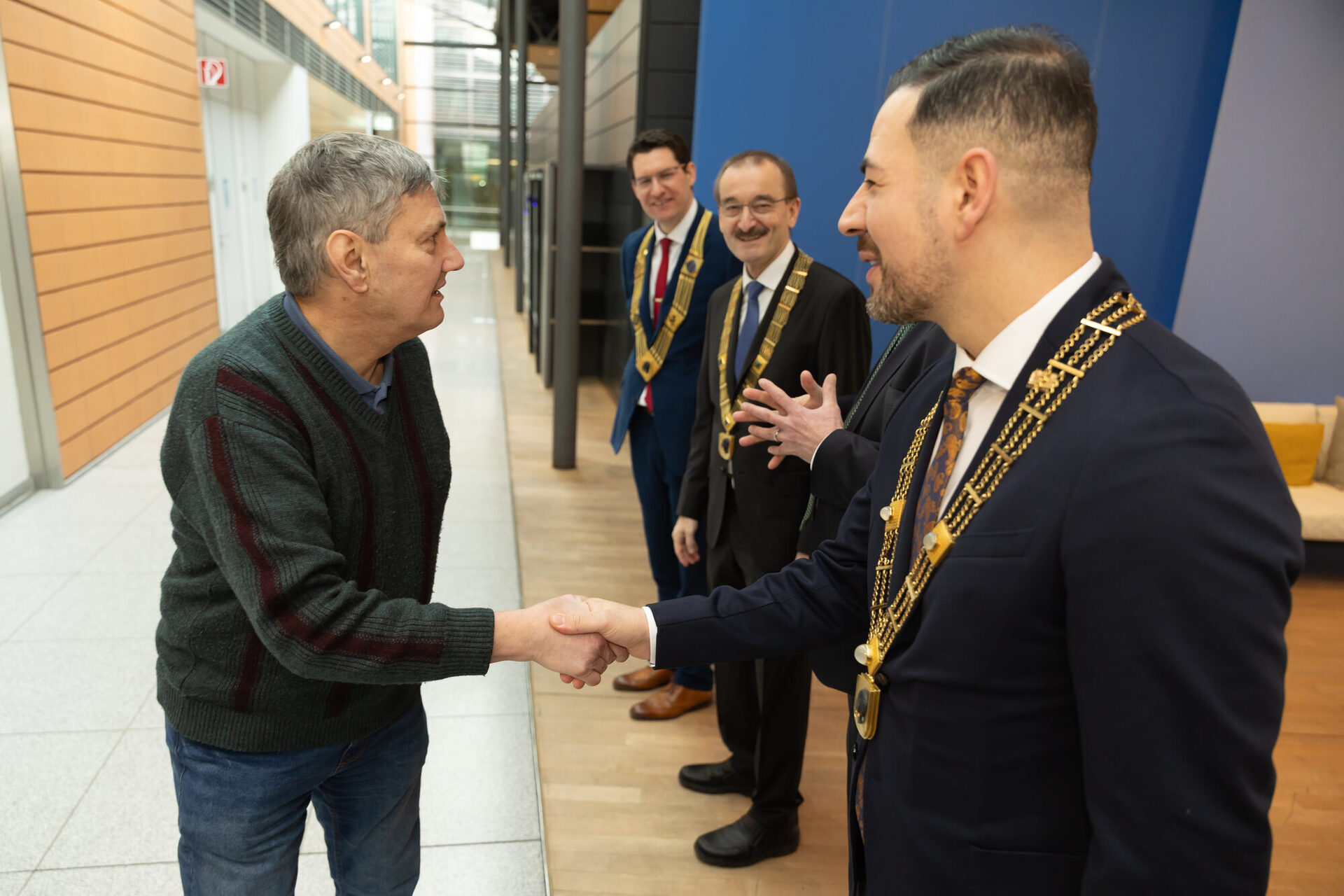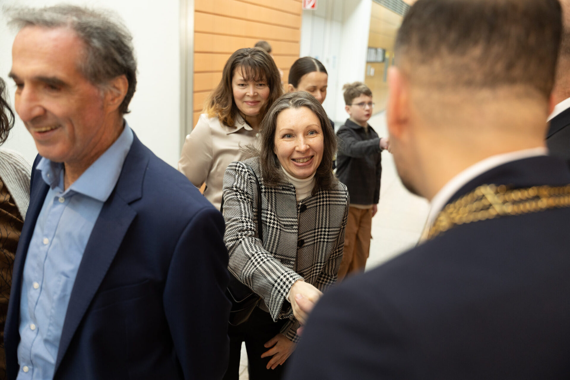 Neben den Vertreter*innen der Coburger Unternehmen, war es dem Oberbürgermeister wichtig, den Neujahrsempfang auch für weitere Akteur*innen der Stadtgesellschaft, die sich in besonderer Weise für die Stadt einsetzen oder sie prägen, zu öffnen: Ehren- und Hauptamtliche von Blaulichtorganisationen, Sportvereinen, sozialen Einrichtungen, Kultur und Bildung. Ergänzt wurde dieser Kreis auch in diesem Jahr durch geloste Bürger*innen ab 18 Jahren, die stellvertretend für die rund 41.000 Coburger*innen als Ehrengäste teilnahmen. So wurde der Empfang einmal mehr zu einem Querschnitt der Stadtgesellschaft.