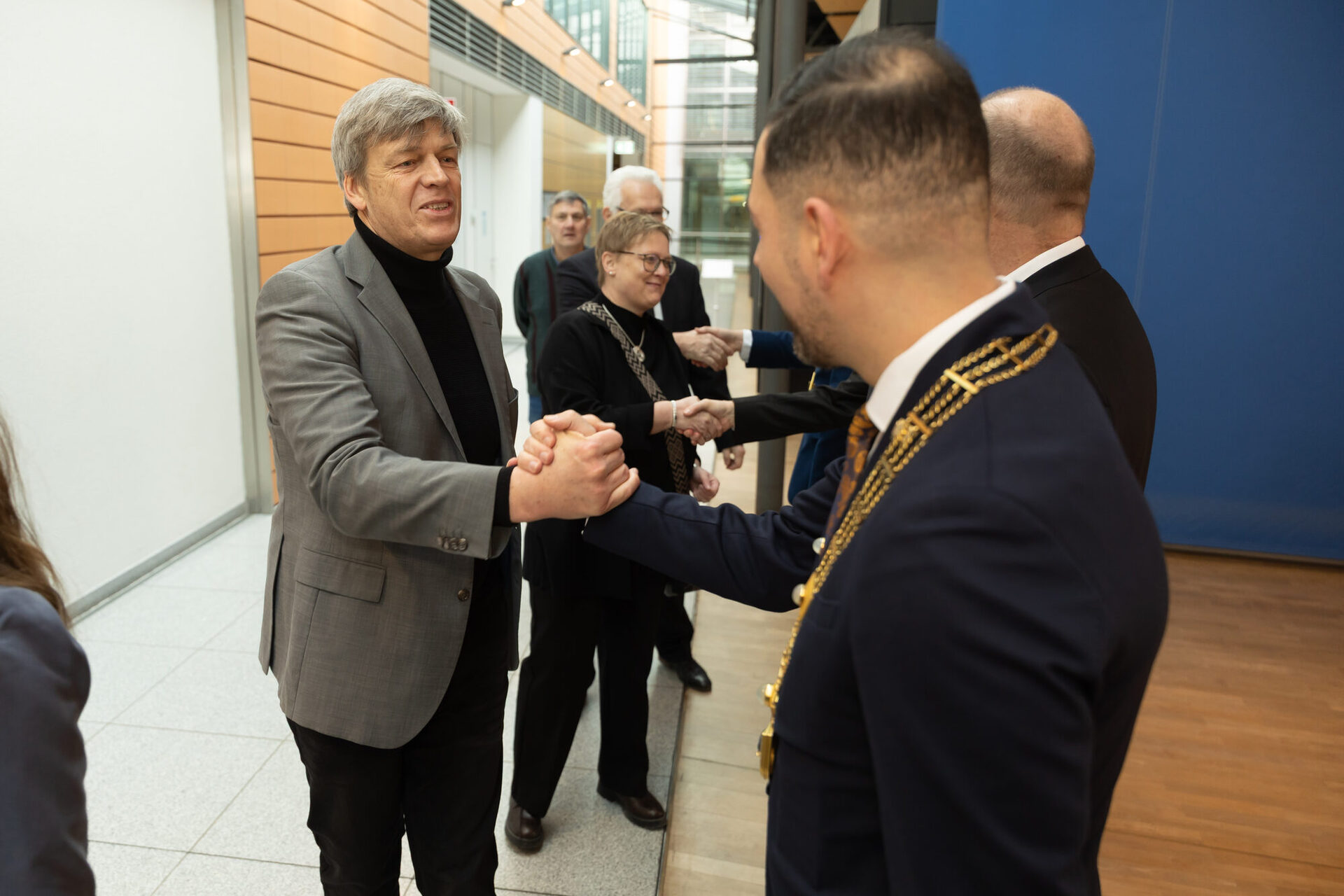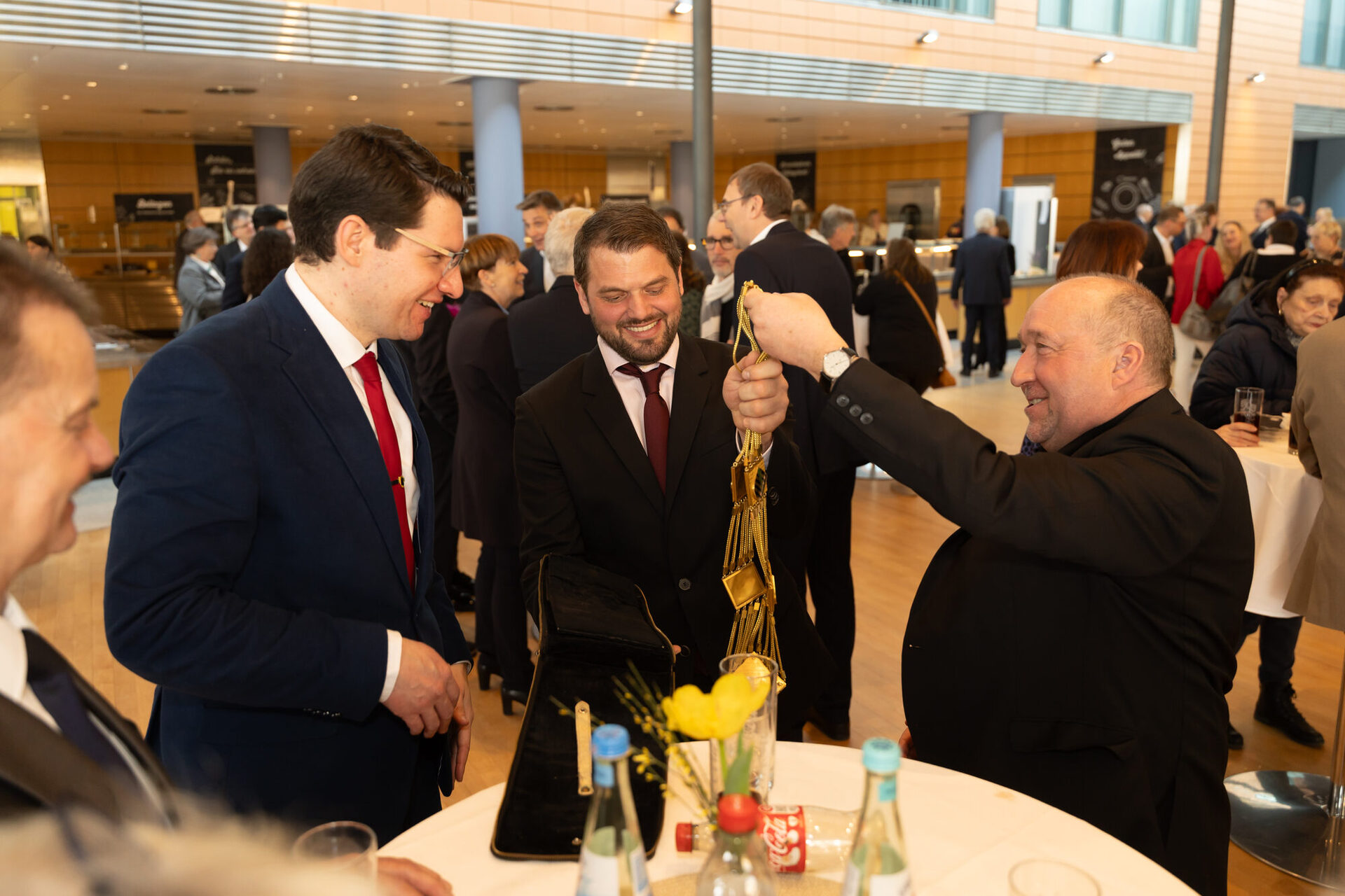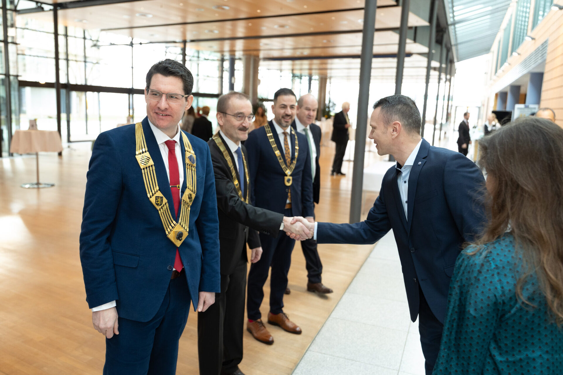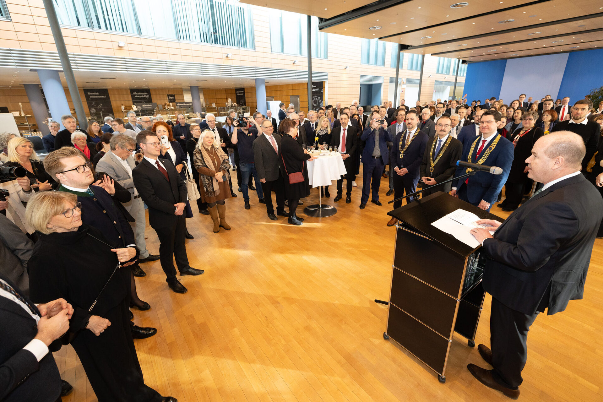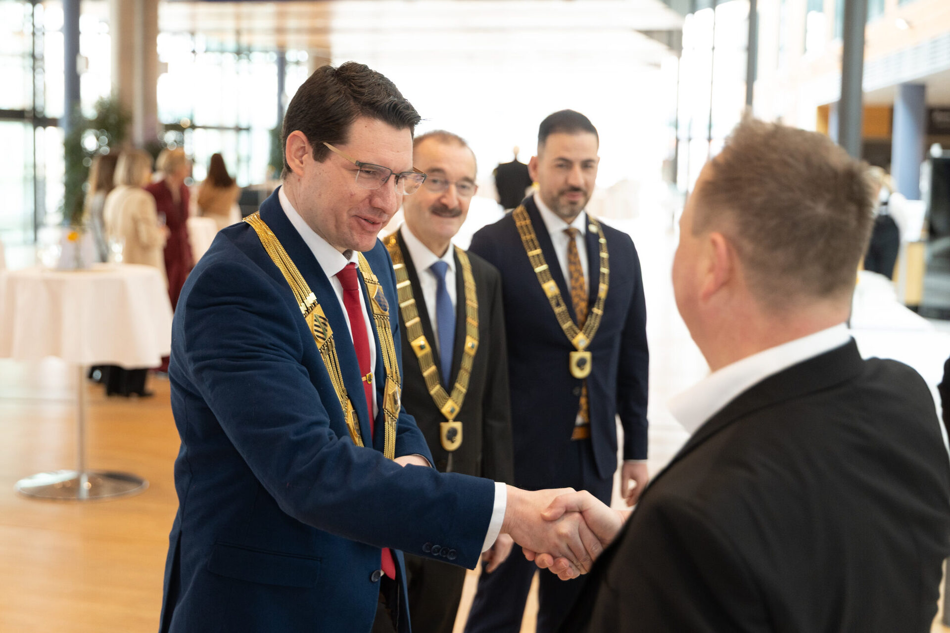 Der Neujahrsempfang stand im Zeichen der Wertschätzung für die Coburger Wirtschaft – in ihrer ganzen Bandbreite. Ob international tätige Industrieunternehmen wie BROSE, LASCO oder KAPP, regionale Banken, engagierte Handwerksbetriebe, Hidden Champions oder junge Start-ups: Sie alle tragen dazu bei, Coburg lebenswert zu machen.