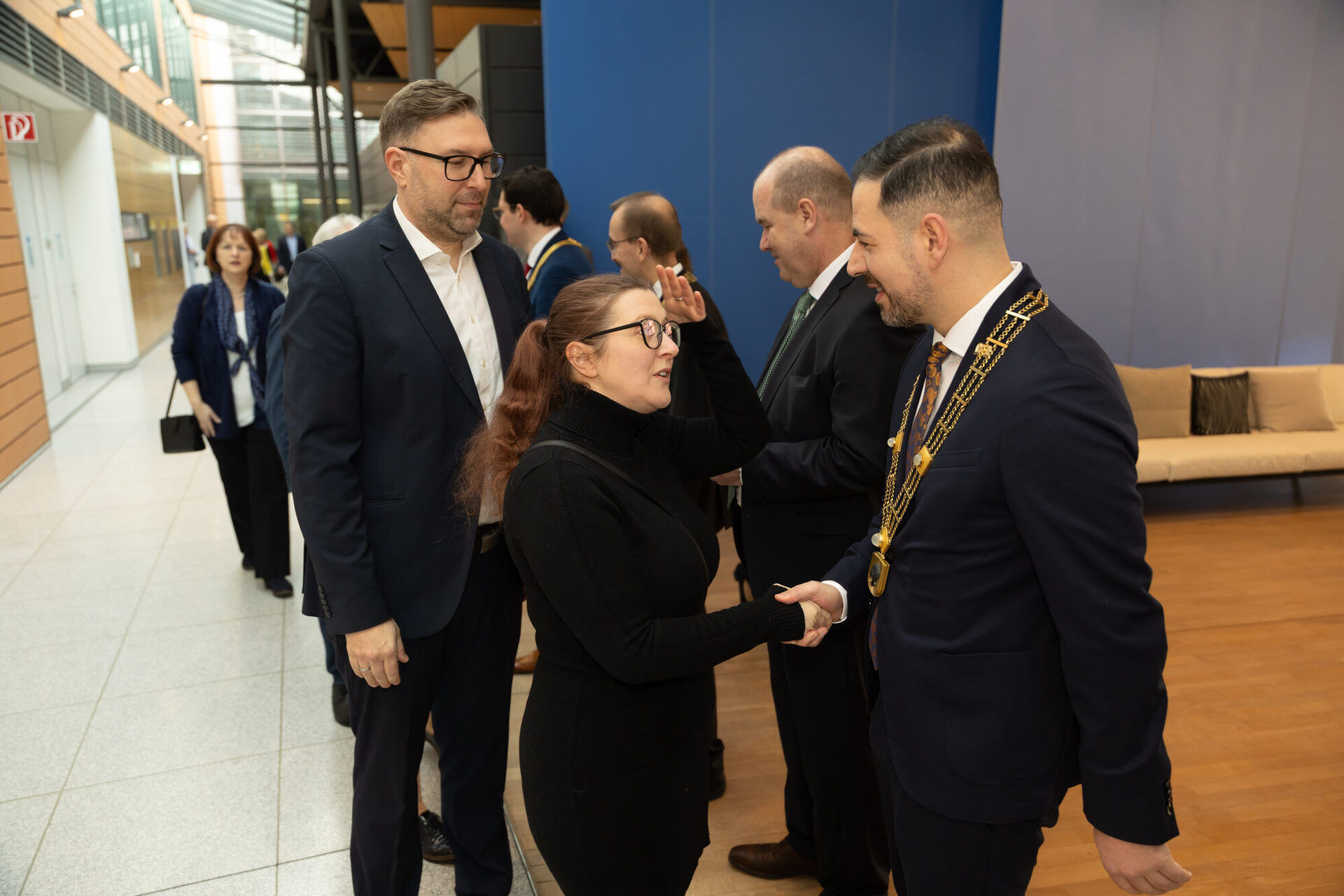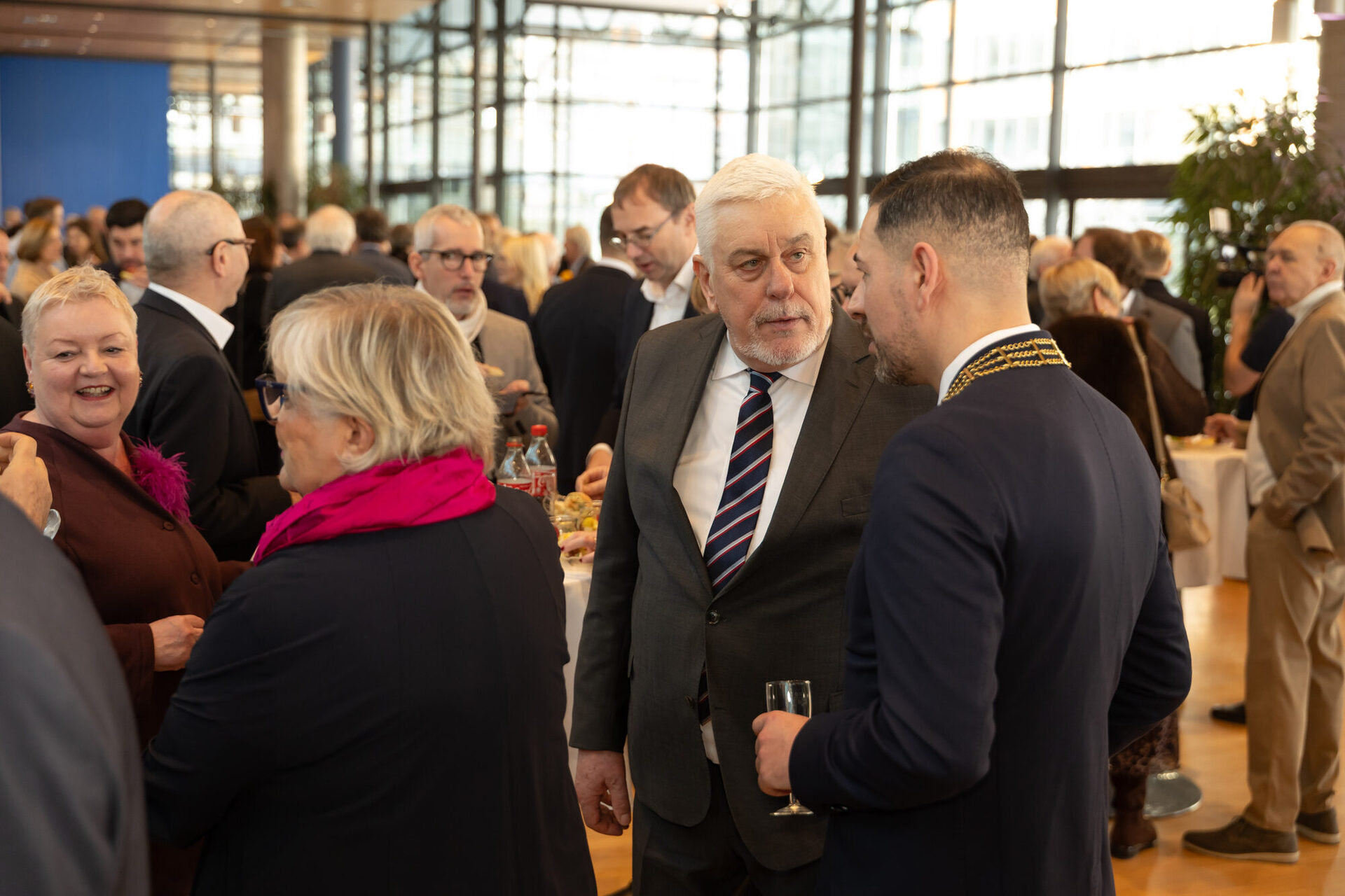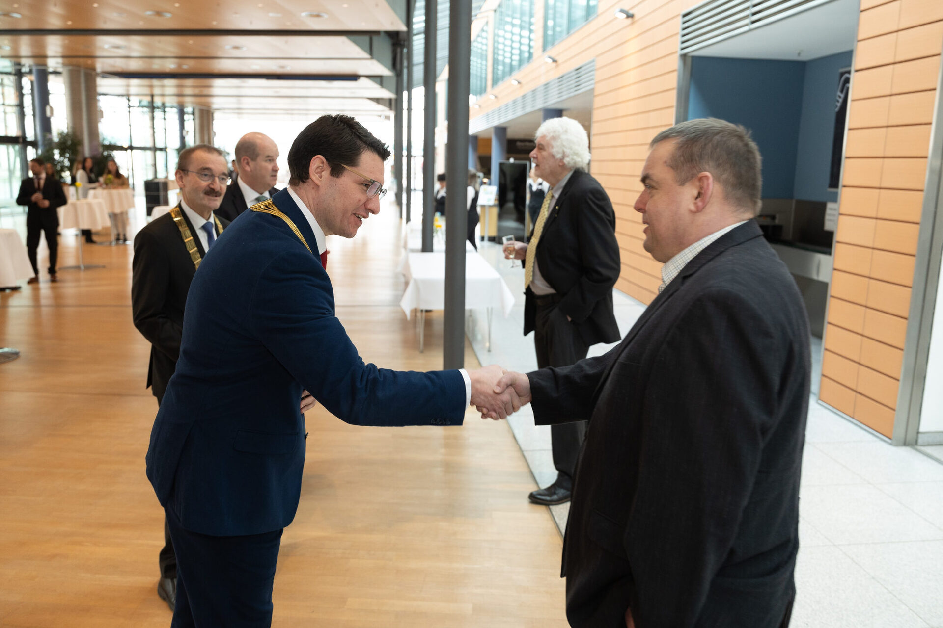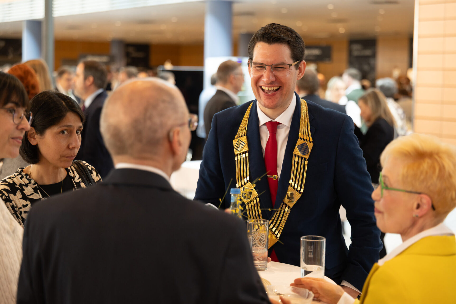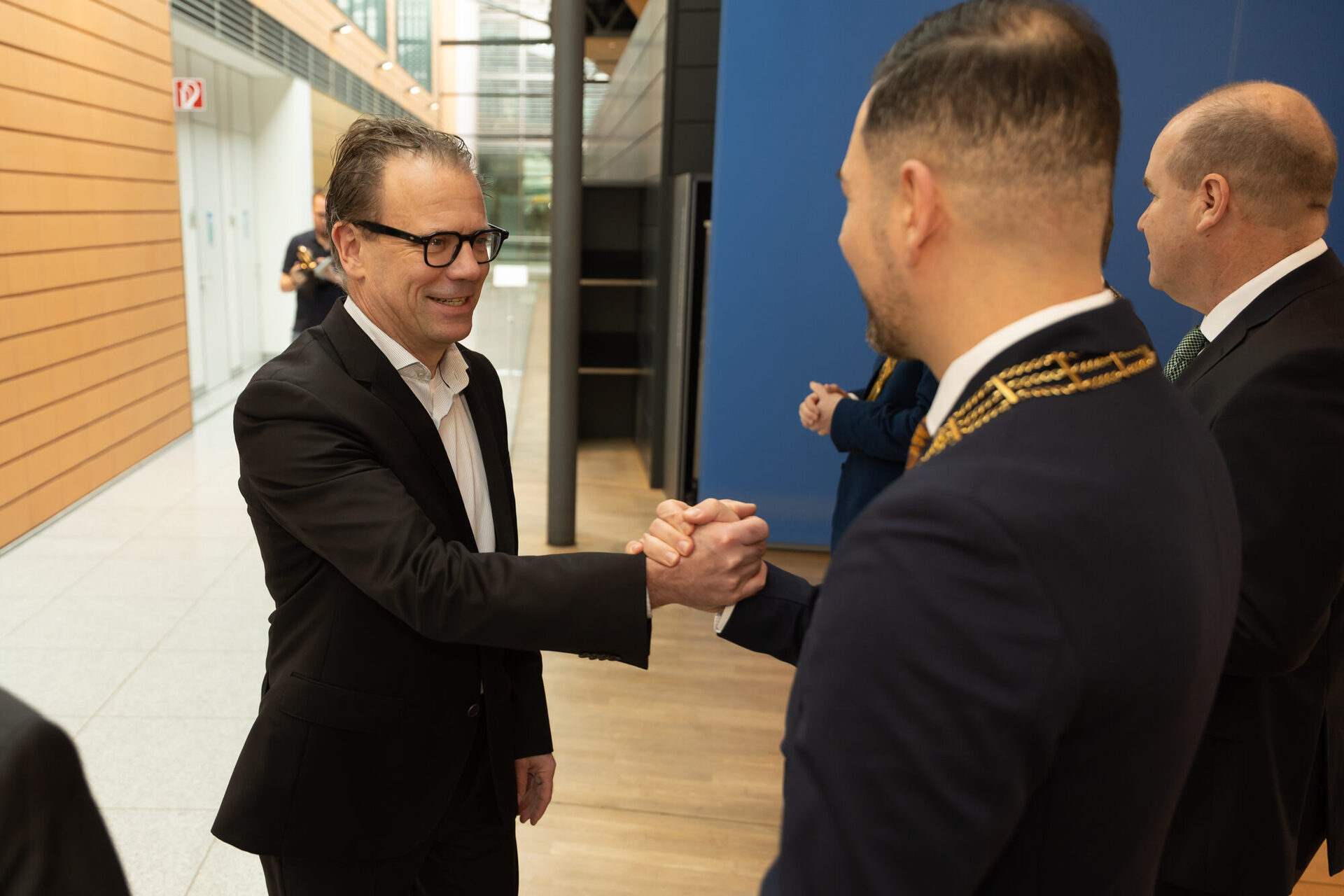 Der Neujahrsempfang stand im Zeichen der Wertschätzung für die Coburger Wirtschaft – in ihrer ganzen Bandbreite. Ob international tätige Industrieunternehmen wie BROSE, LASCO oder KAPP, regionale Banken, engagierte Handwerksbetriebe, Hidden Champions oder junge Start-ups: Sie alle tragen dazu bei, Coburg lebenswert zu machen.