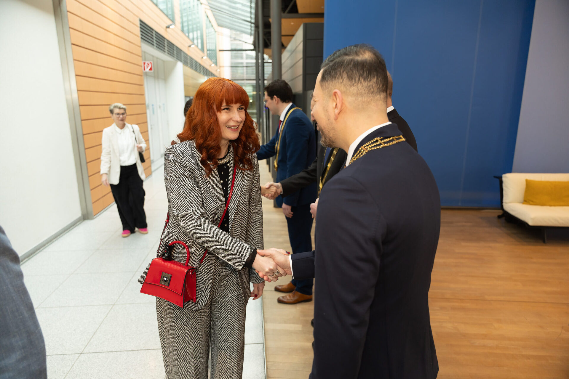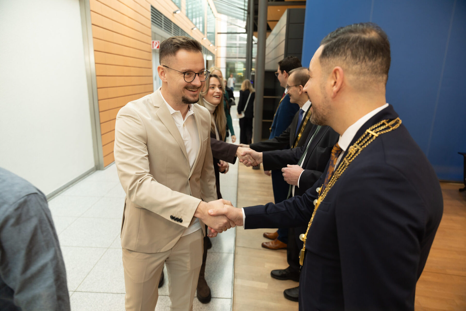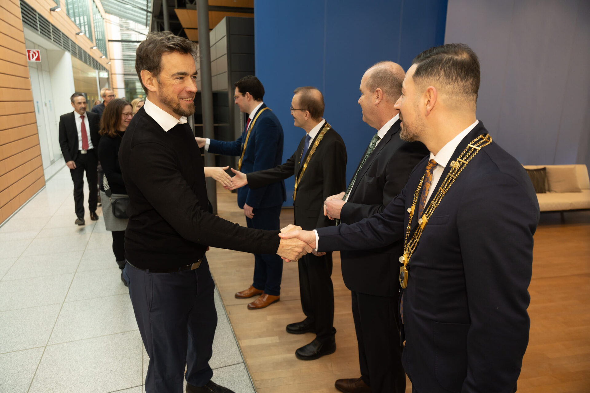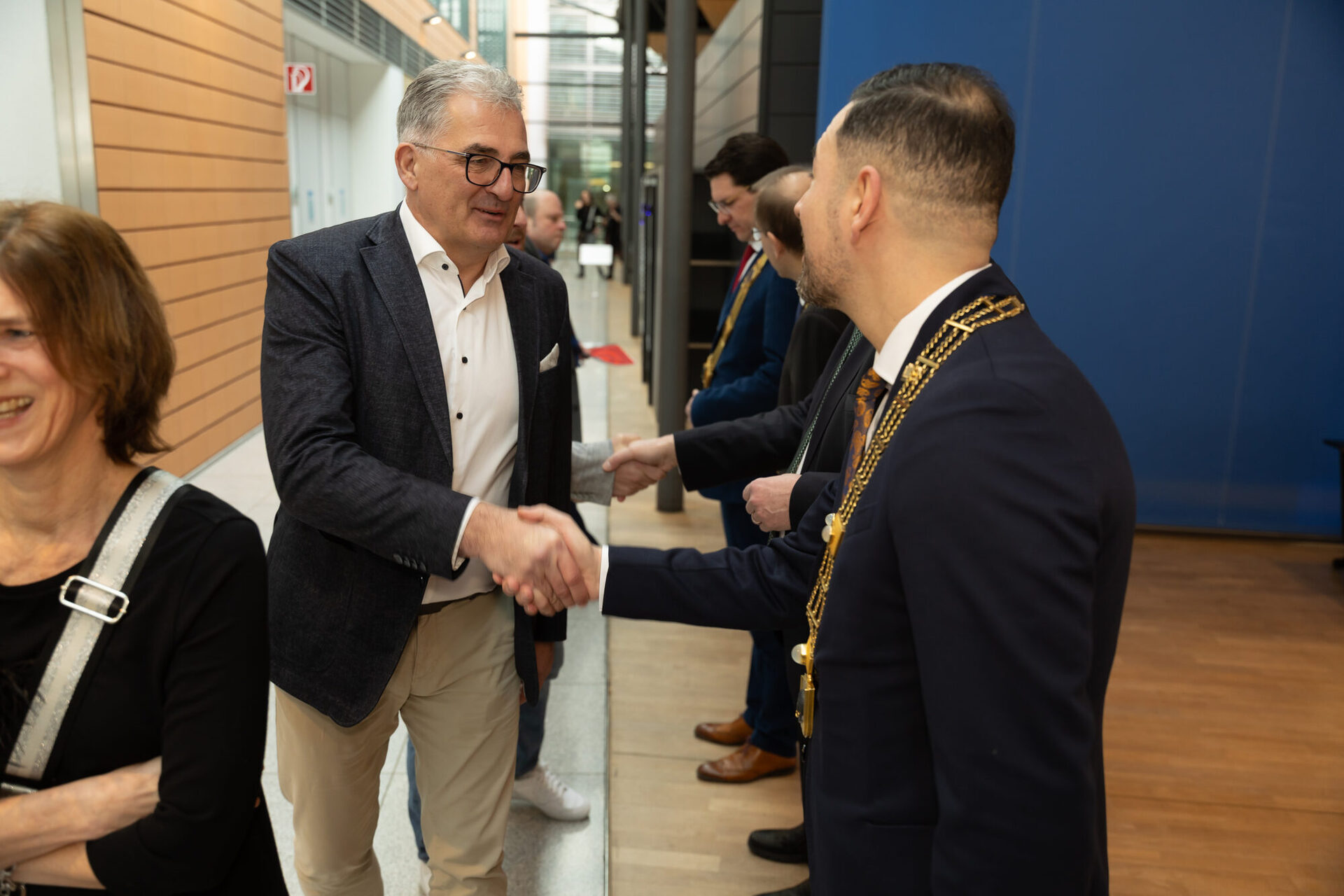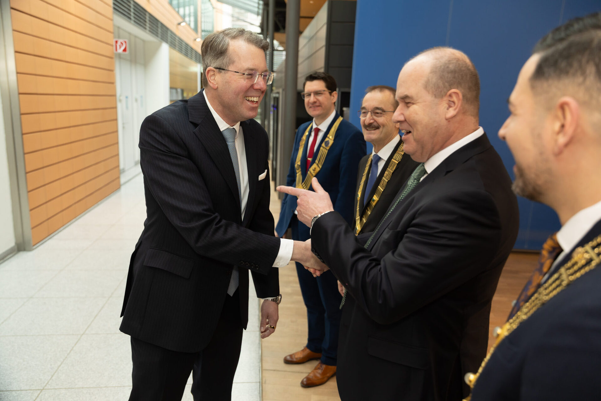 Der Neujahrsempfang stand im Zeichen der Wertschätzung für die Coburger Wirtschaft – in ihrer ganzen Bandbreite. Ob international tätige Industrieunternehmen wie BROSE, LASCO oder KAPP, regionale Banken, engagierte Handwerksbetriebe, Hidden Champions oder junge Start-ups: Sie alle tragen dazu bei, Coburg lebenswert zu machen.