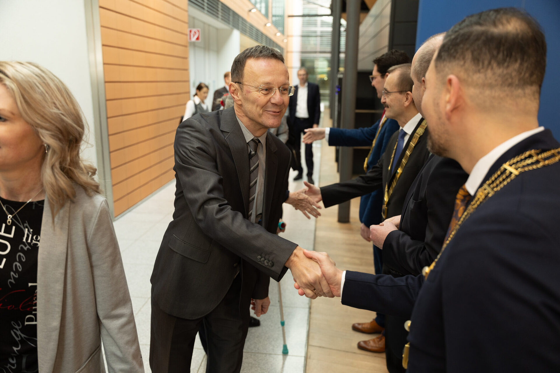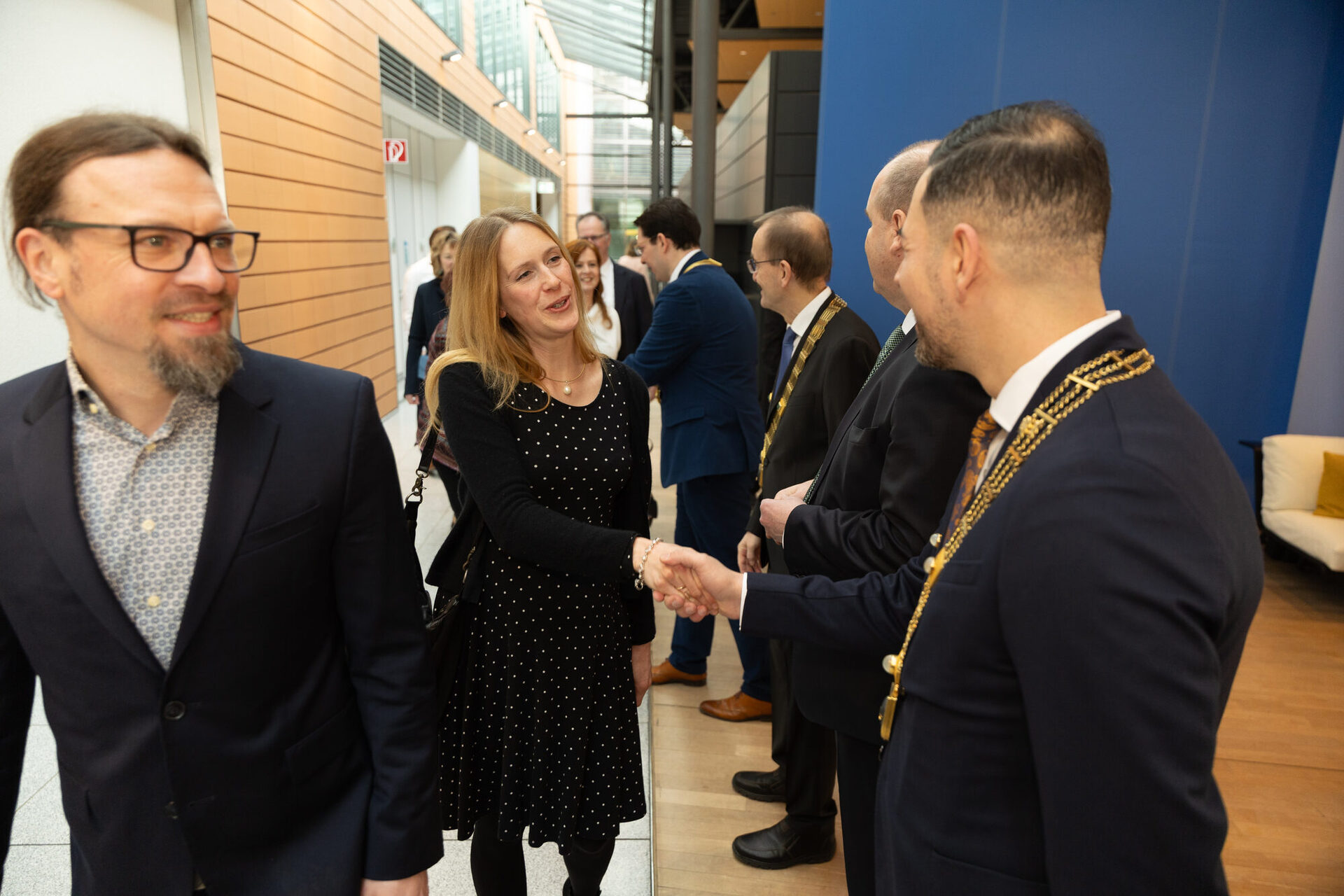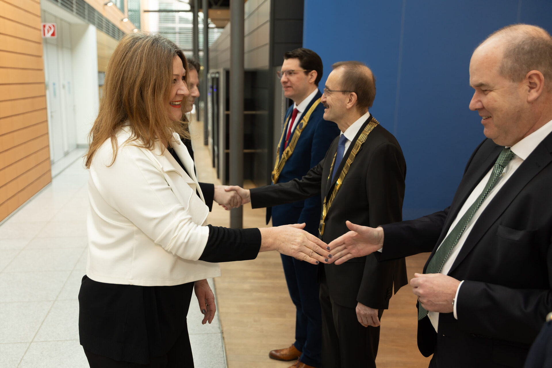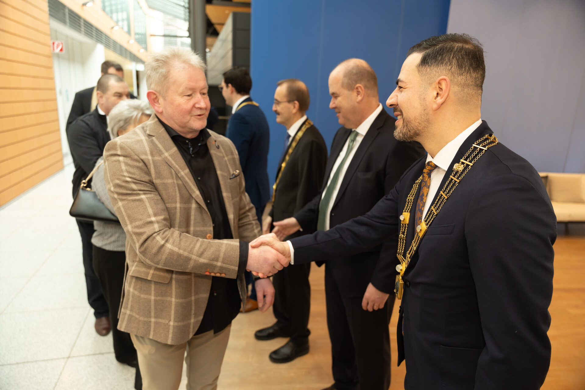 Der Neujahrsempfang stand im Zeichen der Wertschätzung für die Coburger Wirtschaft – in ihrer ganzen Bandbreite. Ob international tätige Industrieunternehmen wie BROSE, LASCO oder KAPP, regionale Banken, engagierte Handwerksbetriebe, Hidden Champions oder junge Start-ups: Sie alle tragen dazu bei, Coburg lebenswert zu machen.