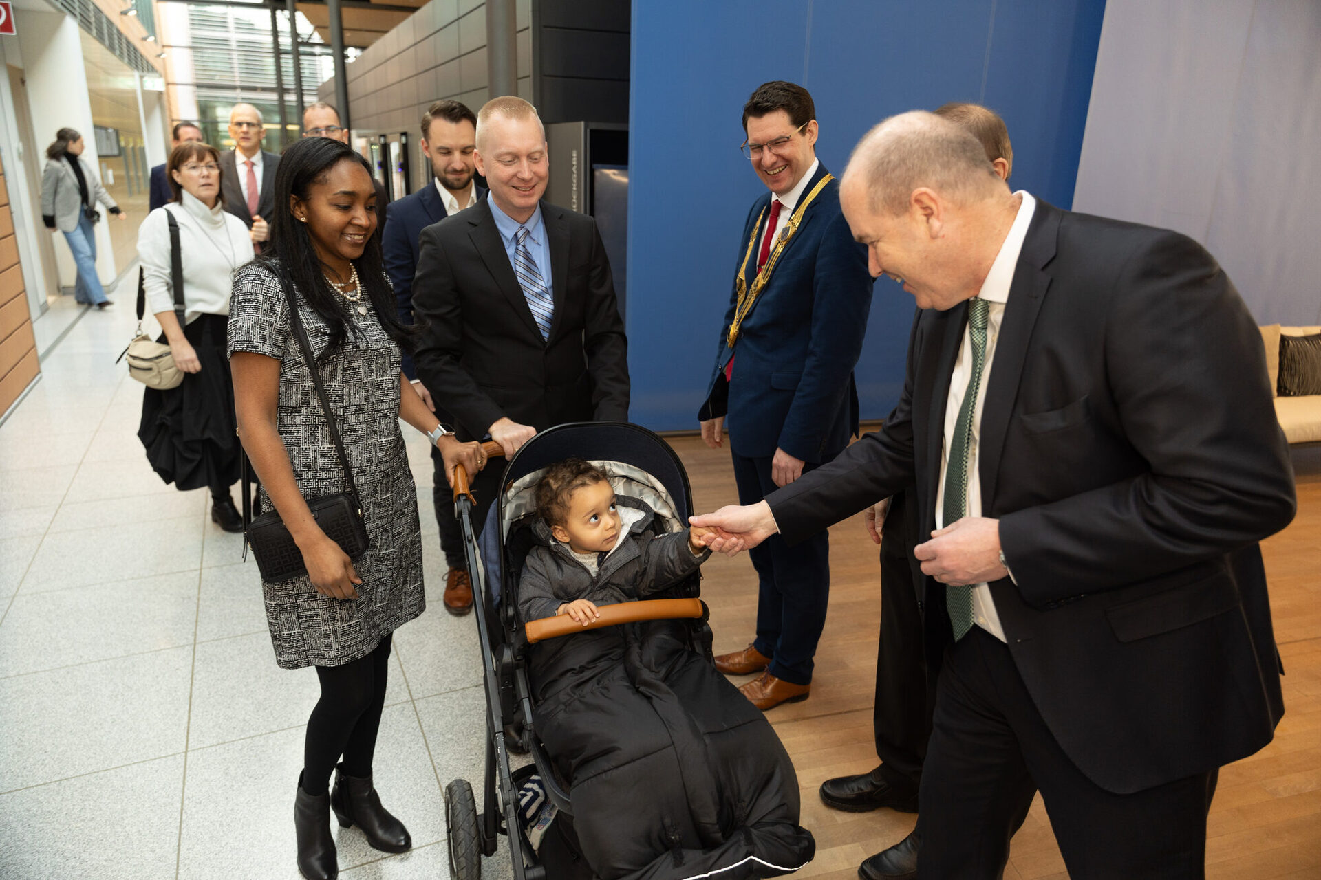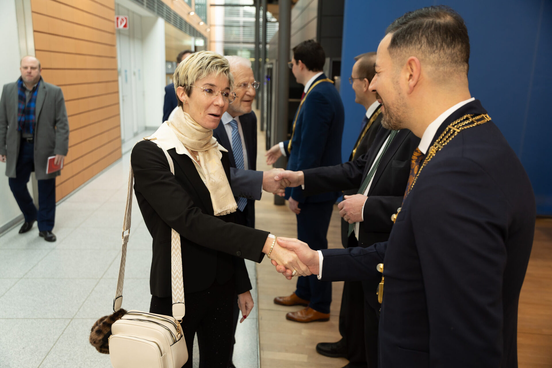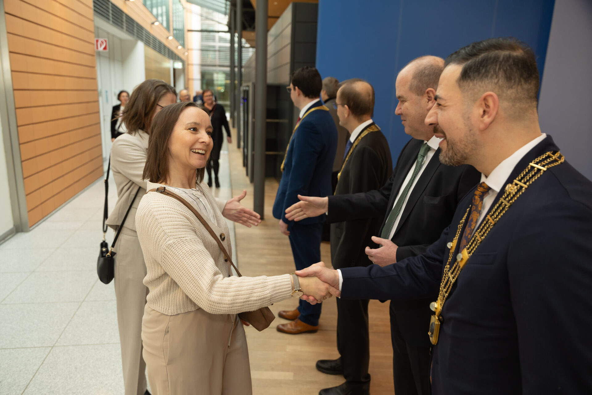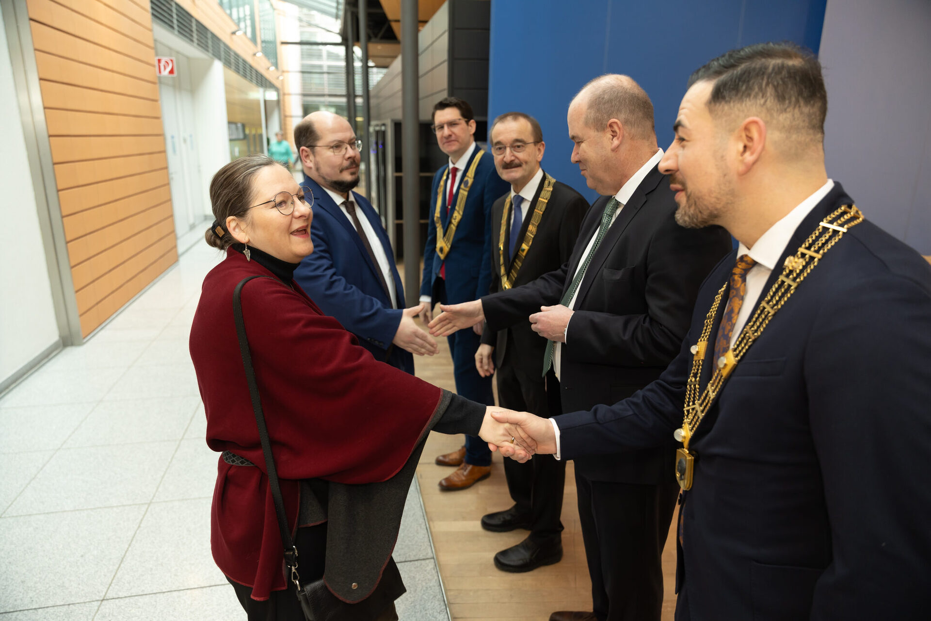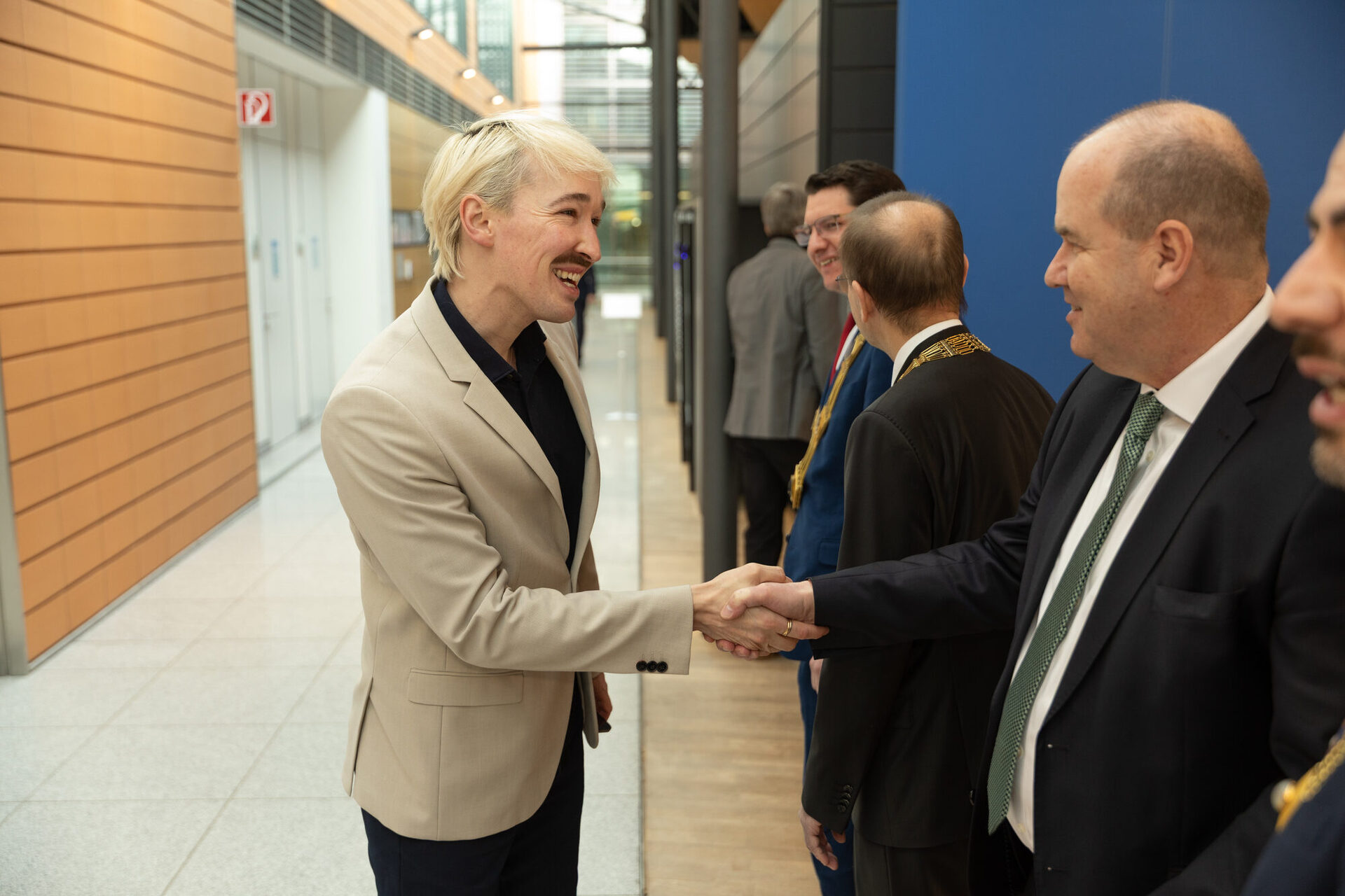Der Neujahrsempfang stand im Zeichen der Wertschätzung für die Coburger Wirtschaft – in ihrer ganzen Bandbreite. Ob international tätige Industrieunternehmen wie BROSE, LASCO oder KAPP, regionale Banken, engagierte Handwerksbetriebe, Hidden Champions oder junge Start-ups: Sie alle tragen dazu bei, Coburg lebenswert zu machen.