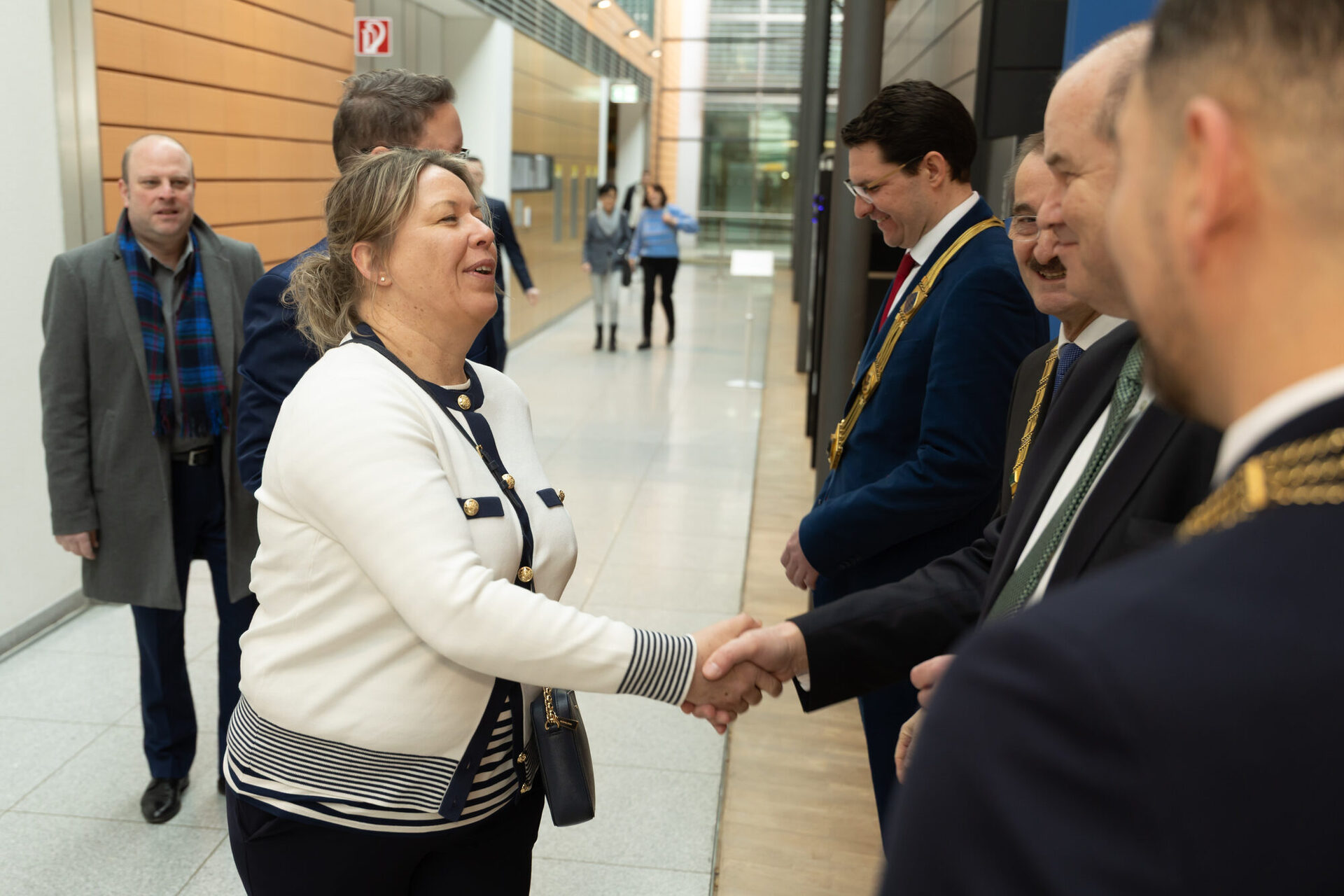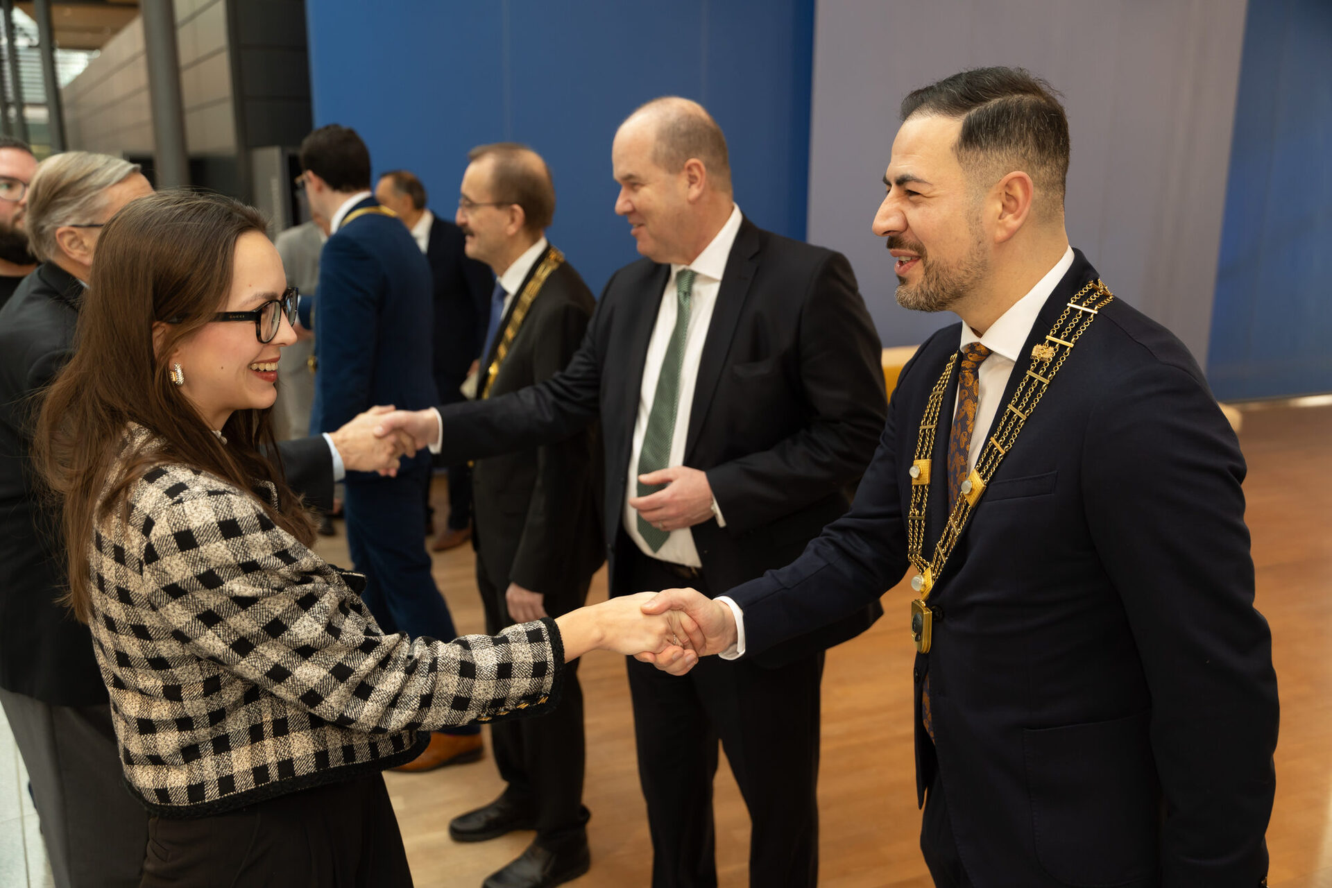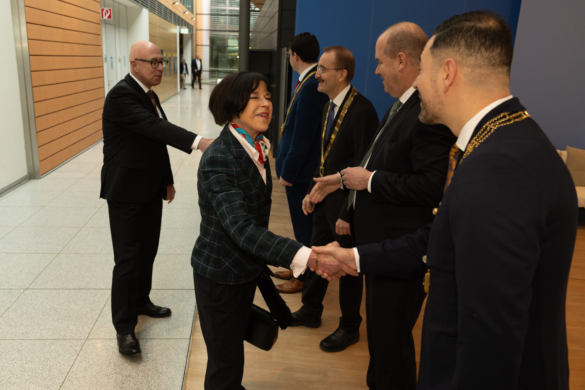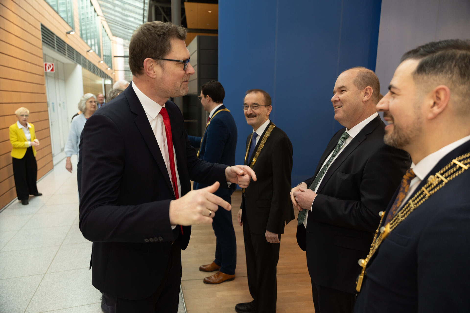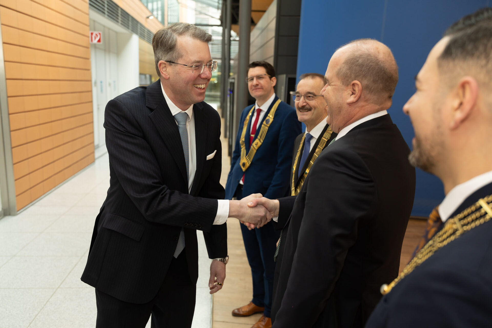 Der Neujahrsempfang stand im Zeichen der Wertschätzung für die Coburger Wirtschaft – in ihrer ganzen Bandbreite. Ob international tätige Industrieunternehmen wie BROSE, LASCO oder KAPP, regionale Banken, engagierte Handwerksbetriebe, Hidden Champions oder junge Start-ups: Sie alle tragen dazu bei, Coburg lebenswert zu machen.