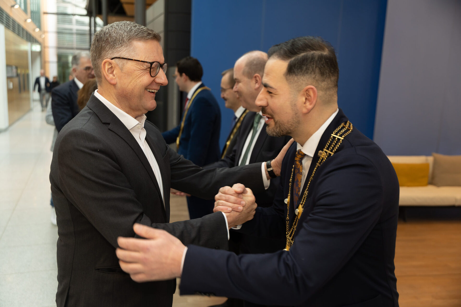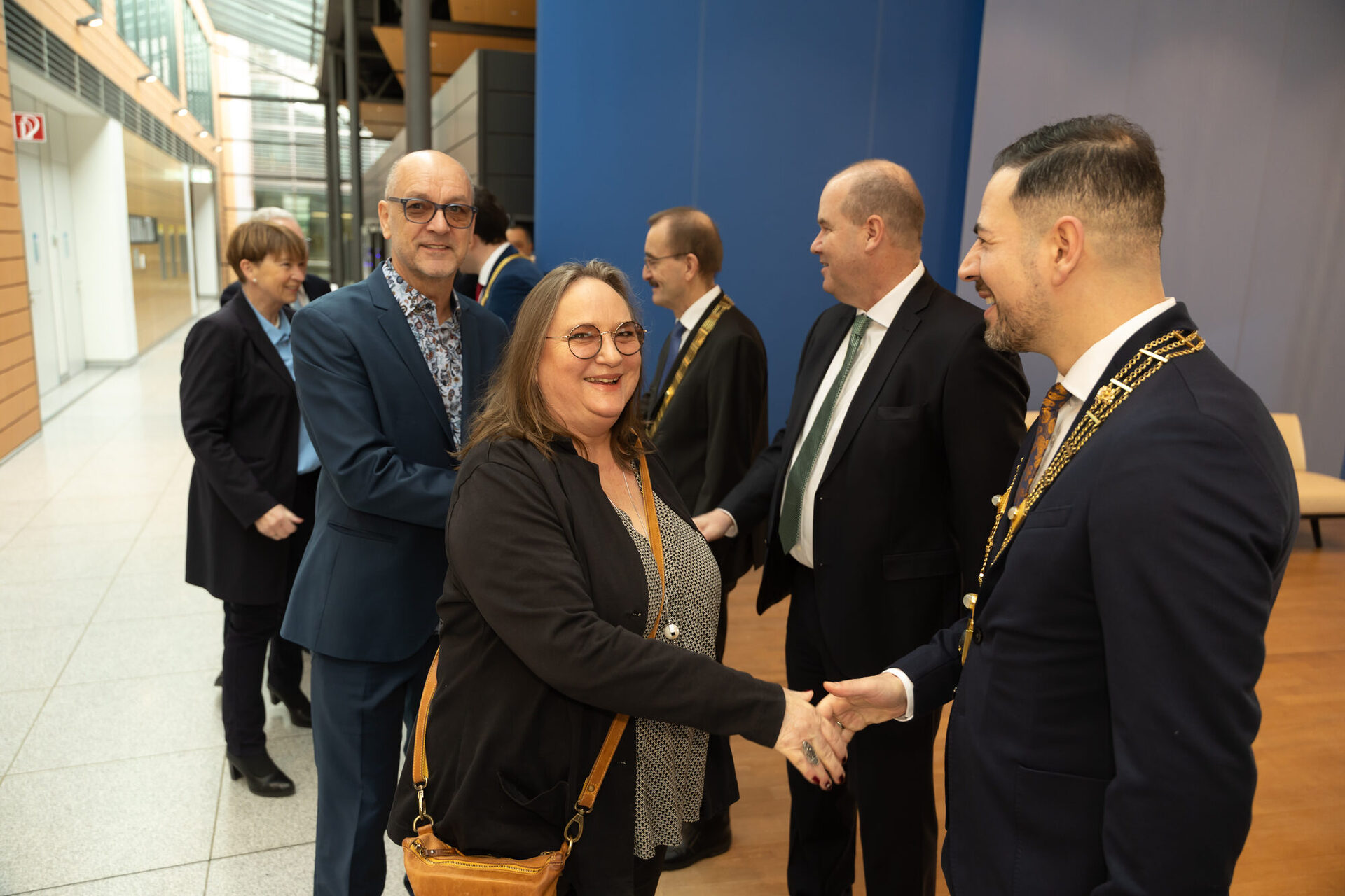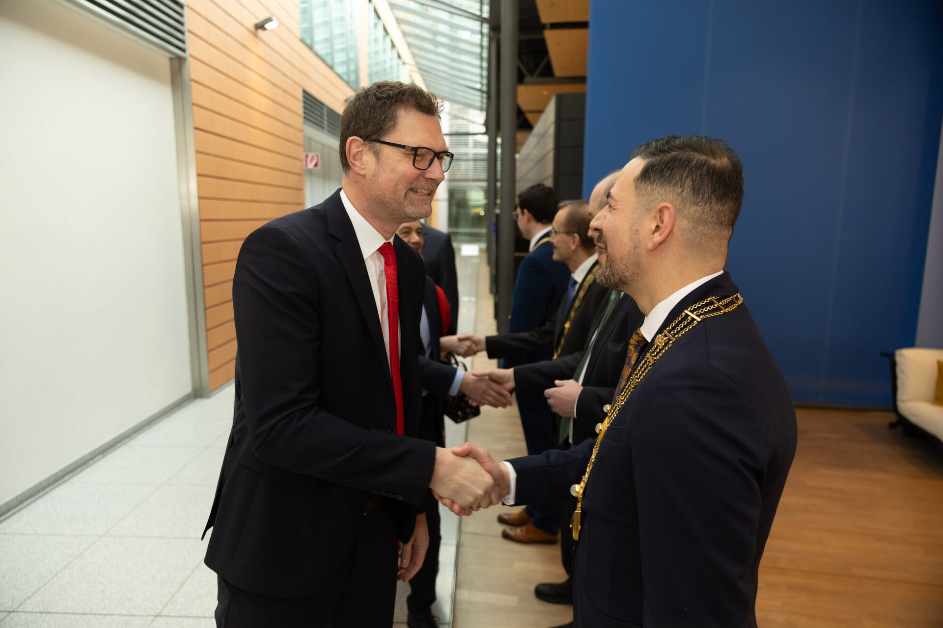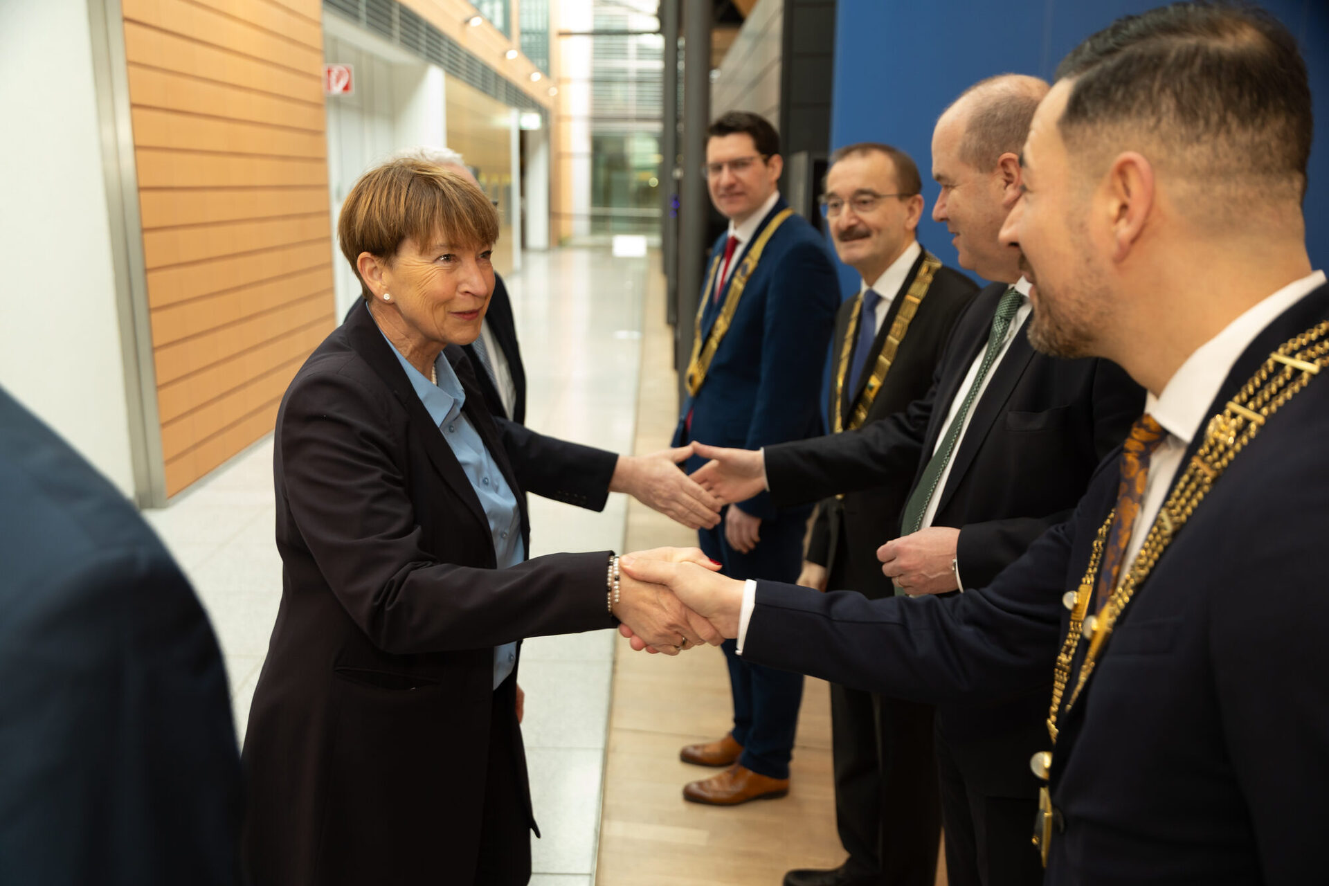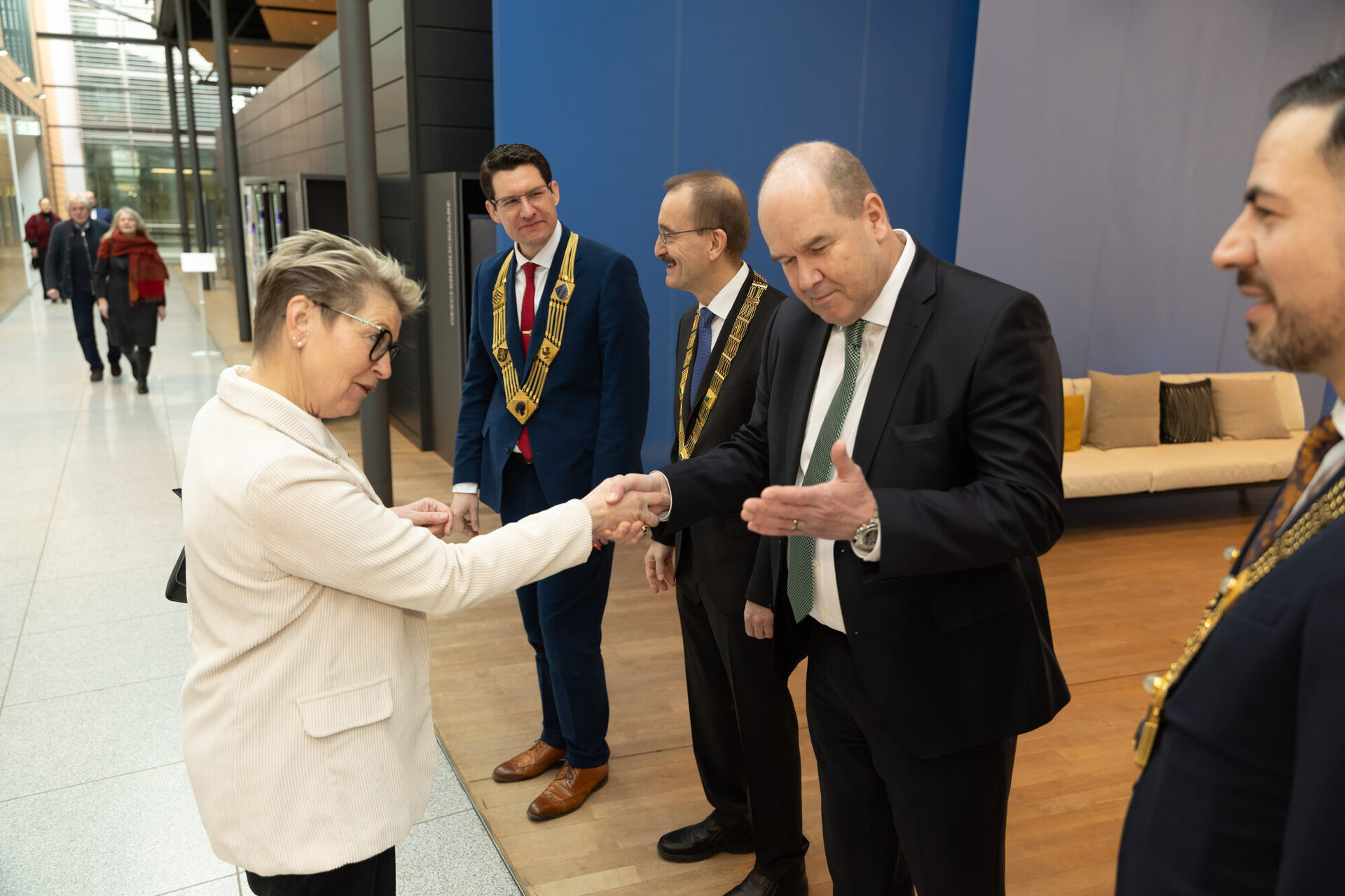 Der Neujahrsempfang stand im Zeichen der Wertschätzung für die Coburger Wirtschaft – in ihrer ganzen Bandbreite. Ob international tätige Industrieunternehmen wie BROSE, LASCO oder KAPP, regionale Banken, engagierte Handwerksbetriebe, Hidden Champions oder junge Start-ups: Sie alle tragen dazu bei, Coburg lebenswert zu machen.
