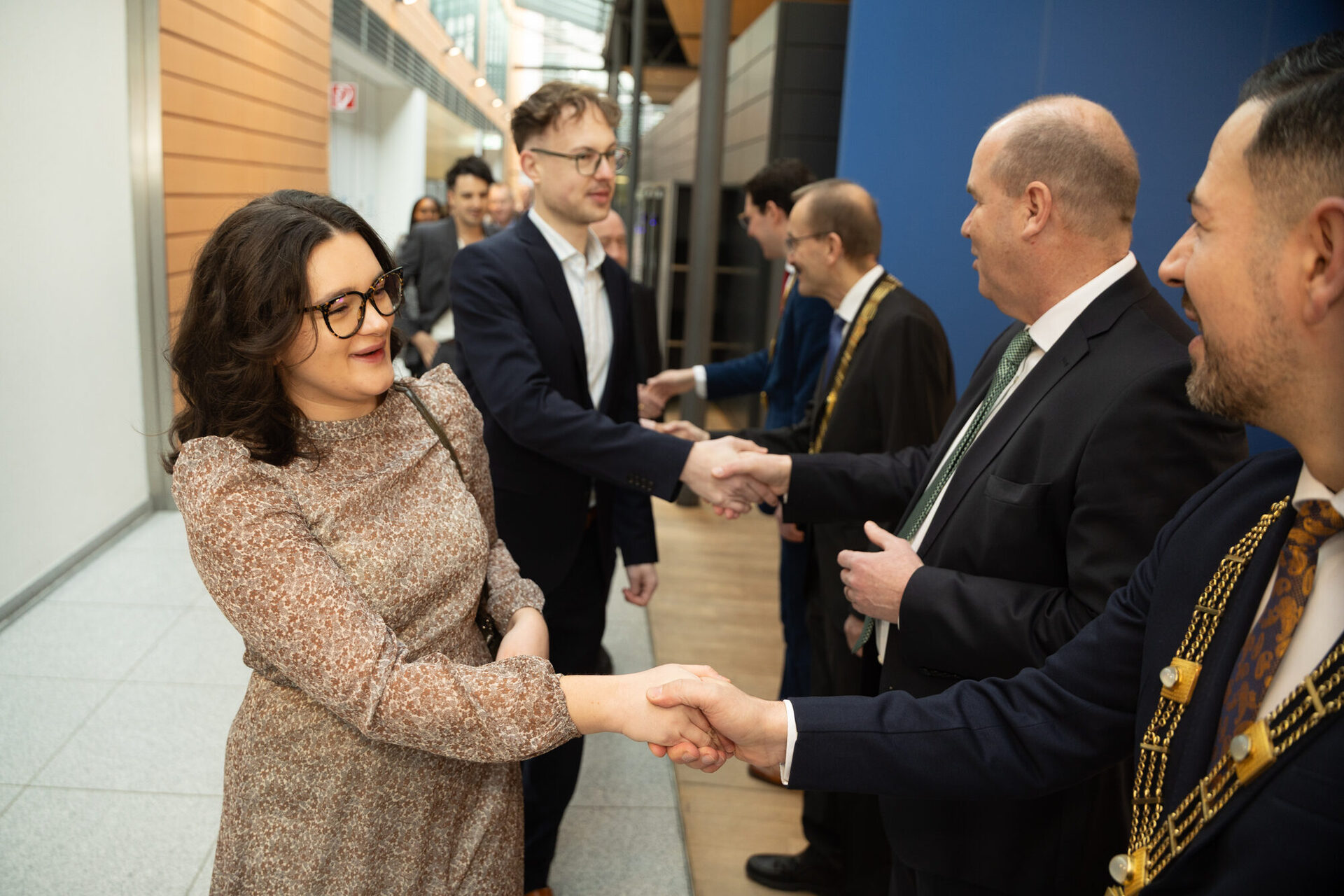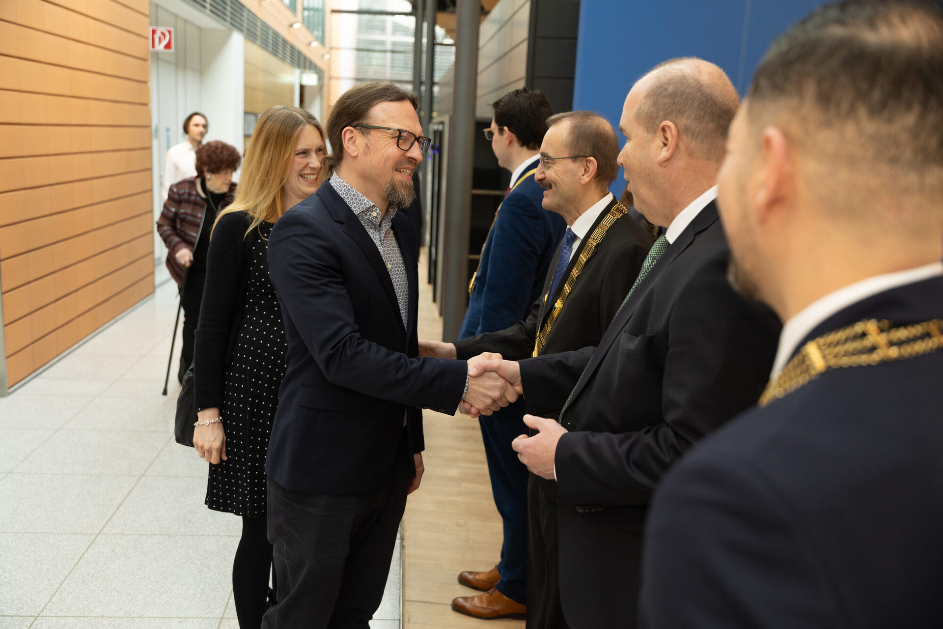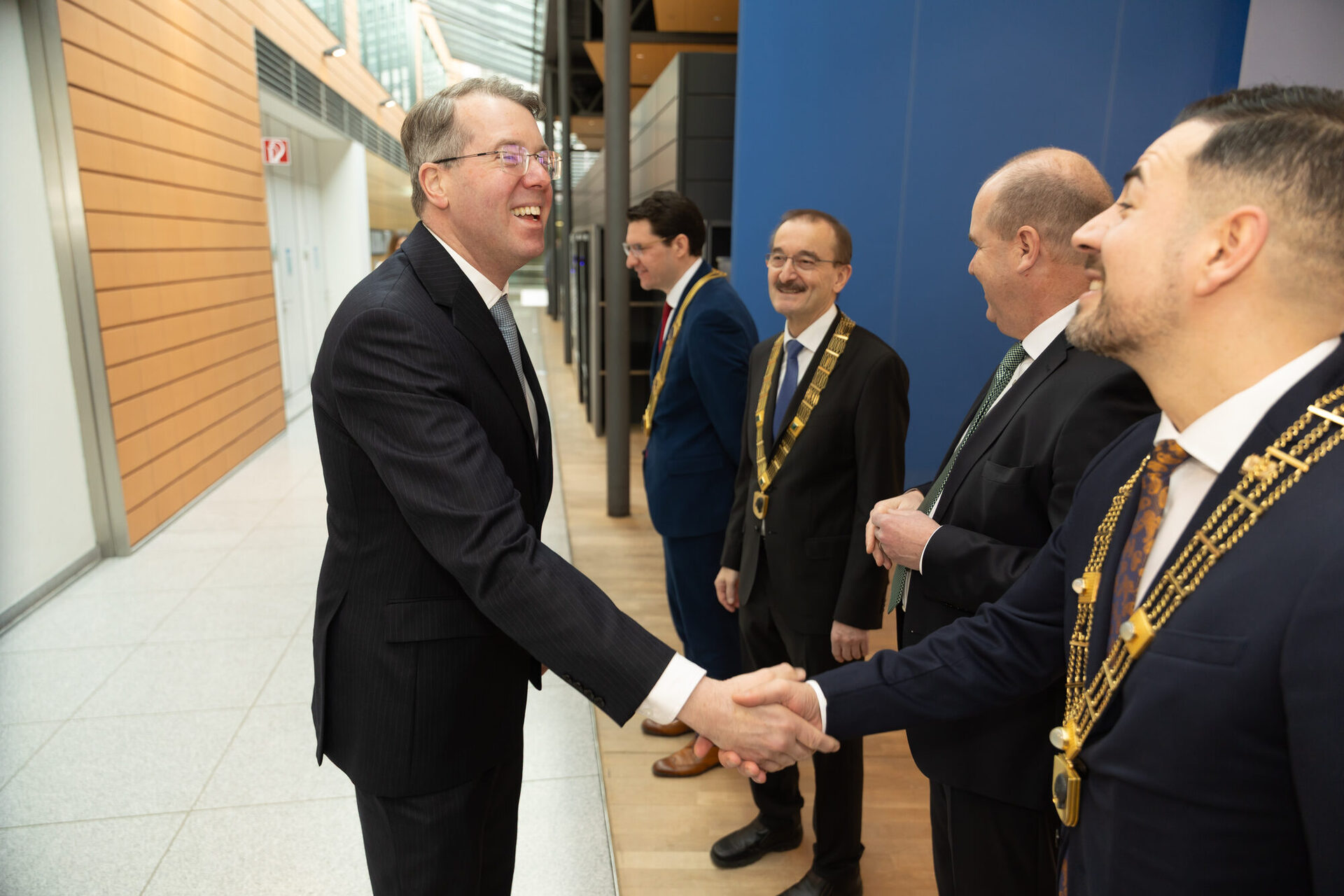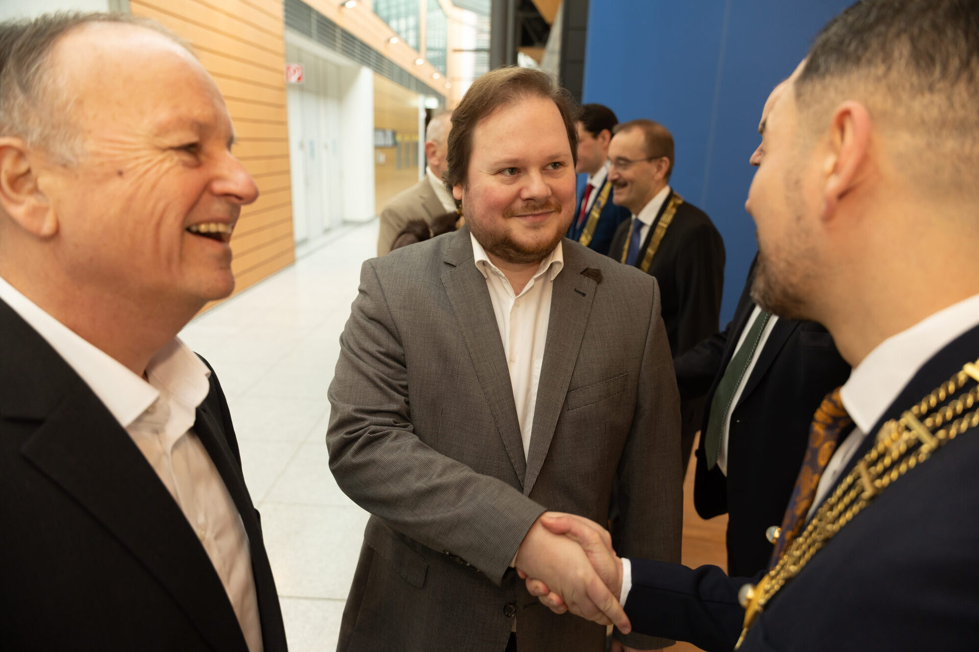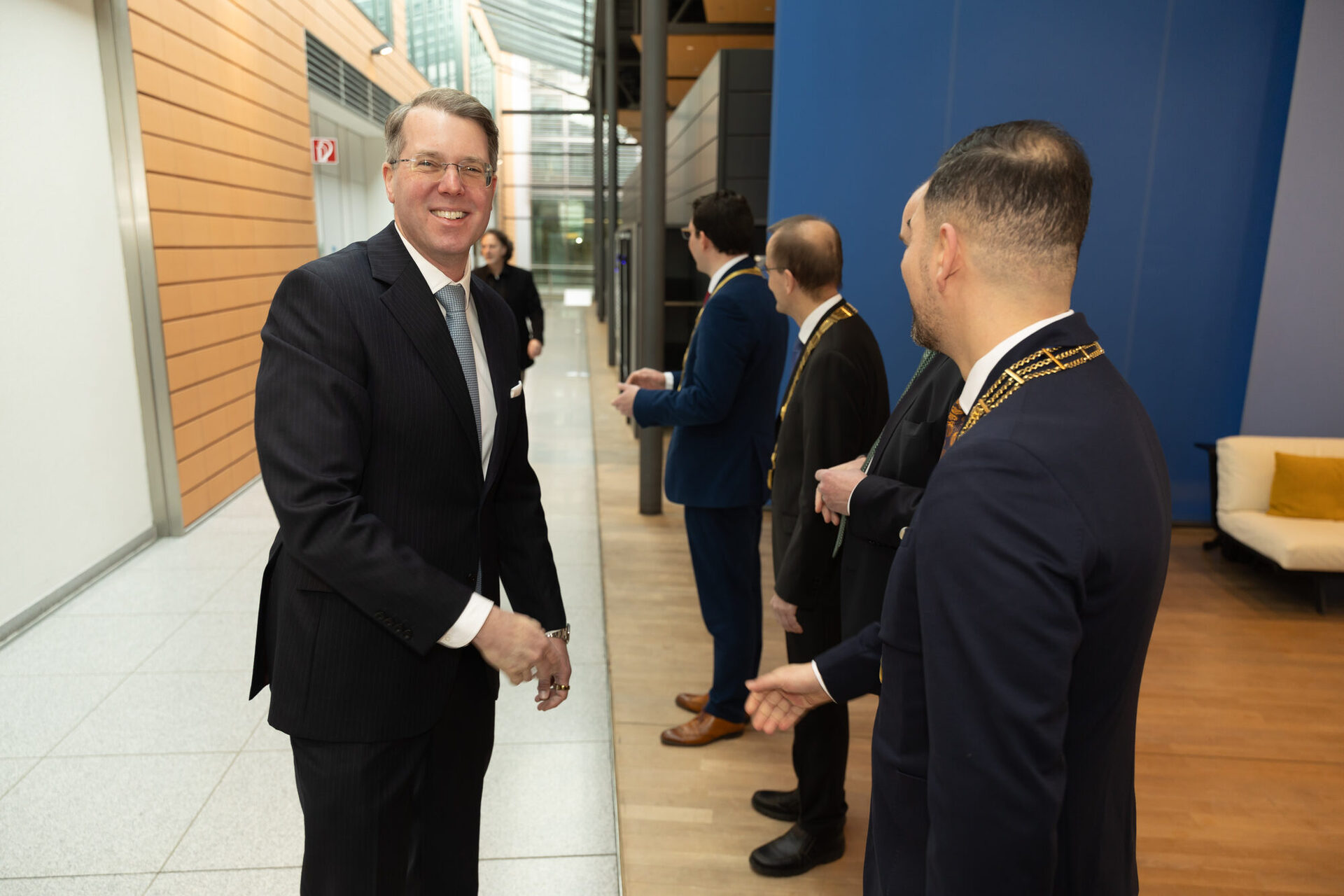 Der Neujahrsempfang stand im Zeichen der Wertschätzung für die Coburger Wirtschaft – in ihrer ganzen Bandbreite. Ob international tätige Industrieunternehmen wie BROSE, LASCO oder KAPP, regionale Banken, engagierte Handwerksbetriebe, Hidden Champions oder junge Start-ups: Sie alle tragen dazu bei, Coburg lebenswert zu machen.