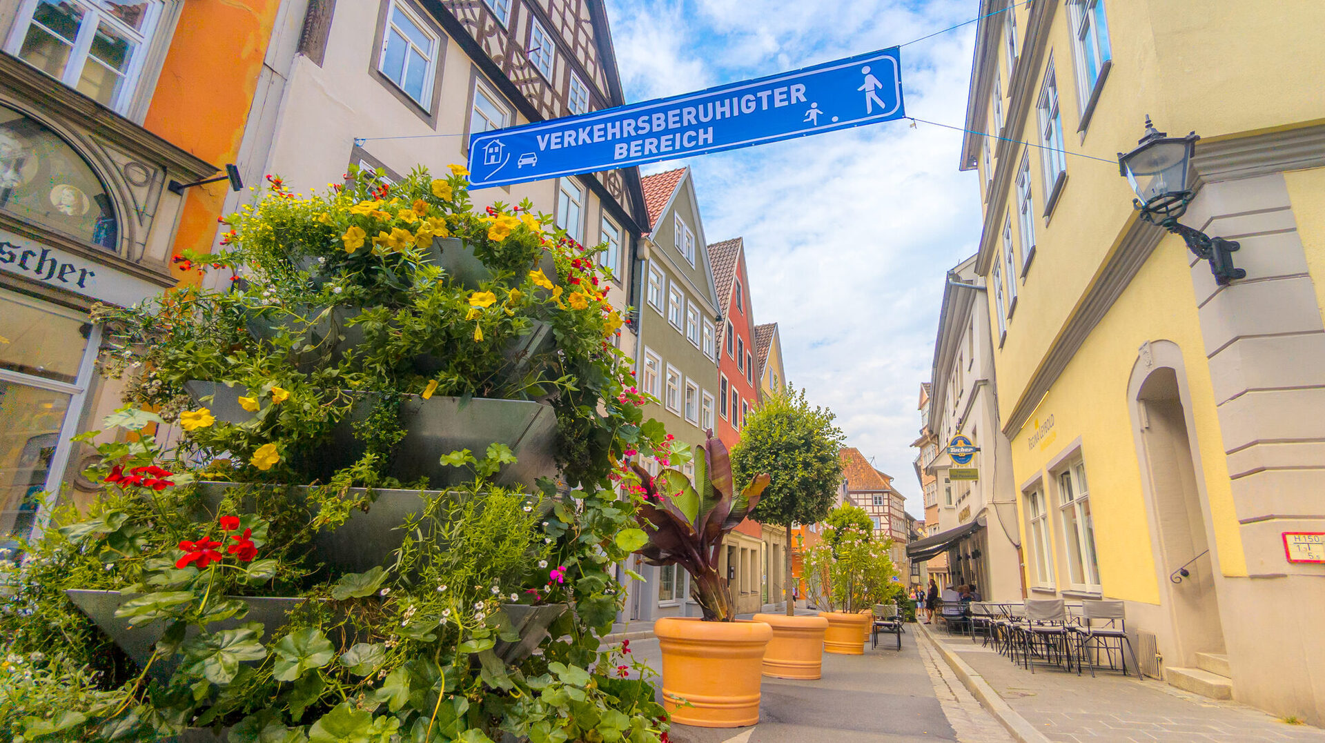 Im März hatte der Verwaltungssenat entschieden, dass die Steingasse zwischen Kirchgasse und Rückertstraße testweise zum verkehrsberuhigten Bereich wird. Dies wurde zum 31. Juli umgesetzt. Dadurch gibt es mehr Platz für Fußgänger*innen, Pflanzen und Außengastronomie. Die Steingasse als Lebensraum wird damit deutlich aufgewertet. Bei Informationsveranstaltungen Anfang des Jahres hatte sich auch die Mehrheit der anwesenden Anwohnenden für diese Verkehrsberuhigung ausgesprochen.