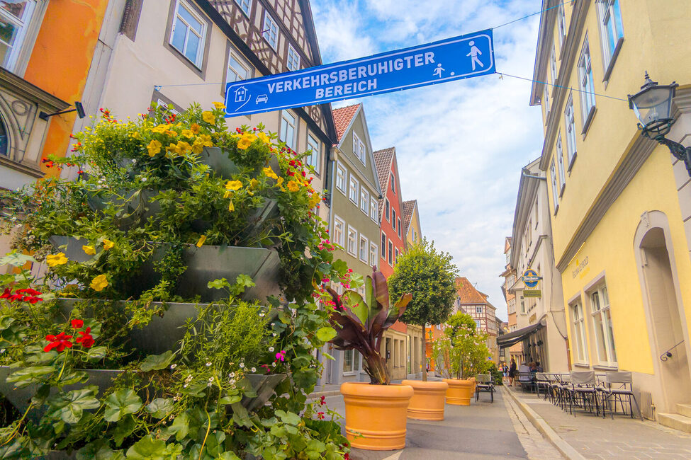 Für einen verkehrsberuhigten Bereich gelten besondere Regeln. So darf die gesamte Straßenbreite auch zu Fuß genutzt werden. Autos haben keinen Vorrang. Schrittgeschwindigkeit für alle Verkehrsteilnehmenden vorgeschrieben. Parkplätze wird es in dem Bereich keine mehr geben. Der Behindertenparkplatz befindet sich jetzt auf der anderen Straßenseite im Hof vor dem Stadtarchiv.
