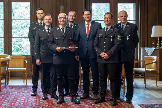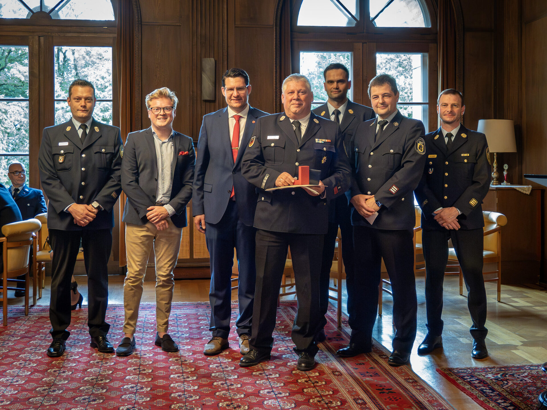 Feuerwehrleute gehen für ihre Stadt durchs Feuer. Grund genug, sie einmal im Jahr in festlichem Rahmen zu ehren. Für Oberbürgermeister Dominik Sauerteig ist dies ein ganz besonderer Termin: "Heute würdigen wir die Leistungen und das Engagement derjenigen, die sich mit Herz und Seele für unsere Gemeinschaft einsetzen: unsere Feuerwehrleute", sagte er während des Ehrungsabends am Freitag auf Schloss Hohenfels.