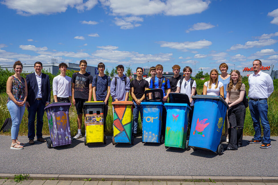 Zusammen mit dem CEB haben die Schüler*innen ihre bemalten Mülltonnen am Montagnachmittag auf der Lauterer Höhe aufgestellt. „Unser Ziel war es, durch kreative Gestaltung einen positiven Beitrag zur Umwelt zu leisten und die Bedeutung von Nachhaltigkeit ins Bewusstsein der Öffentlichkeit zu rücken,“ erklärt Lehrerin Volk.