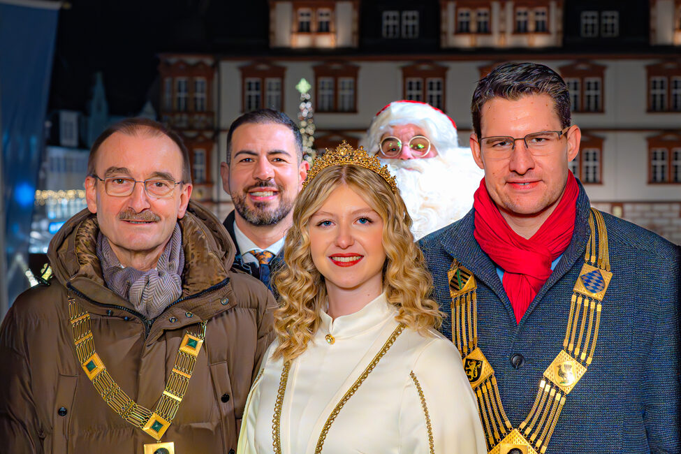 Zum zweiten Mal grüßte Penelope Kühne als Coburger Christkind vom Rathausbalkon. Daher war es keine Frage, die Rede "schrieb ich schon während der Osterfeiertage", verriet das Christkind. Weihnachten sei das Fest der Liebe. Aber warum? "Familien und Freunde rücken näher zusammen und so manche Streitigkeit wird endlich vergeben und vergessen", so Penelope Kühne. Ihre größten Wünsche waren: Frieden, Gerechtigkeit, Zusammenhalt und Gesundheit. Über den Buden leuchtet die "Nadelheid", für diesen Namen hatten sich die meisten Teilnehmenden an einer Umfrage auf den Social-Media-Kanälen der Stadt entschieden.