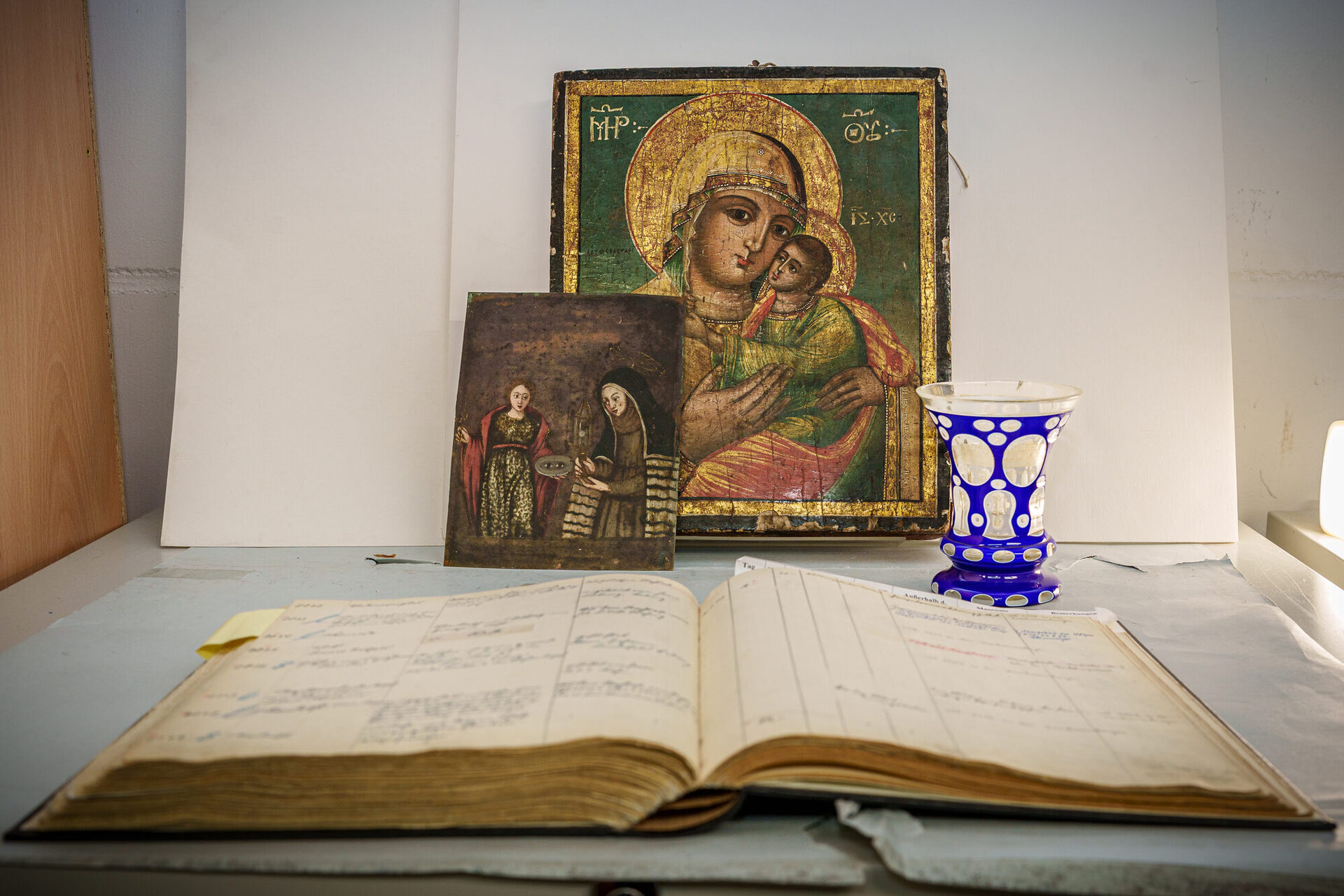 Jetzt - 80 Jahre nach Kriegsende - sind nur noch eine Ikonenmalerei, ein Heiligenbild auf Blech und ein Glasbecher im Biedermeierstil mit Darstellungen Dresdener Gebäude in den Städtischen Sammlungen. „Bei diesen Gegenständen waren keine Vorbesitzer aufgeführt. Es gibt auch sonst keinerlei Hinweise auf diese Personen“, erklärt Boseckert. Daher befänden sich die Gegenstände noch heute im städtischen Besitz.