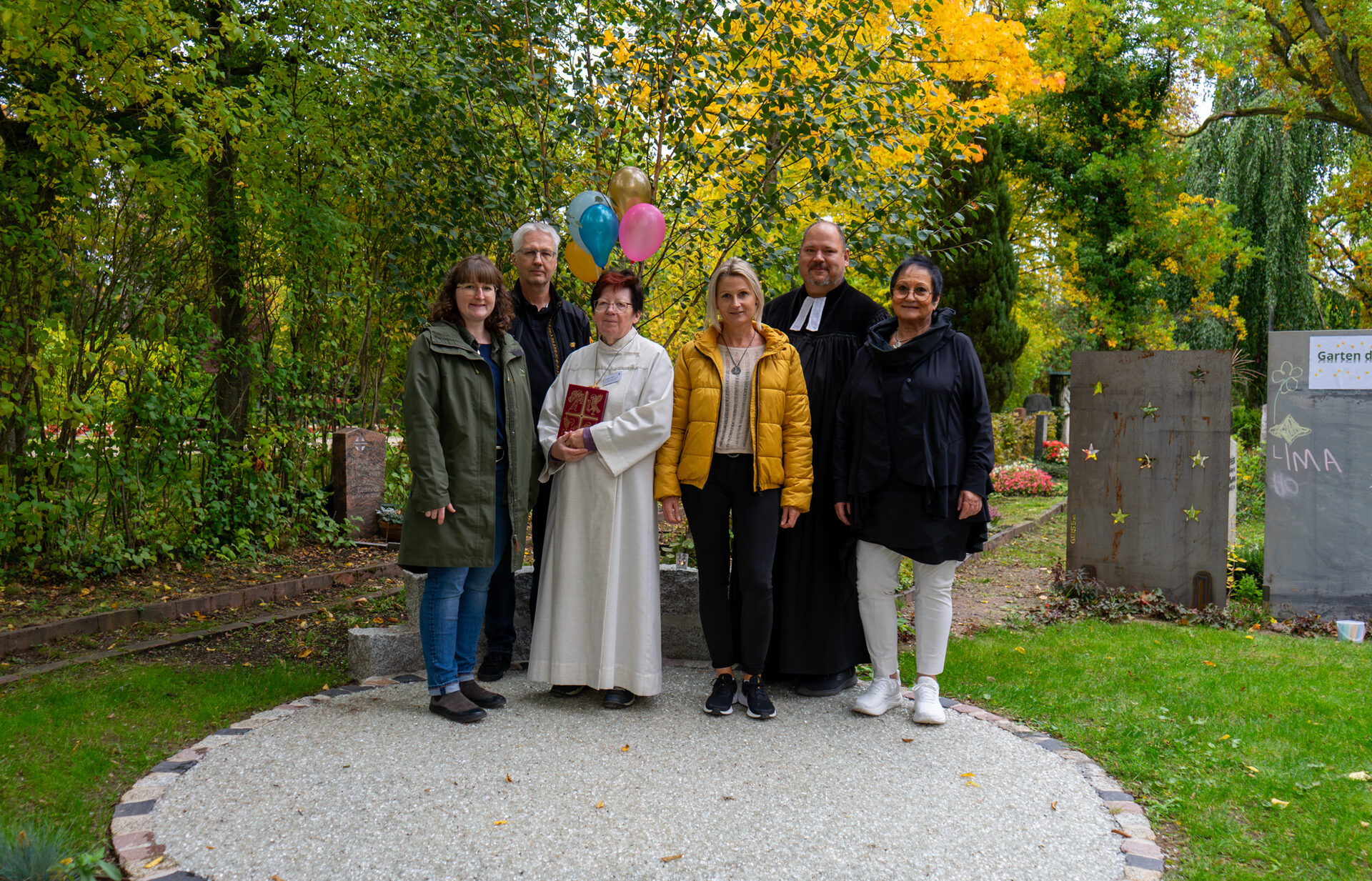 Auch Gabriele Kahl, die seit über 20 Jahren die Bestattung der Sternenkinder begleitet und organisiert, war von Anfang an in die Planung des neuen Feldes eingebunden. Sie kümmert sich um die Organisation - wie den Sarg, die Überführung, die Blumen, die Dekoration, die Kondolenzliste, um die Begrüßung und um die bunten Ballons am Ende der Feier, damit sich die Blicke wieder nach oben wenden und selbst kleinen Geschwistern der Abschied in guter Erinnerung bleibt. Für den neuen Garten spendete sie zudem eine Bank, die ein Platz zum Verweilen, für Eltern, Großeltern, Geschwister oder Menschen, die einfach kurz innehalten möchten, ist. „Es kommen auch Menschen, deren Verlust schon lange zurückliegt. Viele finden hier oder bei der Beisetzung die Möglichkeit, das Erlebte noch einmal in Frieden zu betrachten“, erzählt Kahl.
