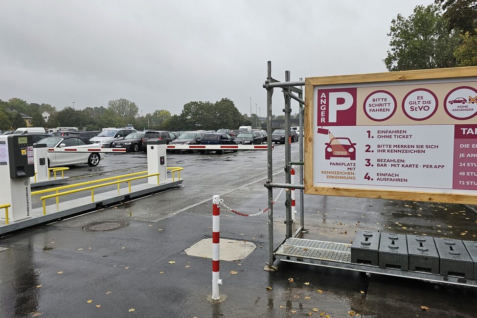 Neu ist die automatische Kennzeichenerkennung – auch als APNR bezeichnet (Automatic Number Plate Recognition) - beim Parken auf dem Anger. Das datenschutzkonforme Erfassen des Kennzeichens bietet zahlreiche Vorteile, die sowohl für unsere Nutzer von Bedeutung sind als auch für uns als Parkplatzbetreiberin: Es ermöglicht eine schnellere Ein- und Ausfahrt von Fahrzeugen, da kein Ticket mehr gezogen bzw. eingesteckt werden muss. Das beschleunigt den gesamten Prozess und reduziert Staus an Ein- und Ausfahrten.