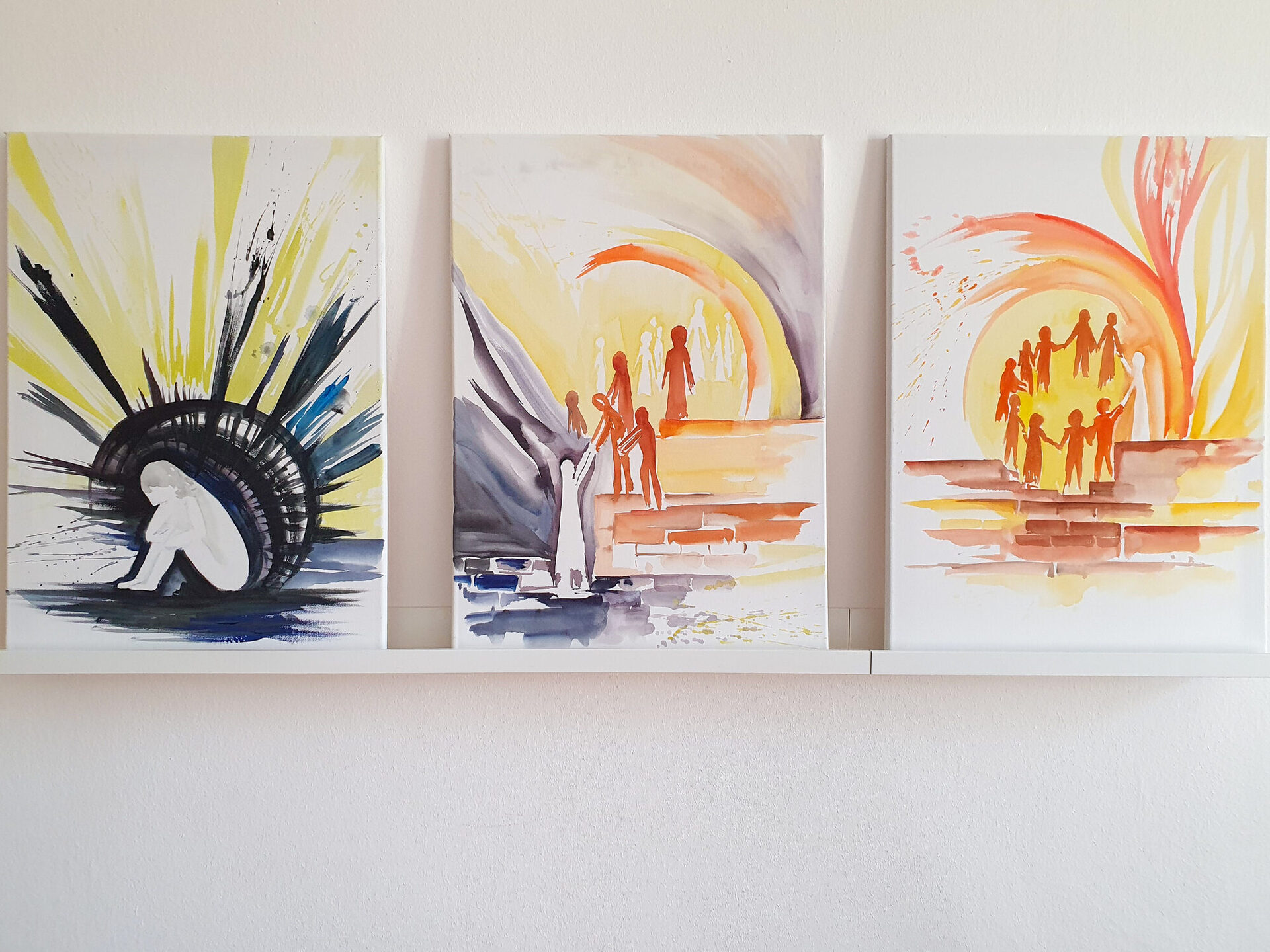 Im Themenraum „Kreatives“ gab es Kunstwerke zu bestaunen, die von den SHG in Gemeinschaftsaktionen hergestellt wurden. Es stehen vielfältige Materialien wie z.B. Acryl, Seidenmalerei, Beton oder Peddigrohr zur Verfügung, aber oft trauen sich Einzelne nicht alleine zu werkeln. Durch die Gruppe wird man angespornt, sich zu überwinden und etwas Neues auszuprobieren. „Beim Malen habe ich an nichts Anderes gedacht, kam aus meinem Gedanken-Karussell heraus und habe mich total entspannt!“, berichtet eine Teilnehmerin aus der Depressionsgruppe.