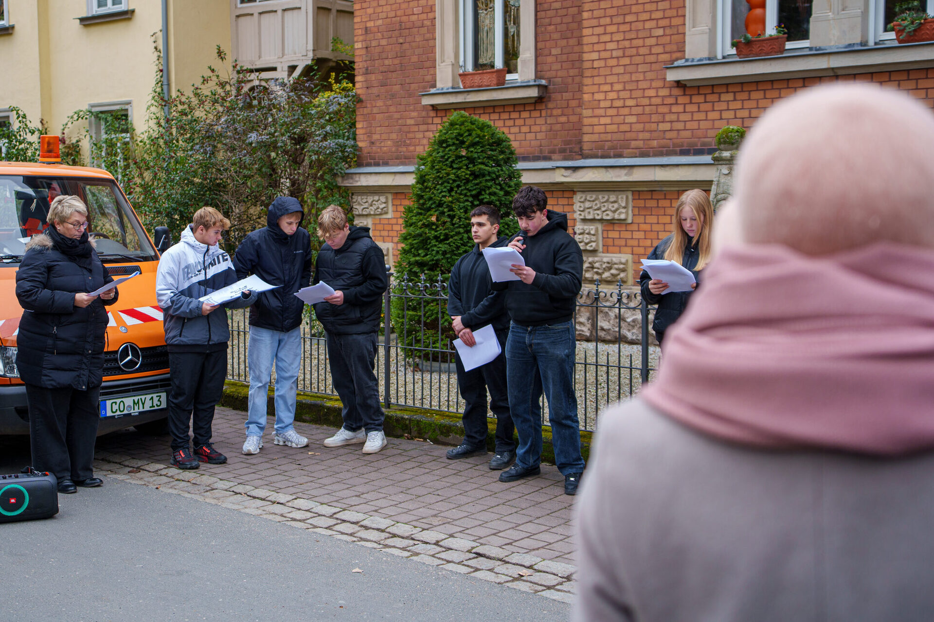3. Bürgermeister Can Aydin kündigte bereits weitere Stolpersteinverlegungen im nächsten Jahr an. Er bedankte sich bei allen beteiligten Schüler*innen und Lehrkräften für ihren Einsatz, dem CEB für die Vorbereitung der Gehwege, und der Kulturabteilung der Stadt Coburg für die Organisation.