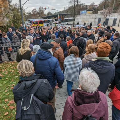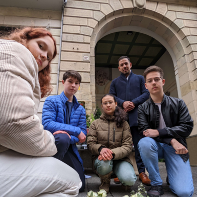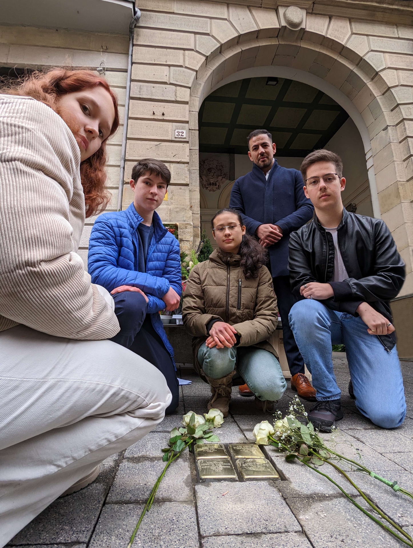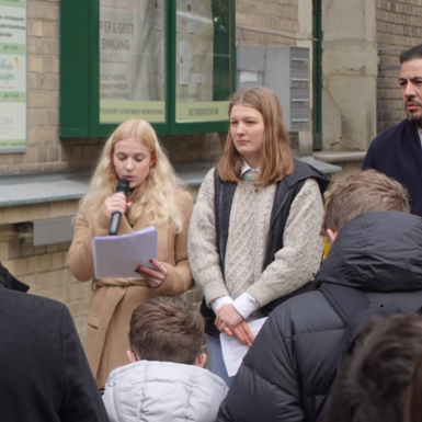 Mit der Geschichte der Familie Gutmann, die in der Mohrenstraße 32 gewohnt hatte, hatten sich Schüler*innen der Realschule CO1 beschäftigt. „Mir persönlich gefällt besonders gut, dass Schülerinnen und Schüler aktiv in die Verlegung der Stolpersteine einbezogen worden sind“, so 3. Bürgermeister Can Aydin. Gaby Schuller vervollständigte das Gedenken mit weiteren Geschichten aus den Leben von Dr. Emil Gutmann, Sofie Gutmann, Grete Gutmann und Helene Gutmann.