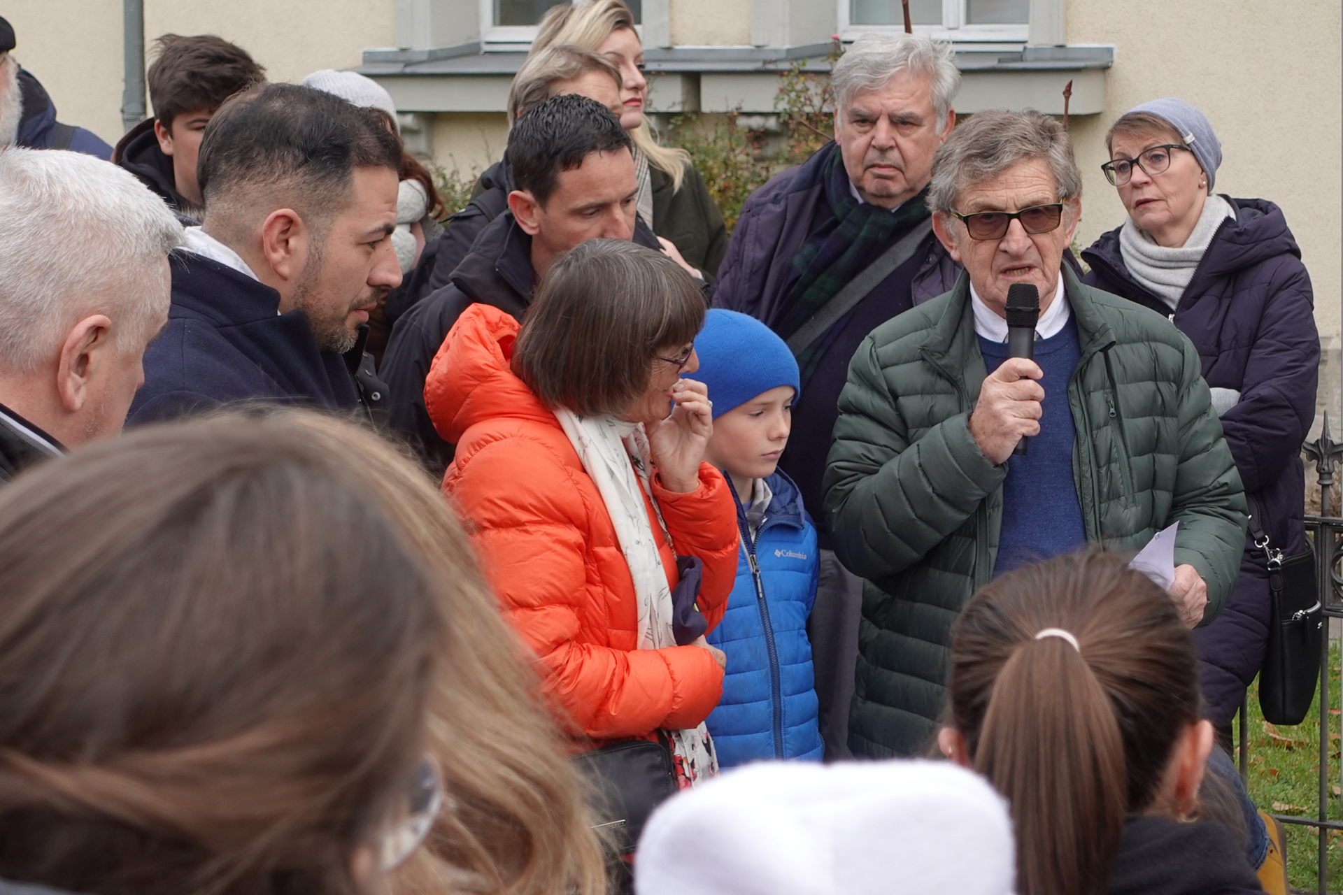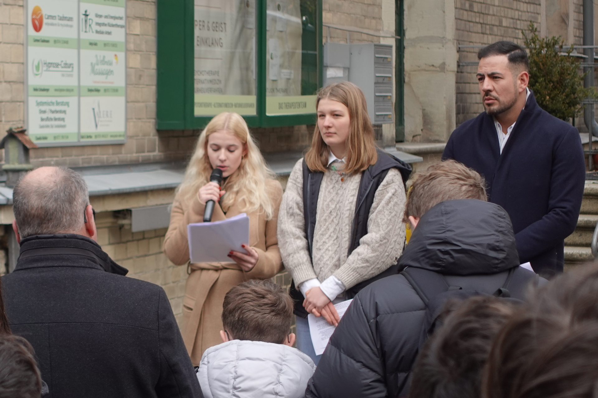 An der zweiten Station lagen bereits zwei Stolpersteine für Alfred und Margarethe Plessner, die beide in Riga von den Nazis ermordet worden waren. Zwei Schülerinnen des Albertinums erinnerten vor der Mohrenstraße 9b an Horst „Howard“ Plessner und Wolfgang Plessner, die 1938 in die USA beziehungsweise 1939 nach Guatemala geflohen waren. Die Schülerinnen erzählten von ihren Gesprächen mit Nachkommen der Familie Plessner. Es war ihnen anzusehen, dass dies eine ganz besondere Erfahrung gewesen sein muss. Nach einer weiteren Schweigeminute führte 3. Bürgermeister Can Aydin die Menschen die Mohrenstraße hinauf.