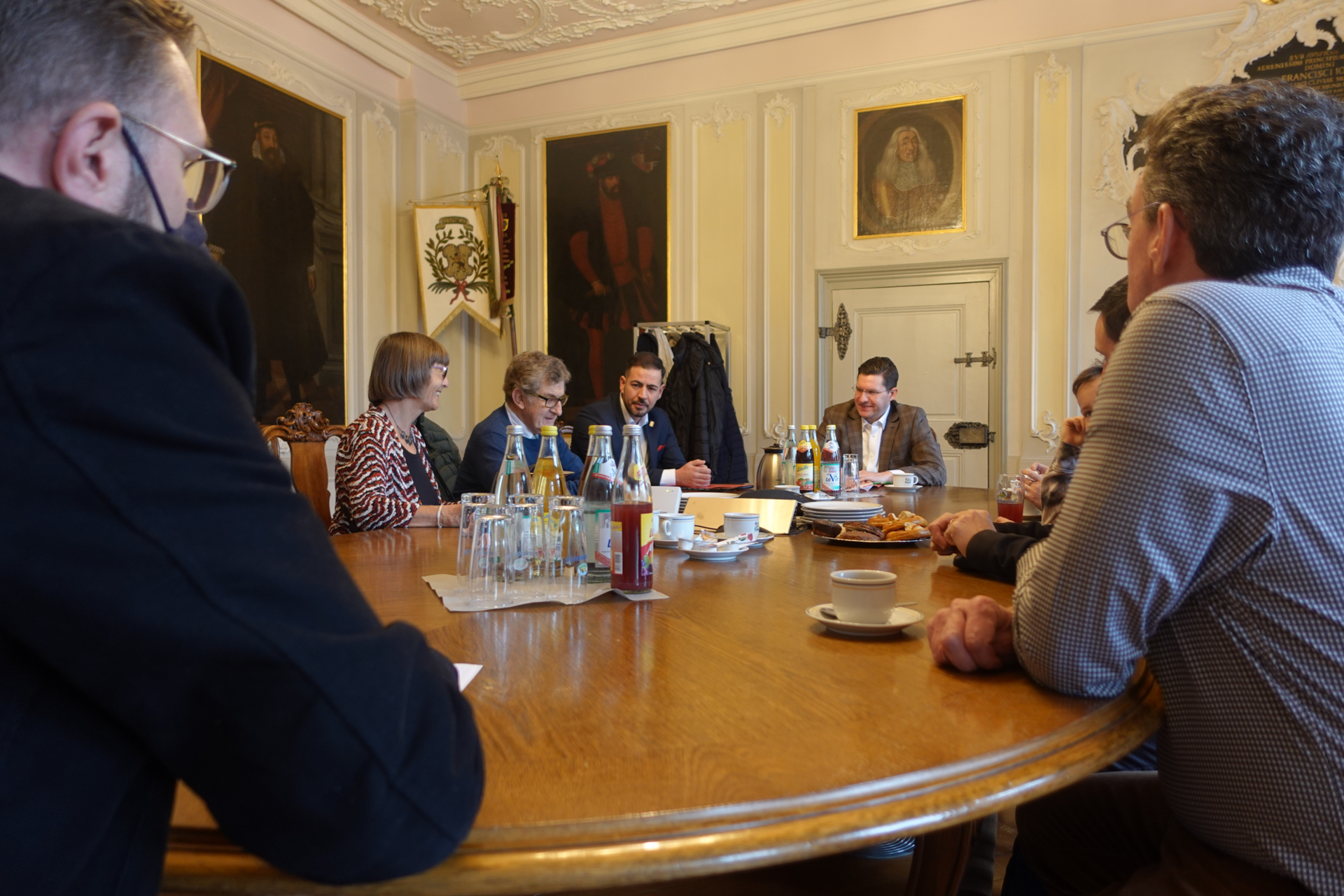 Es sind die Opfer der Terrorherrschaft der Nationalsozialisten, an die wir uns erinnern müssen. An ihre Geschichten, an ihre Leben. Nicht alle haben ihr Leben in den Vernichtungslagern gelassen, trotzdem waren sie Opfer. Sie konnten nicht länger in ihrer Heimatstadt leben, sie mussten Coburg verlassen. „Ohne all das, wären wir heute aber nicht hier“, so führte Janet Isserlin die Gedanken ihres Mannes Jonathan weiter. Der kleine Empfang im Rathaus der Heimatstadt seiner Großeltern Johanna und Reinhold Alkan am Mittwochvormittag hatte ihn so bewegt, dass er nicht selbst weiterreden konnte. Zusammen mit seinen Söhnen und Freunden der Familie waren beide der Einladung von Oberbürgermeister Sauerteig und 3. Bürgermeister Can Aydin gefolgt. Im Anschluss an den informellen Austausch wurden die Stolpersteine für ihre Vorfahren verlegt.