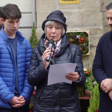 „Stolpersteine zeigen uns den Weg in eine hoffentlich friedliche Zukunft, die frei von solchen unsagbaren Gräueltaten ist. Die Stolpersteine sind damit ein wesentlicher Bestandteil unserer NS-Erinnerungskultur in Coburg und ich danke Ihnen von Herzen, dass Sie heute mit uns gedacht haben“, schloss Aydin die Gedenkveranstaltung.