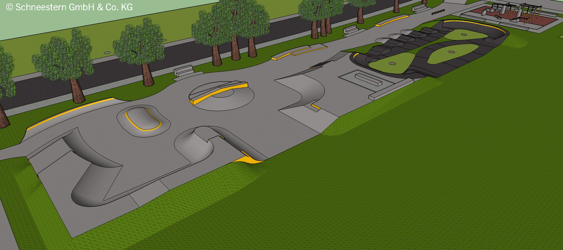 Die Vorstellungen eines zusammenhängenden Skateparks auf großer Fläche, der unterschiedlichen Alters- und Nutzergruppen Sportmöglichkeiten eröffnet wurde deutlich. Prinzipiell sollten die unterschiedlichen Freizeitangebote räumlich getrennt werden, können sich im Einzelfall (wie am Beispiel der Klettergeräte der Skatepark Bernau) aber auch räumlich überschneiden oder benachbart angeordnet werden, so die Aussage der Jugendlichen. Nach intensiver Recherche durch WGF in der Skateplanerszene in Deutschland, Österreich und der Schweiz, schien die Firma Schneestern aus Durach diese Vorstellungen am besten lösen zu können und wurde fortan in der Planung mit eingebunden.